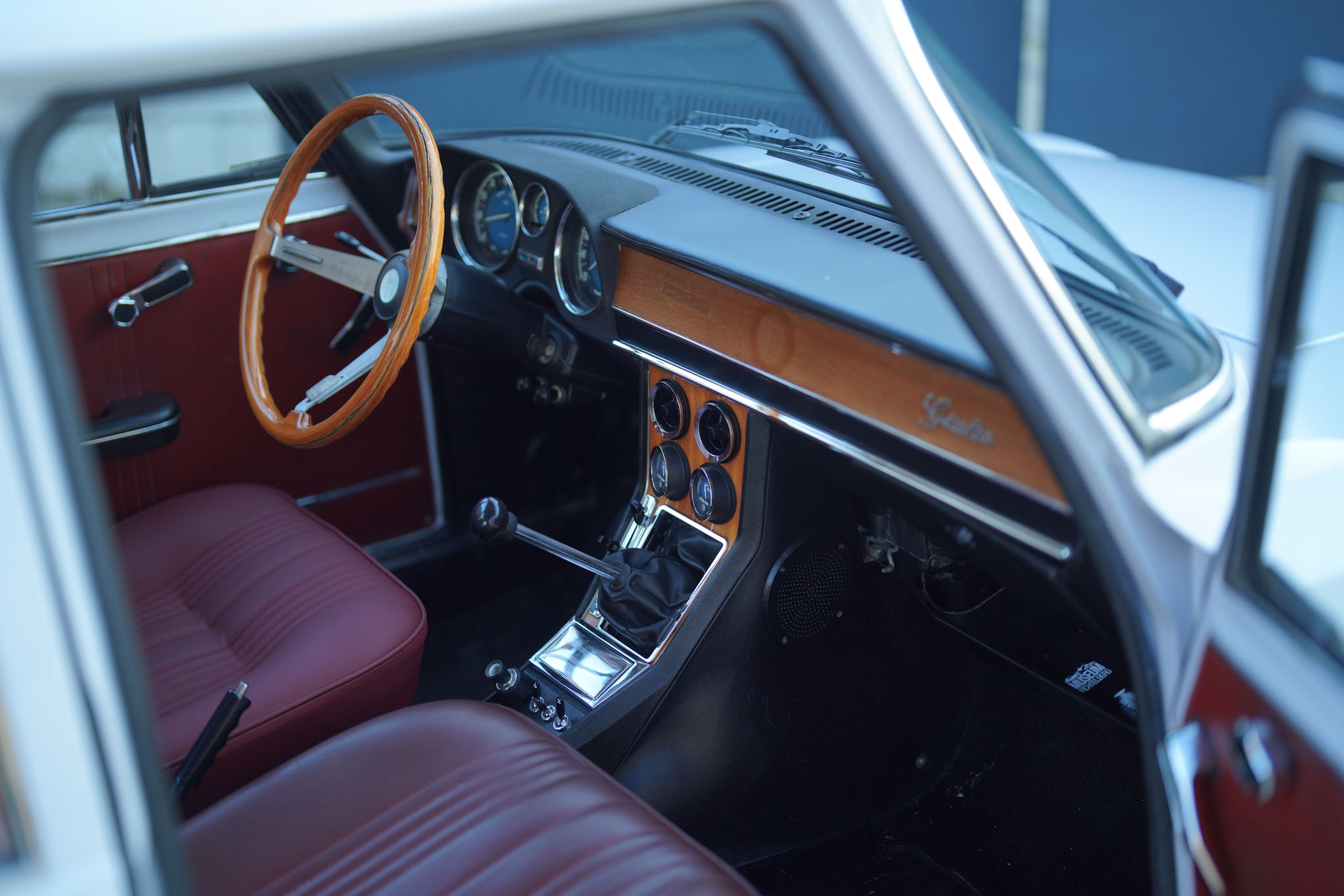 Alfa Romeo Giulia Nuova Super 1300 to zaktualizowana wersja największego hitu sprzedażowego włoskiej firmy lat 60. i 70. Giulia to wóz, który każdy zna z dynamicznych pościgów we włoskich filmach i obrazki te nie biorą się znikąd. Mimo niewielkiego silnika (tylko 1,3 l) auto ma wybitnie zadziorny, sportowy wręcz charakter. Brzmi pięknie, przyspiesza niezwykle żwawo i prowadzi się z ogromną lekkością. Alfa Romeo Giulia Nuova Super pojawiła się w 1974 roku. Zewnętrznie najbardziej wyróżniał ją czarny grill oraz maska bez przetłoczeń, co miało upodobnić ją do większego modelu Berlina. We wnętrzu – zrobiło się bardziej luksusowo. To jedyna Giulia, która otrzymała drewno na desce rozdzielczej, zagłówki na przednich fotelach oraz konsolę centralną.