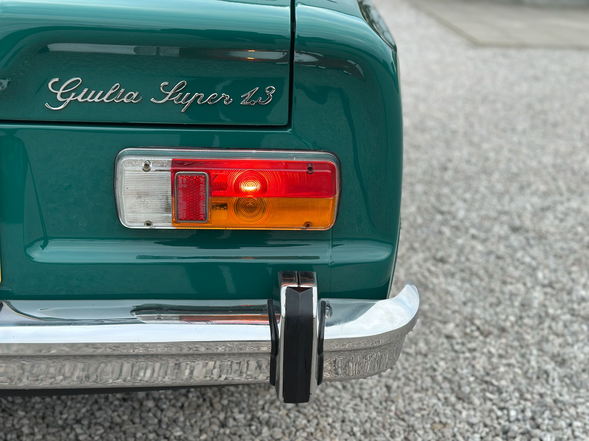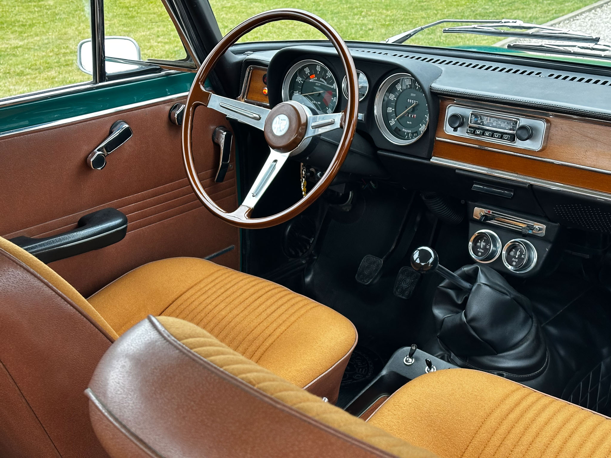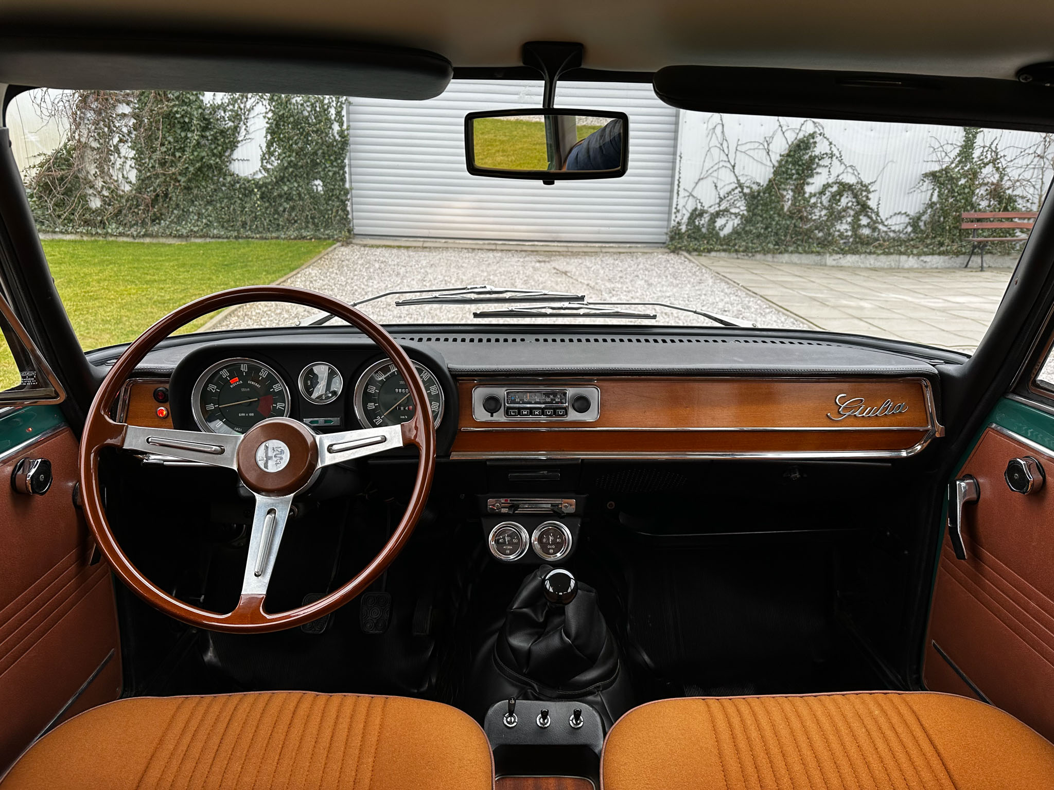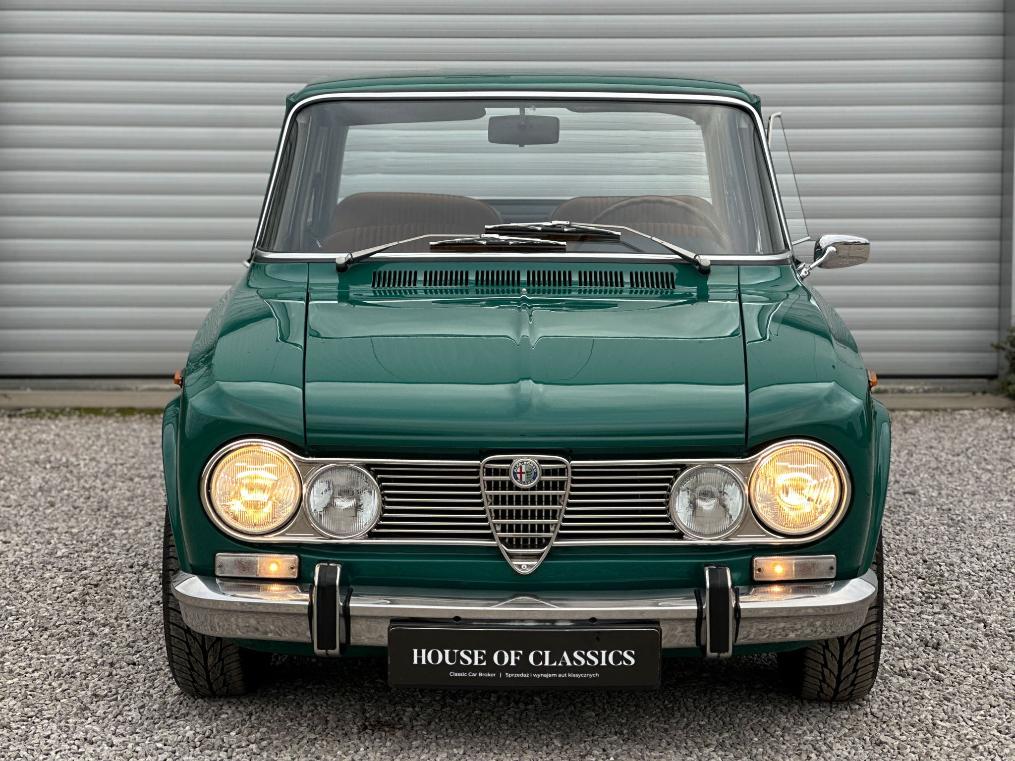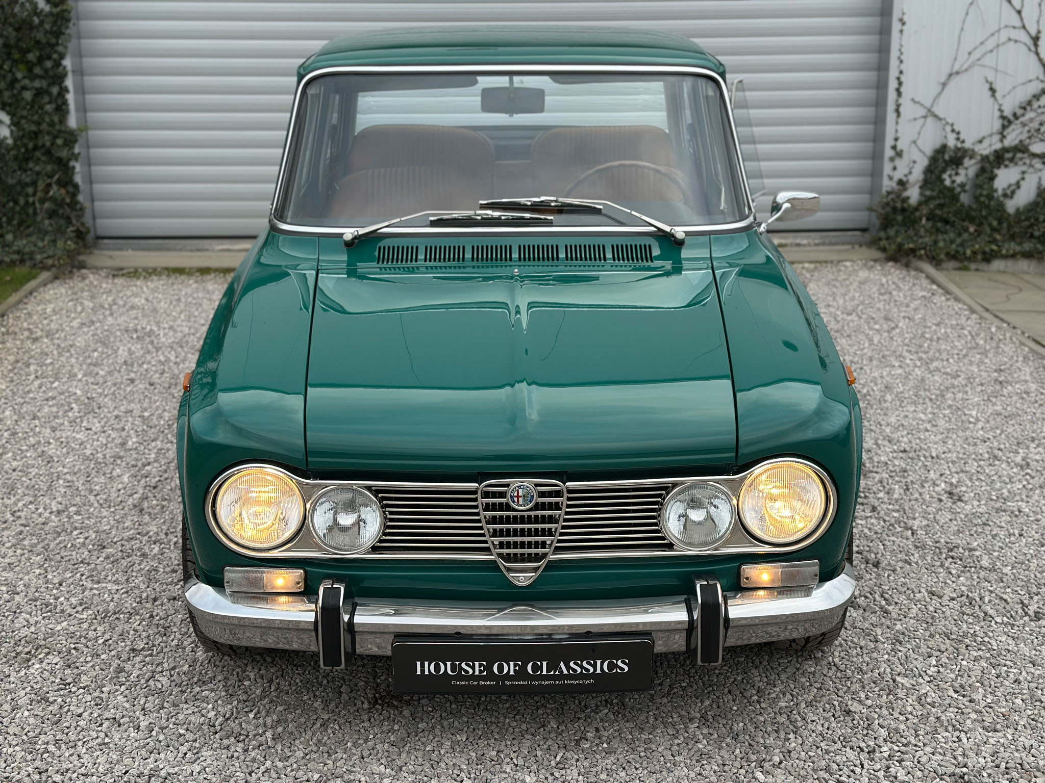Alfa Romeo Giulia Super 1300 z 1973 roku. Auto posiada (najprawdopodobniej) minimalny przebieg 98.000 km i przeszło pełną odbudowę mechaniczną o wartości 15.000 CHF w Szwajcarii. Choć upłynęło od tamtej pory 11 lat to silnik nadal pracuje bardzo świeżo, skrzynia o 5 biegach zaskakuje swoją cichą pracą, a zawieszenie wyposażone w amortyzatory Bilstein B6 i sprężyny Eibacha pozwala na fantastyczne prowadzenie Julii. Auto przeszło także potwórne lakierowanie (nie wiem czy w Szwajcarii czy w Luksemburgu) na jej oczywiście oryginalny i bardzo poszukiwany kolor Verde Pino. Zostało to zrobione na bardzo wysokim poziomie. Wnętrze auta jest w 100% oryginalne i w fantastycznym stanie. To zdecydowanie najlepsza Giulia, w najlepszym możliwym stanie jaką widziałem. Przeszła detailing oraz pełen serwis. Jeździ cudownie.