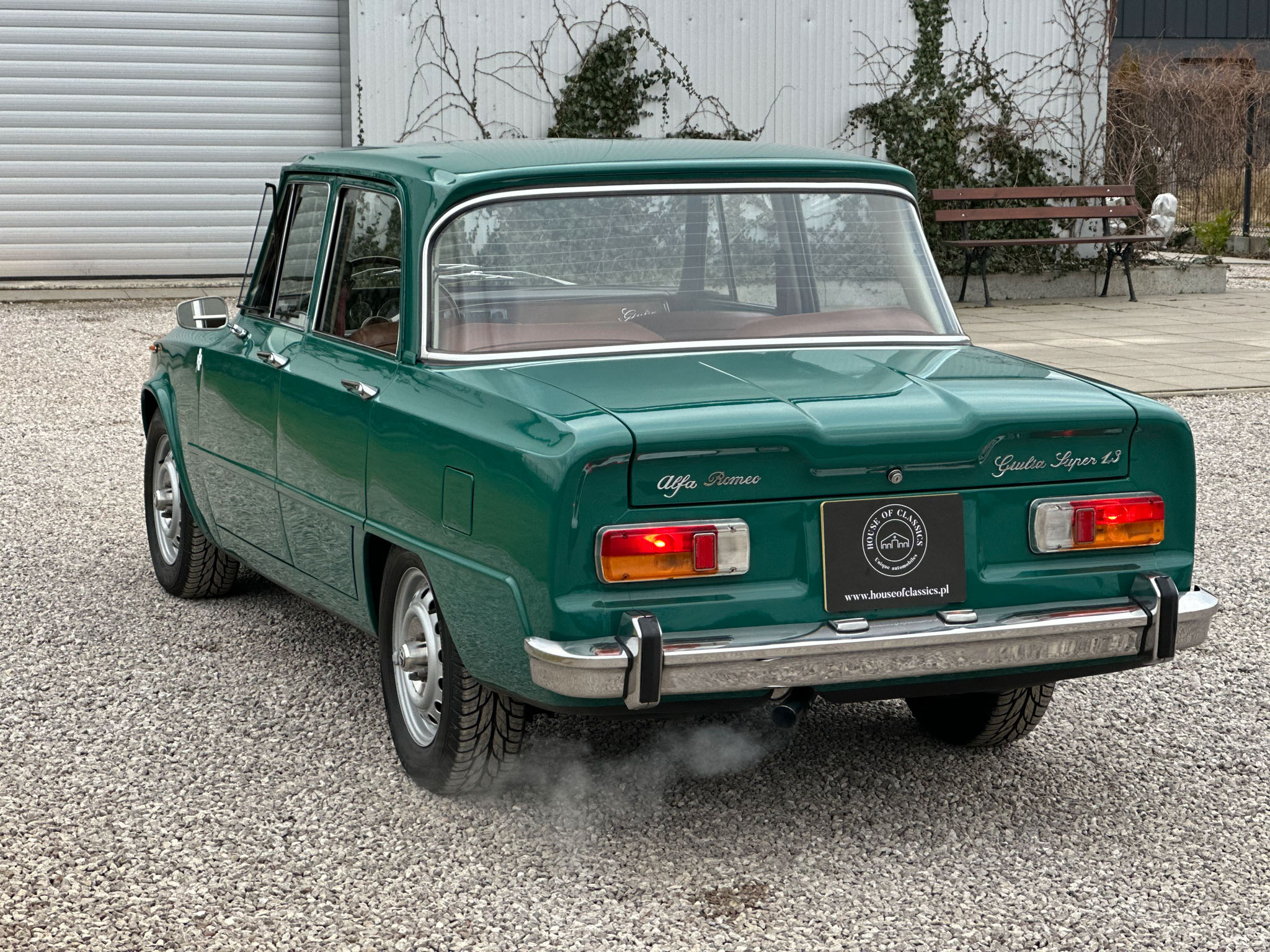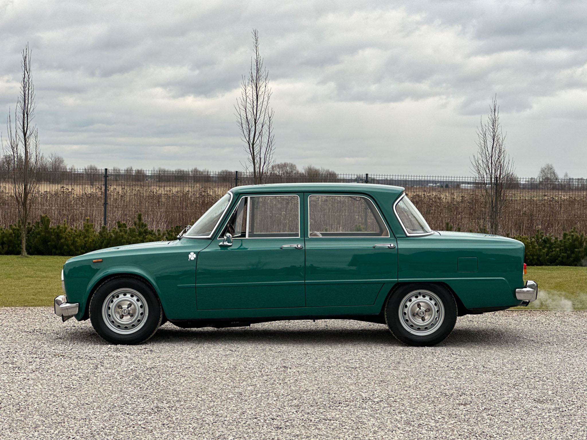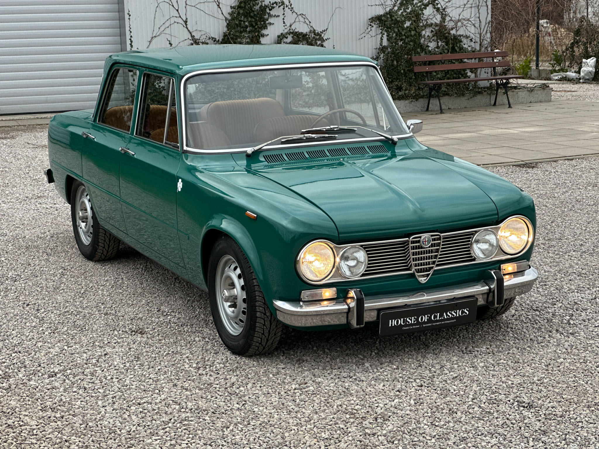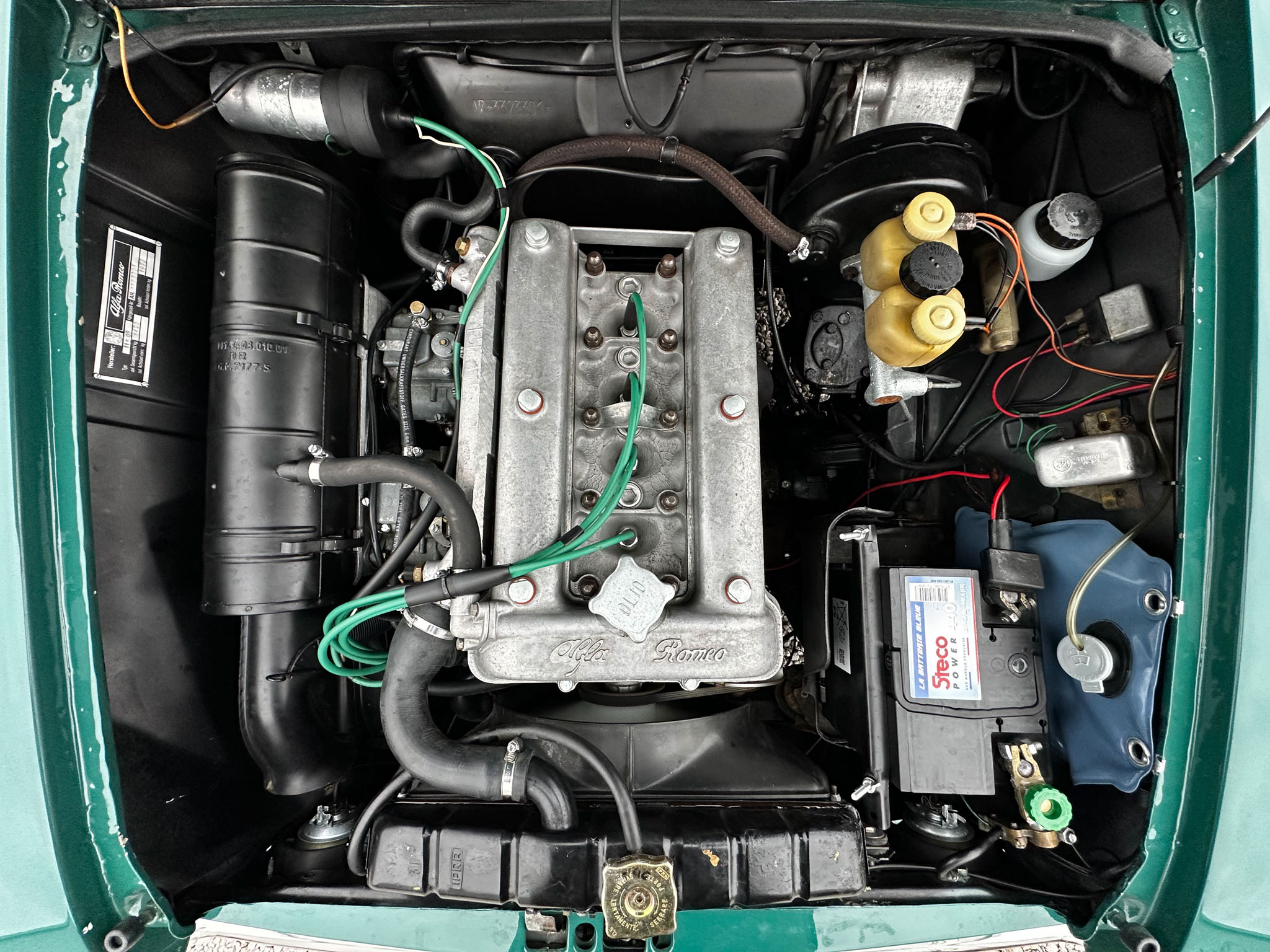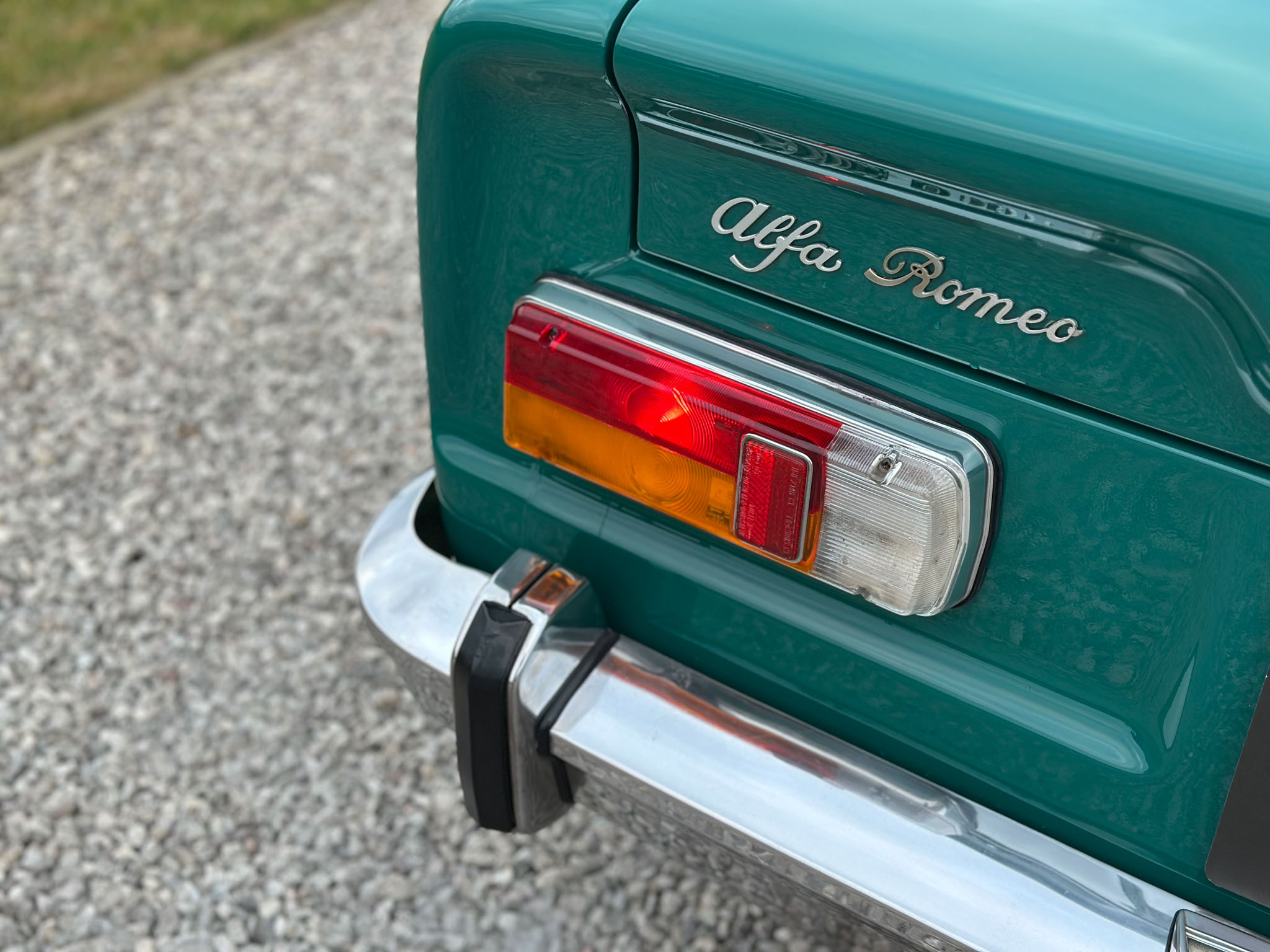 Alfa Romeo Giulia Super 1300 z 1973 roku. Auto posiada (najprawdopodobniej) minimalny przebieg 98.000 km i przeszło pełną odbudowę mechaniczną o wartości 15.000 CHF w Szwajcarii. Choć upłynęło od tamtej pory 11 lat to silnik nadal pracuje bardzo świeżo, skrzynia o 5 biegach zaskakuje swoją cichą pracą, a zawieszenie wyposażone w amortyzatory Bilstein B6 i sprężyny Eibacha pozwala na fantastyczne prowadzenie Julii. Auto przeszło także potwórne lakierowanie (nie wiem czy w Szwajcarii czy w Luksemburgu) na jej oczywiście oryginalny i bardzo poszukiwany kolor Verde Pino. Zostało to zrobione na bardzo wysokim poziomie. Wnętrze auta jest w 100% oryginalne i w fantastycznym stanie. To zdecydowanie najlepsza Giulia, w najlepszym możliwym stanie jaką widziałem. Przeszła detailing oraz pełen serwis. Jeździ cudownie.