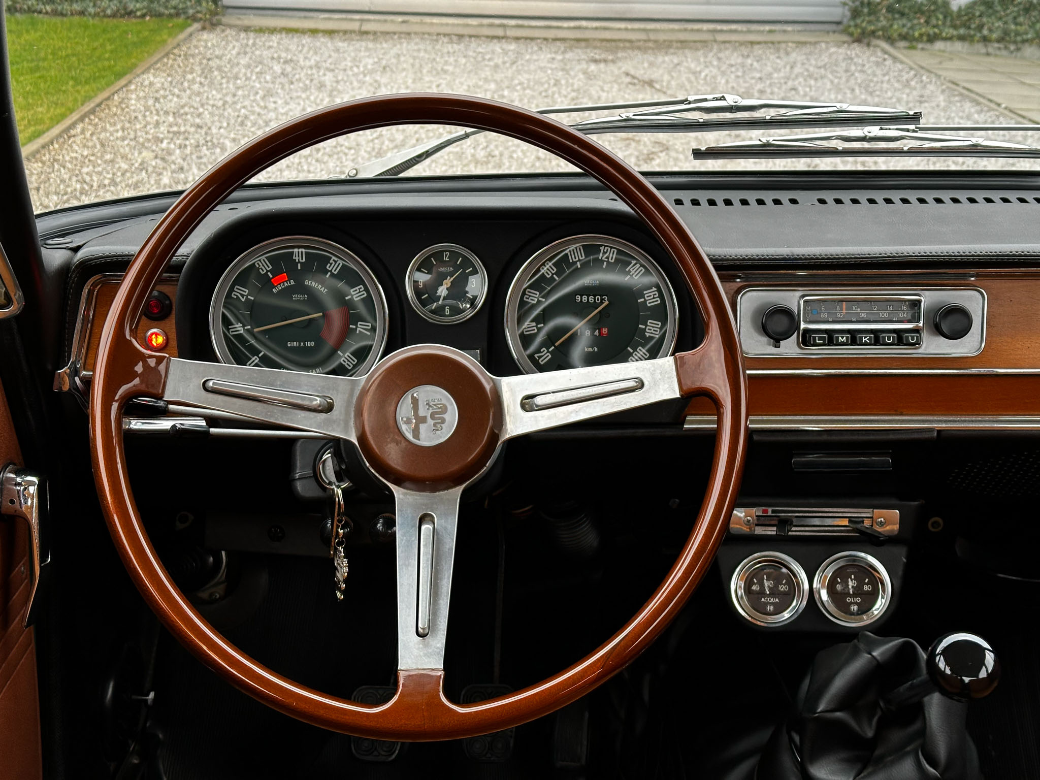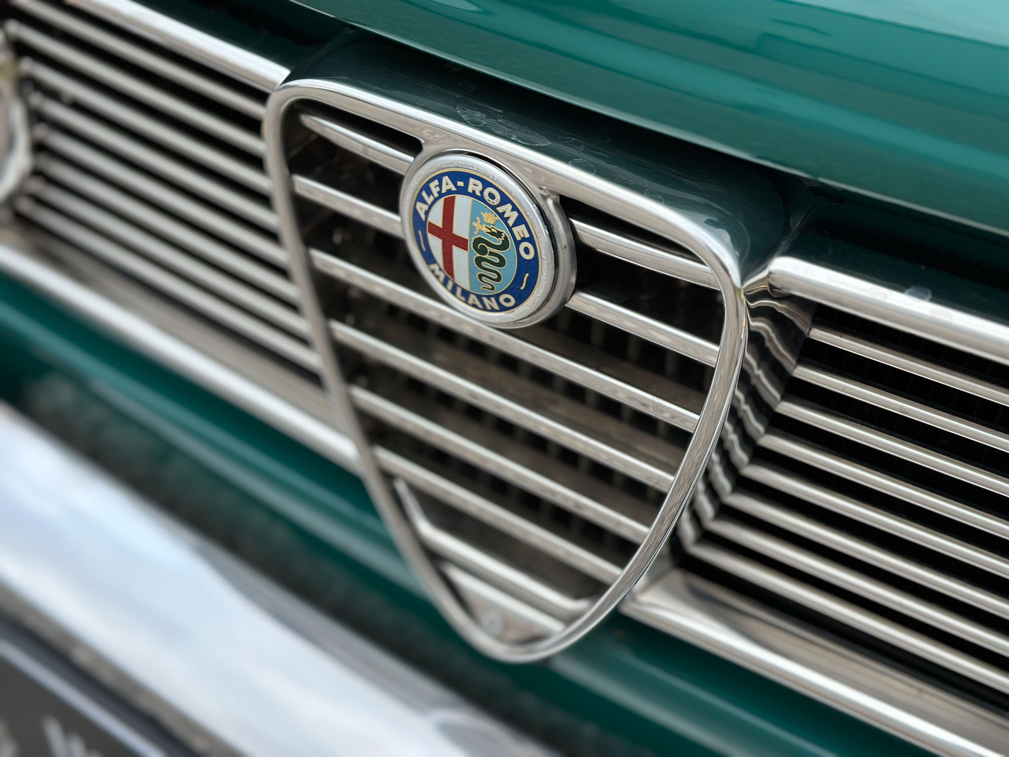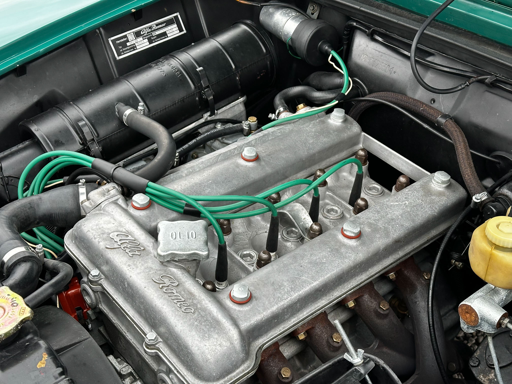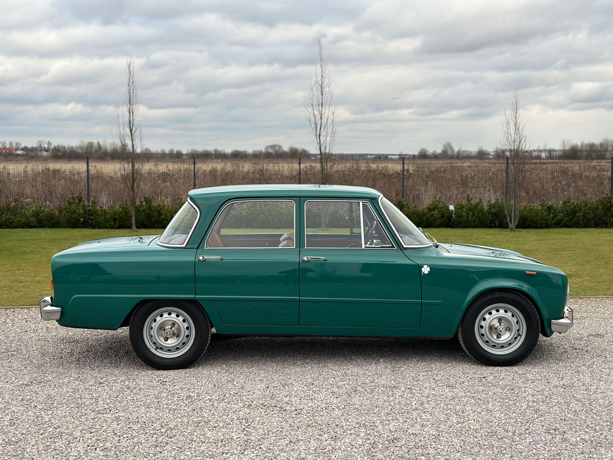 Alfa Romeo Giulia Super 1300 z 1973 roku. Auto posiada (najprawdopodobniej) minimalny przebieg 98.000 km i przeszło pełną odbudowę mechaniczną o wartości 15.000 CHF w Szwajcarii. Choć upłynęło od tamtej pory 11 lat to silnik nadal pracuje bardzo świeżo, skrzynia o 5 biegach zaskakuje swoją cichą pracą, a zawieszenie wyposażone w amortyzatory Bilstein B6 i sprężyny Eibacha pozwala na fantastyczne prowadzenie Julii. Auto przeszło także potwórne lakierowanie (nie wiem czy w Szwajcarii czy w Luksemburgu) na jej oczywiście oryginalny i bardzo poszukiwany kolor Verde Pino. Zostało to zrobione na bardzo wysokim poziomie. Wnętrze auta jest w 100% oryginalne i w fantastycznym stanie. To zdecydowanie najlepsza Giulia, w najlepszym możliwym stanie jaką widziałem. Przeszła detailing oraz pełen serwis. Jeździ cudownie.