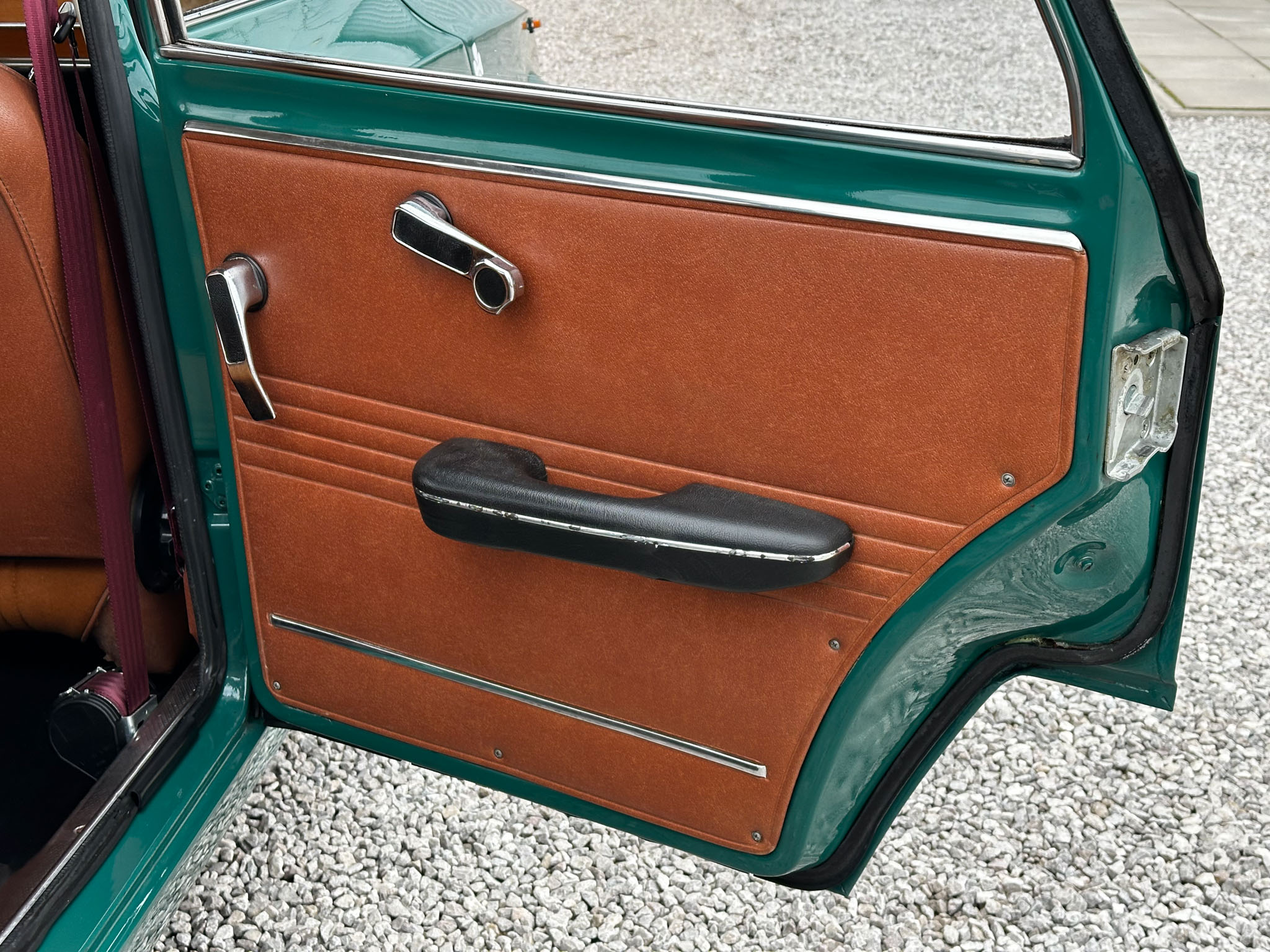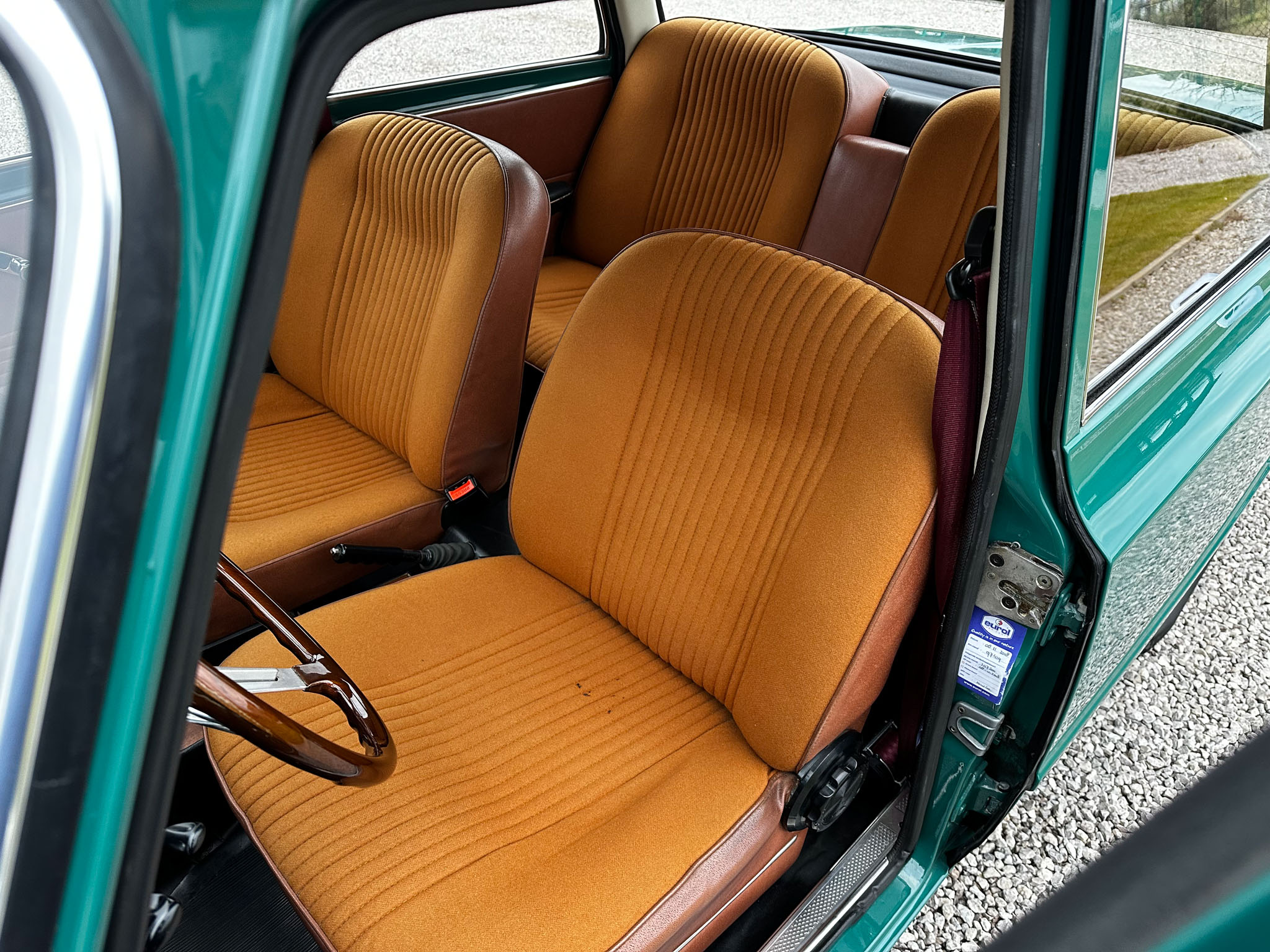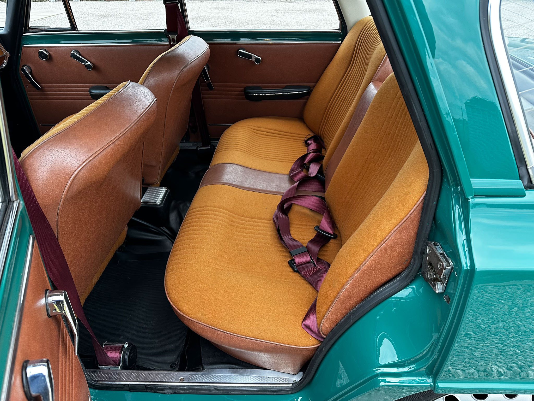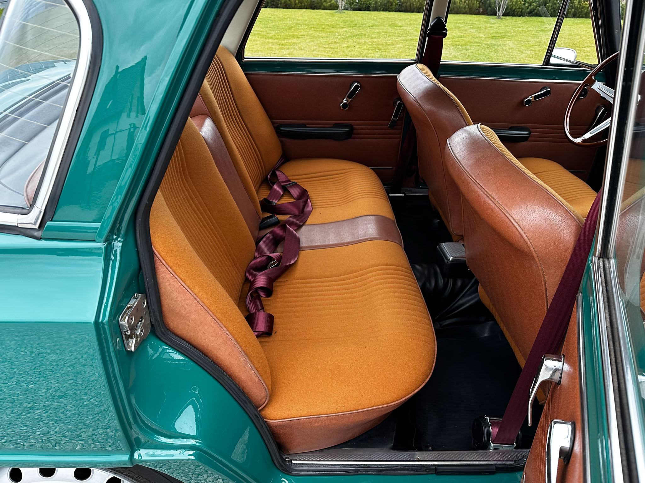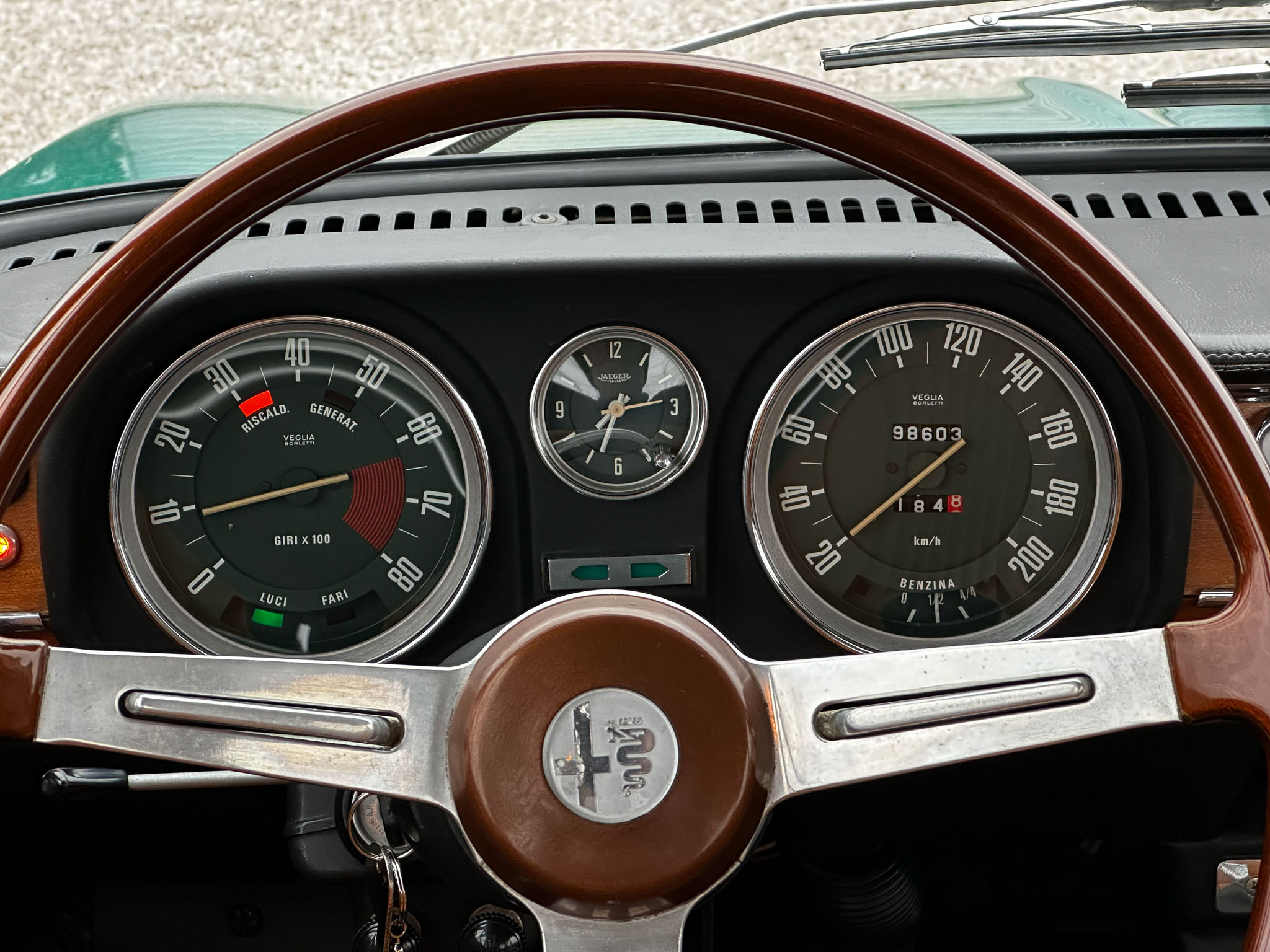 Alfa Romeo Giulia Super 1300 z 1973 roku. Auto posiada (najprawdopodobniej) minimalny przebieg 98.000 km i przeszło pełną odbudowę mechaniczną o wartości 15.000 CHF w Szwajcarii. Choć upłynęło od tamtej pory 11 lat to silnik nadal pracuje bardzo świeżo, skrzynia o 5 biegach zaskakuje swoją cichą pracą, a zawieszenie wyposażone w amortyzatory Bilstein B6 i sprężyny Eibacha pozwala na fantastyczne prowadzenie Julii. Auto przeszło także potwórne lakierowanie (nie wiem czy w Szwajcarii czy w Luksemburgu) na jej oczywiście oryginalny i bardzo poszukiwany kolor Verde Pino. Zostało to zrobione na bardzo wysokim poziomie. Wnętrze auta jest w 100% oryginalne i w fantastycznym stanie. To zdecydowanie najlepsza Giulia, w najlepszym możliwym stanie jaką widziałem. Przeszła detailing oraz pełen serwis. Jeździ cudownie.
