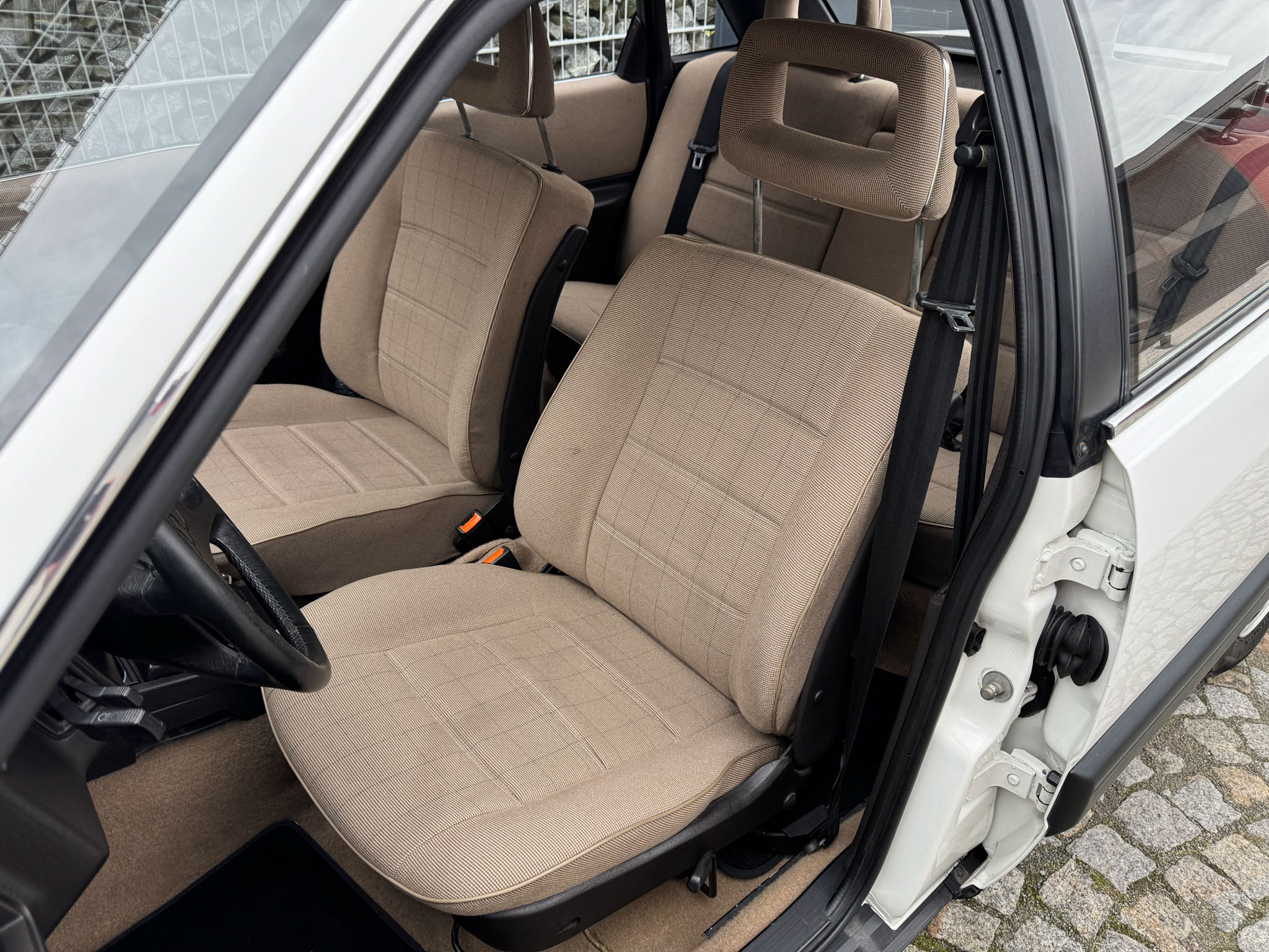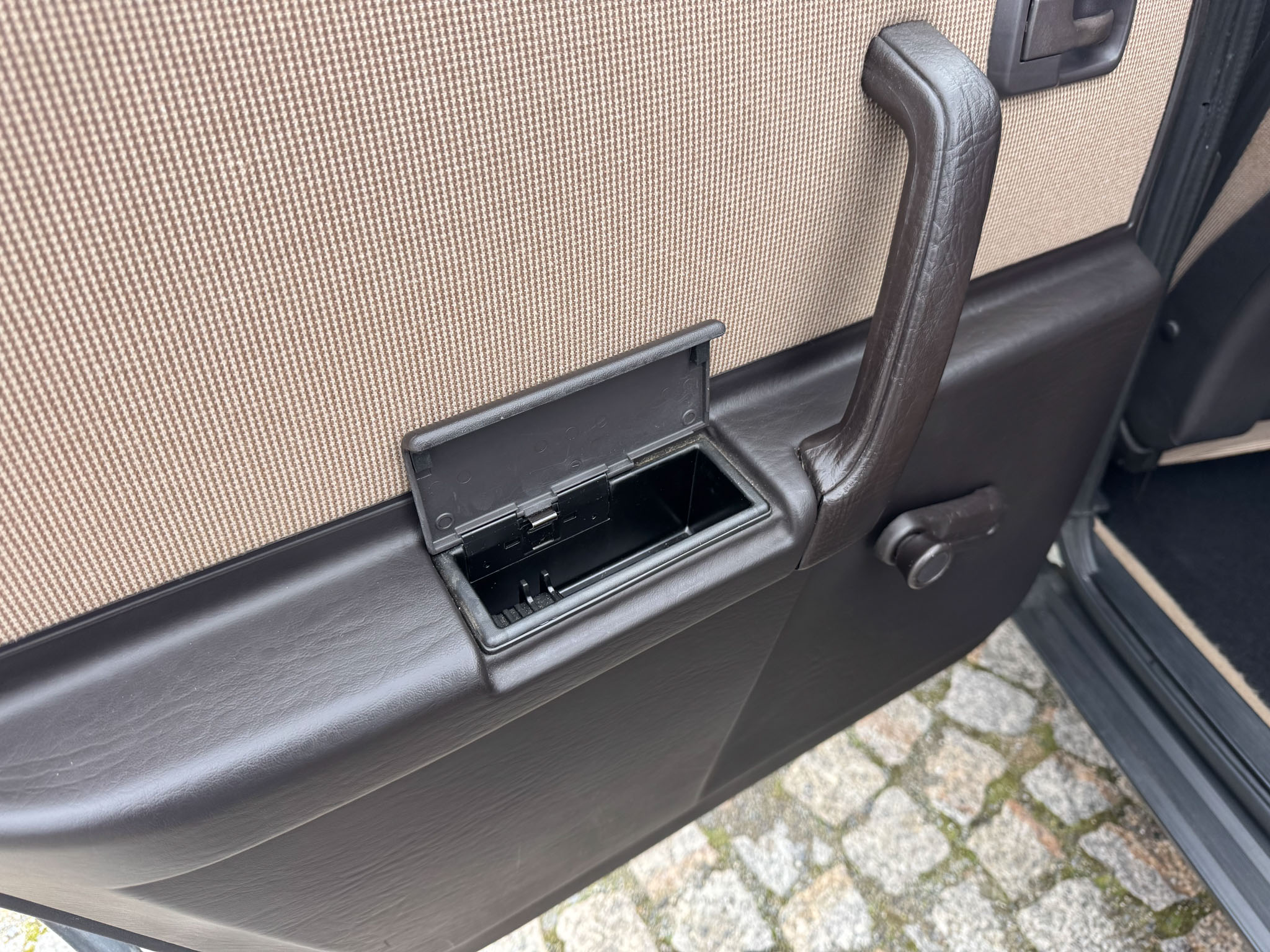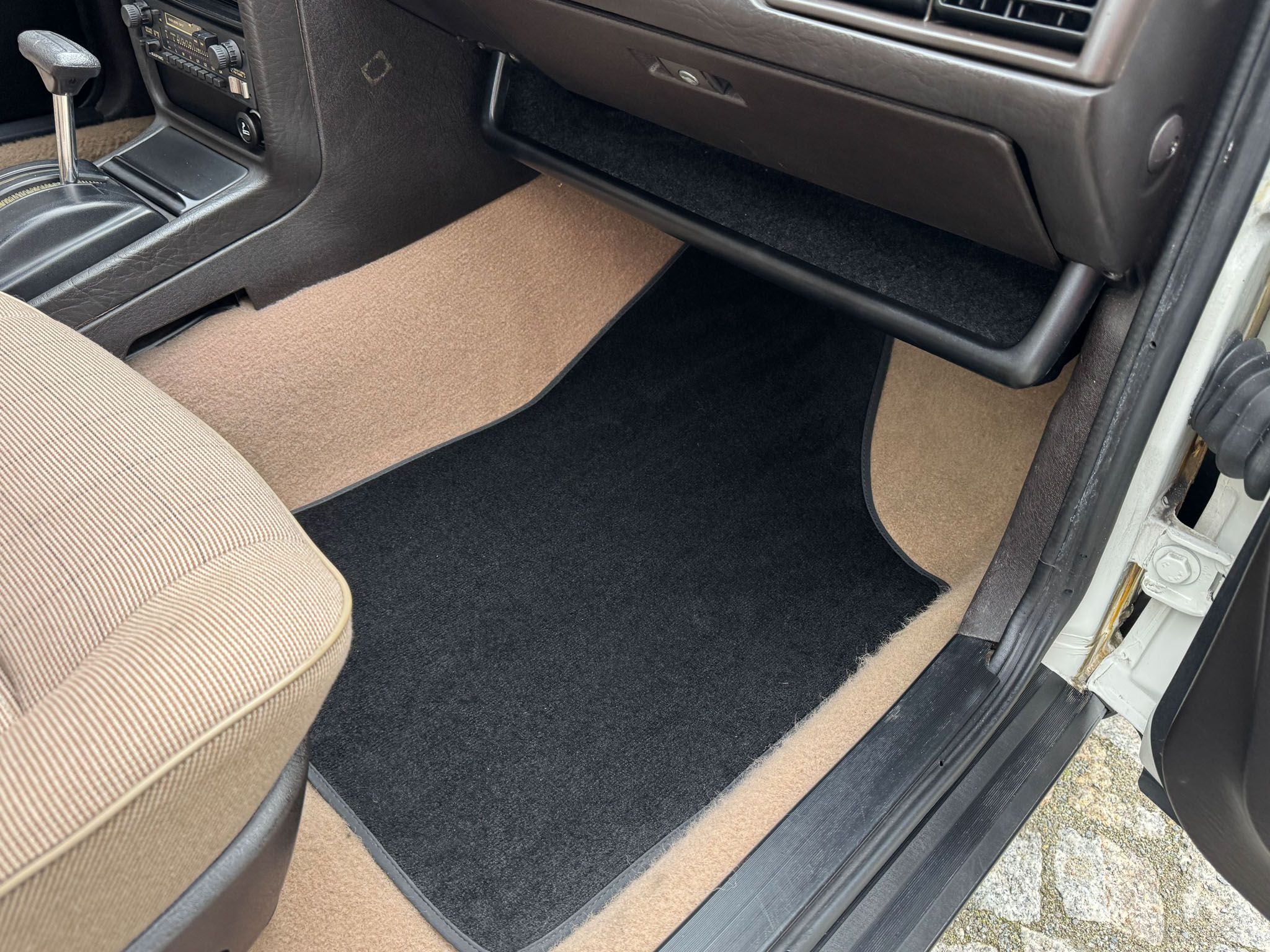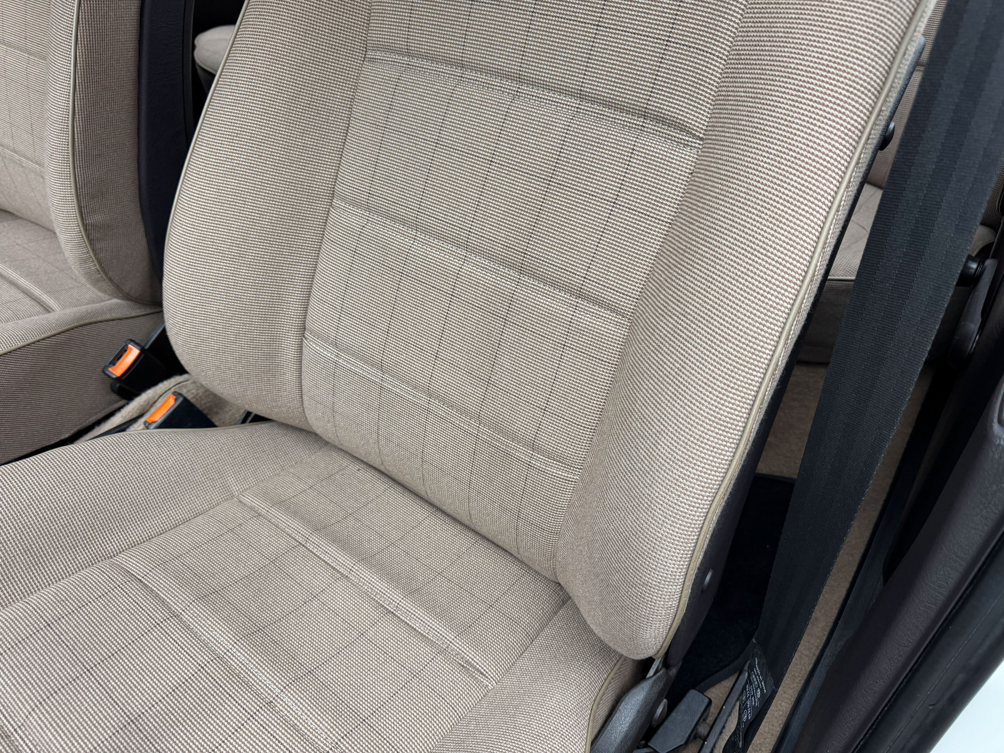 Wnętrze zachowane w idealnym stanie, z minimalnymi śladami użytkowania. Tapicerka nie wykazuje żadnych śladów zużycia, fotele wyglądają prawie jak nowe. Mimo wieku materiały mają wciąż żywy kolor. Plastiki są matowe, jak nowe. Fabryczne radio Blaupunkt. Welurowe dywaniki jak nowe.