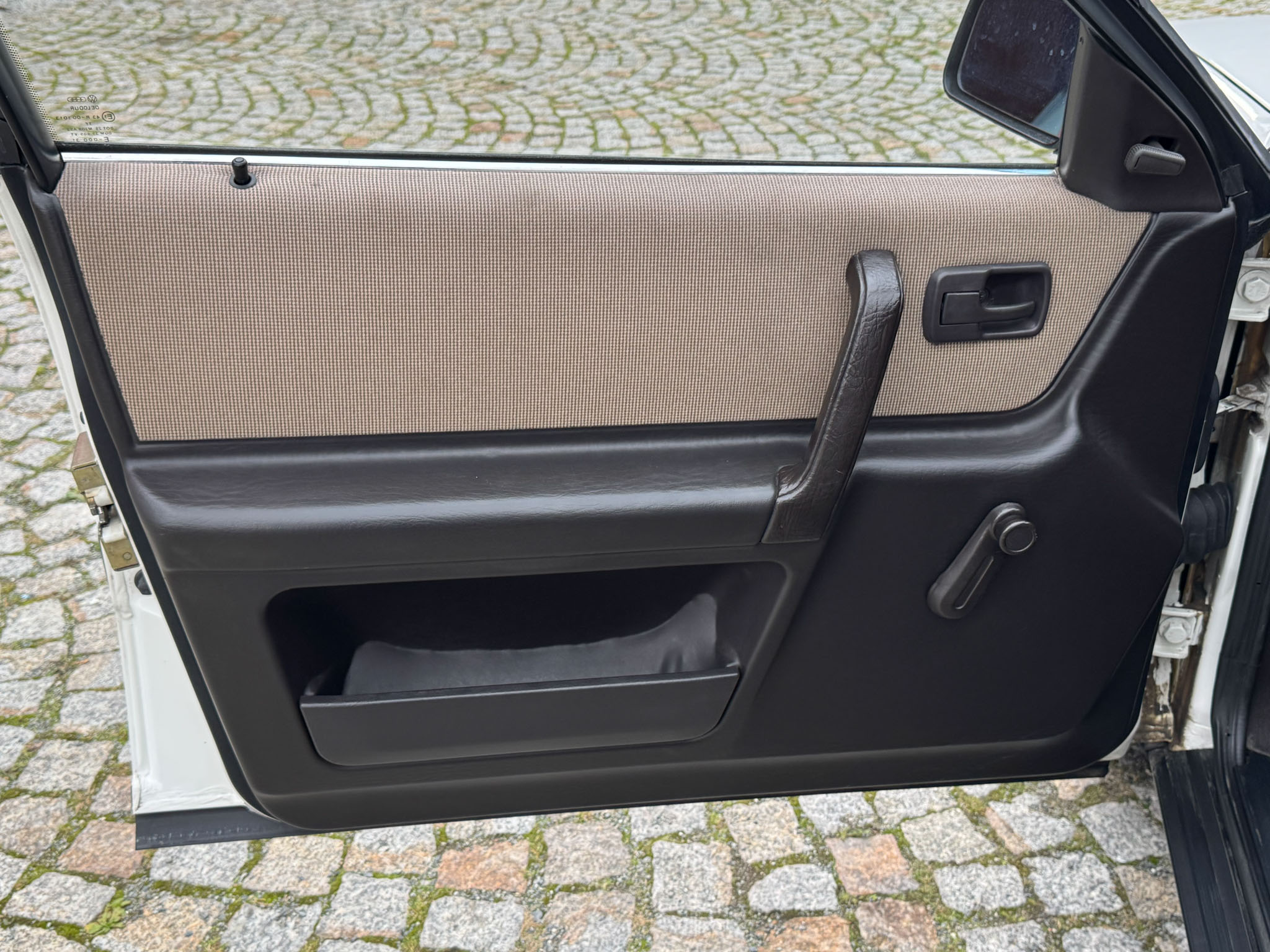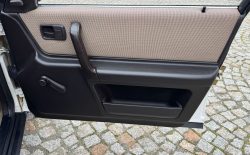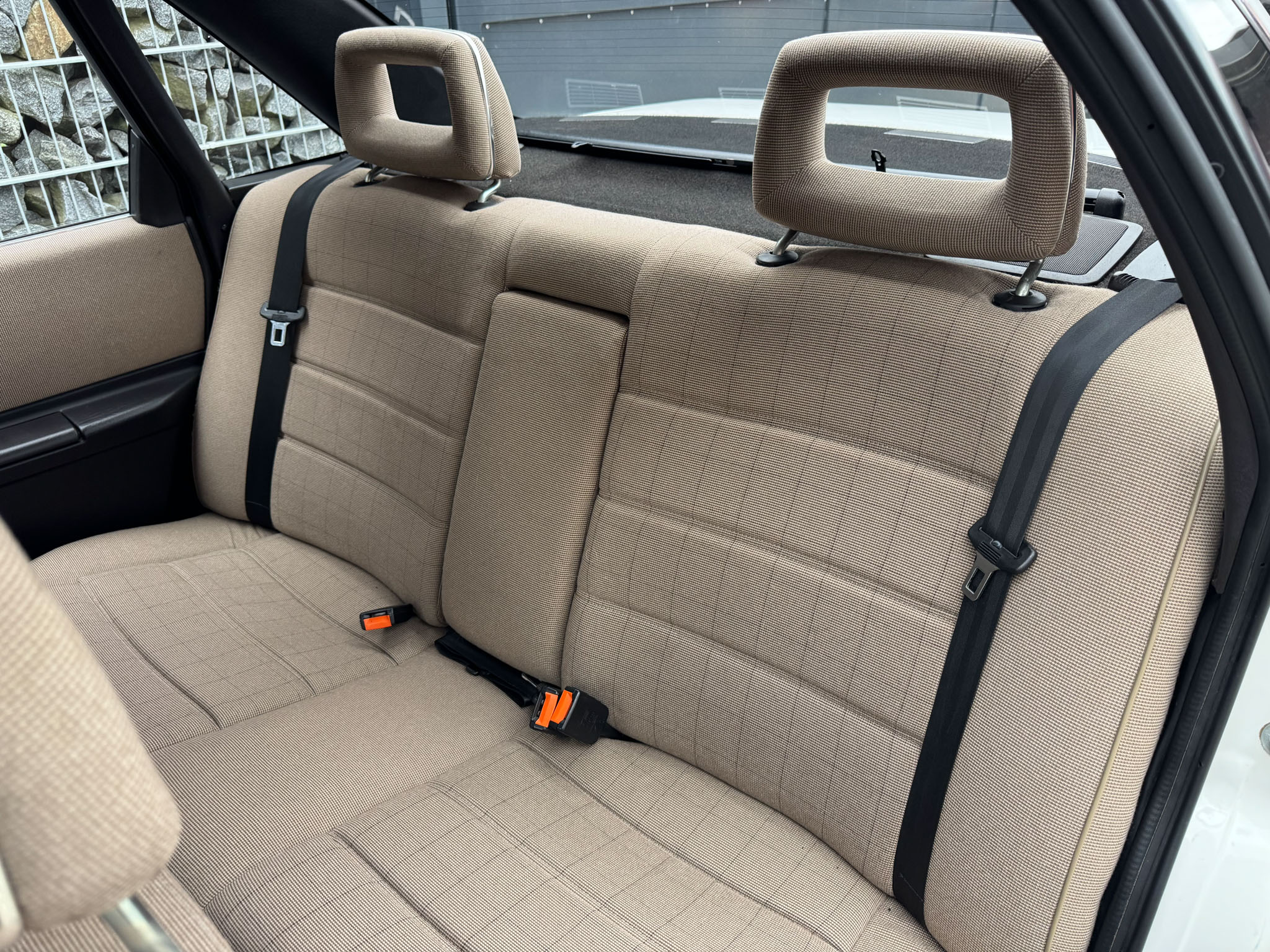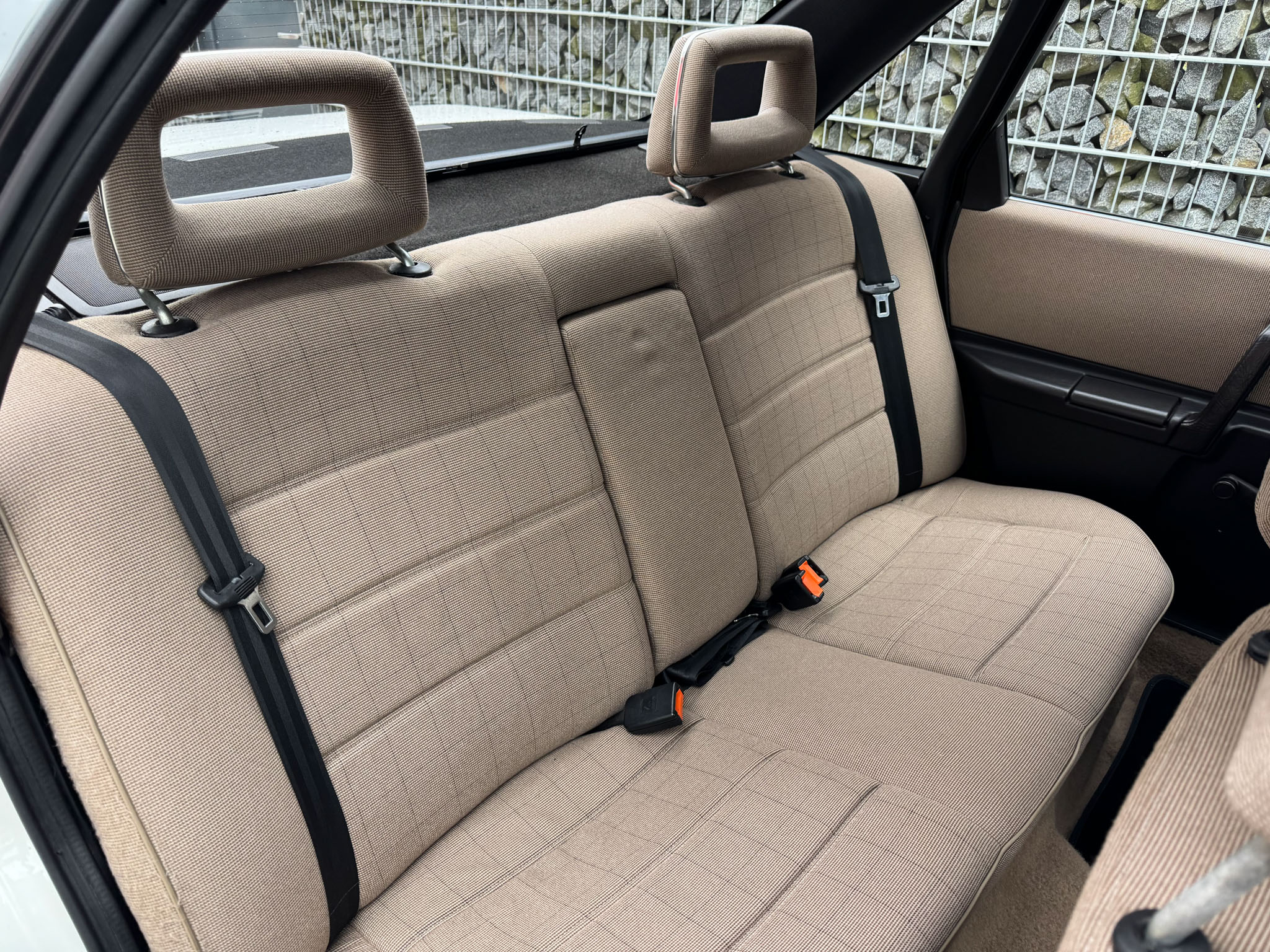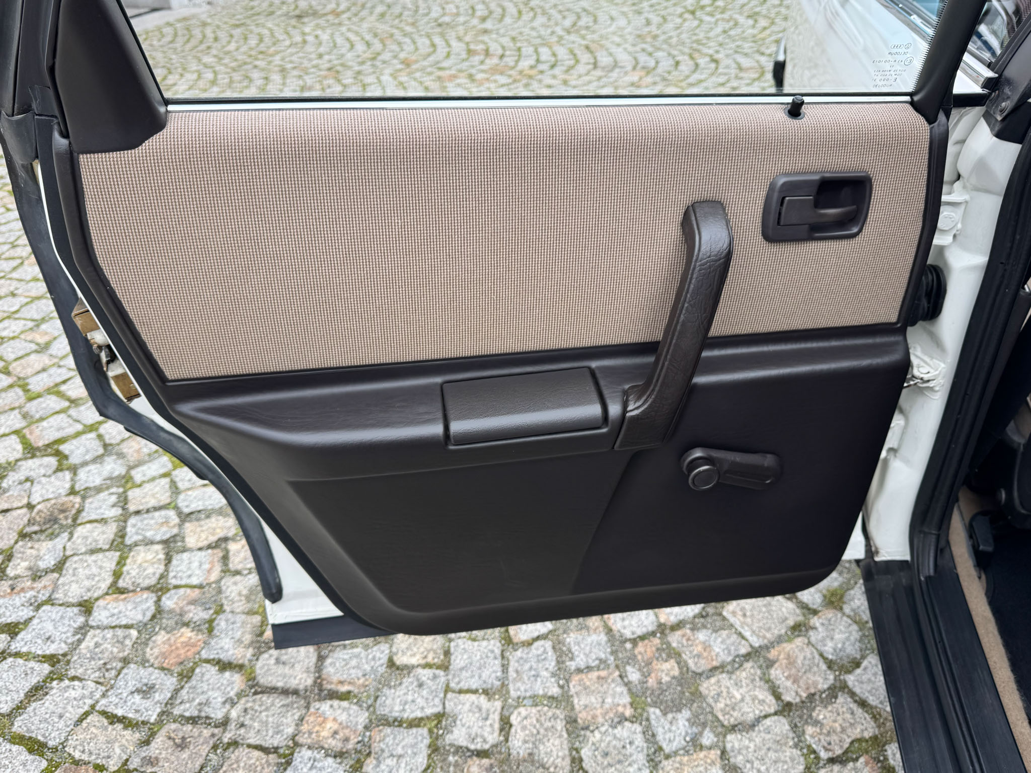 Wnętrze zachowane w idealnym stanie, z minimalnymi śladami użytkowania. Tapicerka nie wykazuje żadnych śladów zużycia, fotele wyglądają prawie jak nowe. Mimo wieku materiały mają wciąż żywy kolor. Plastiki są matowe, jak nowe. Fabryczne radio Blaupunkt. Welurowe dywaniki jak nowe.