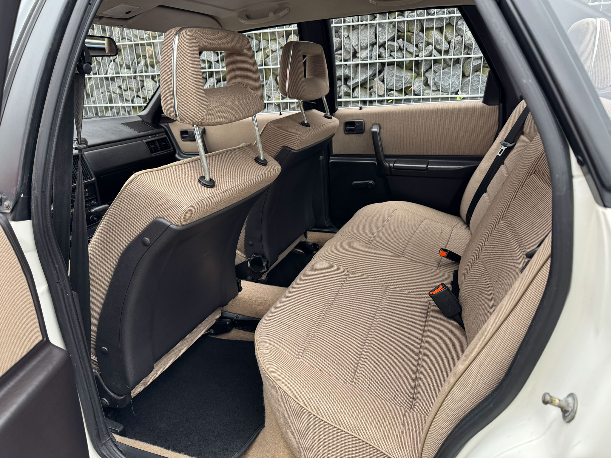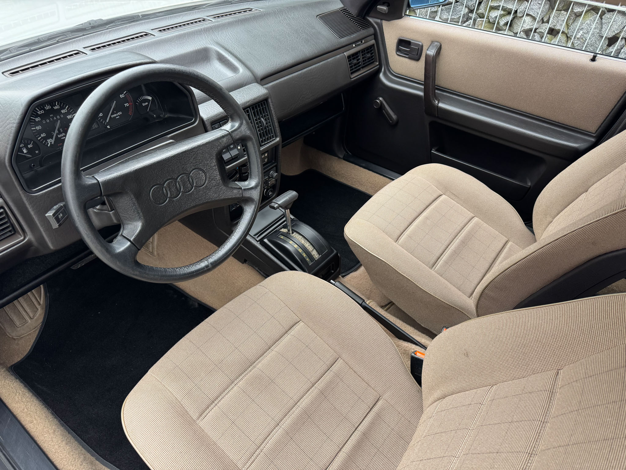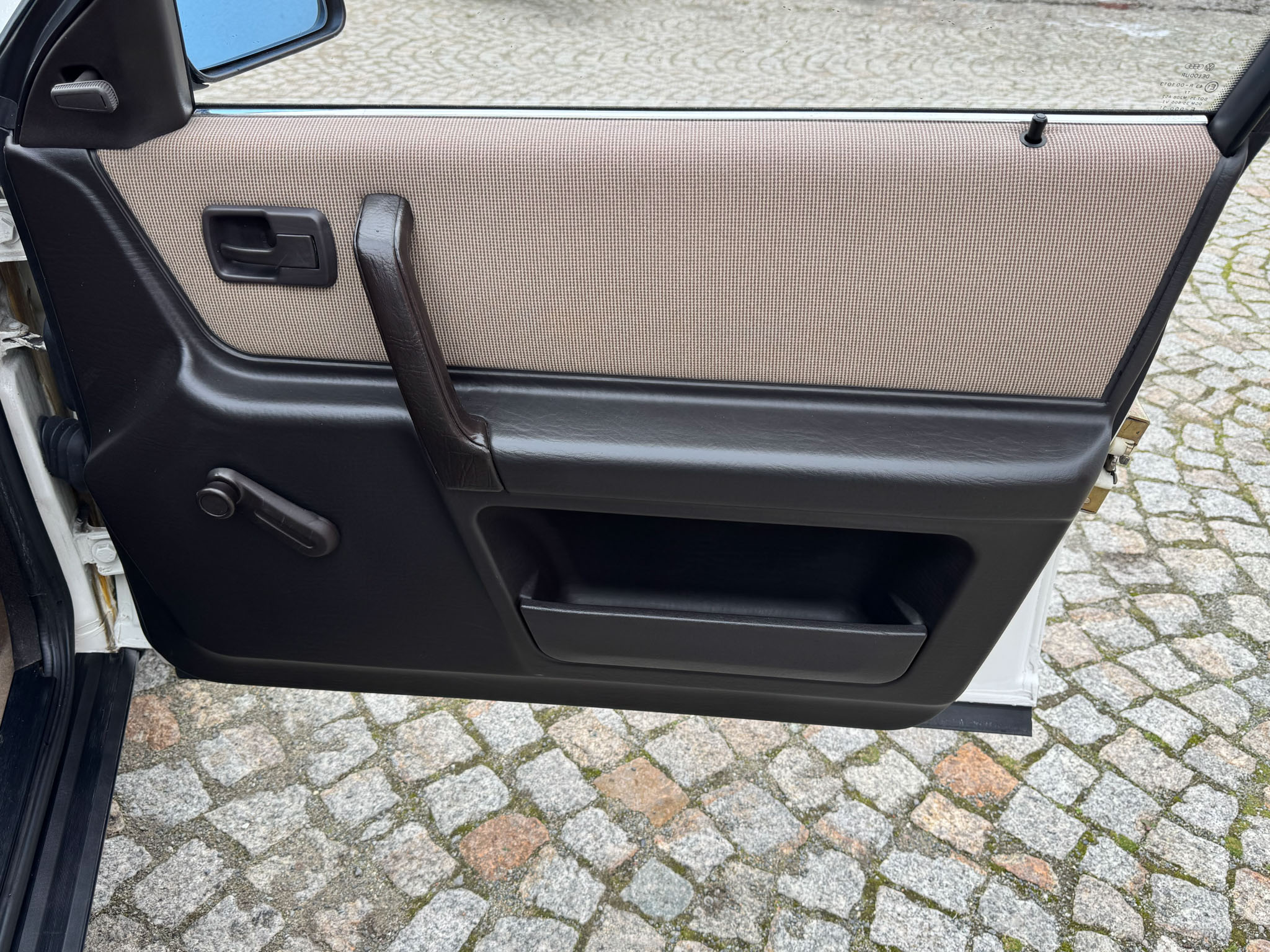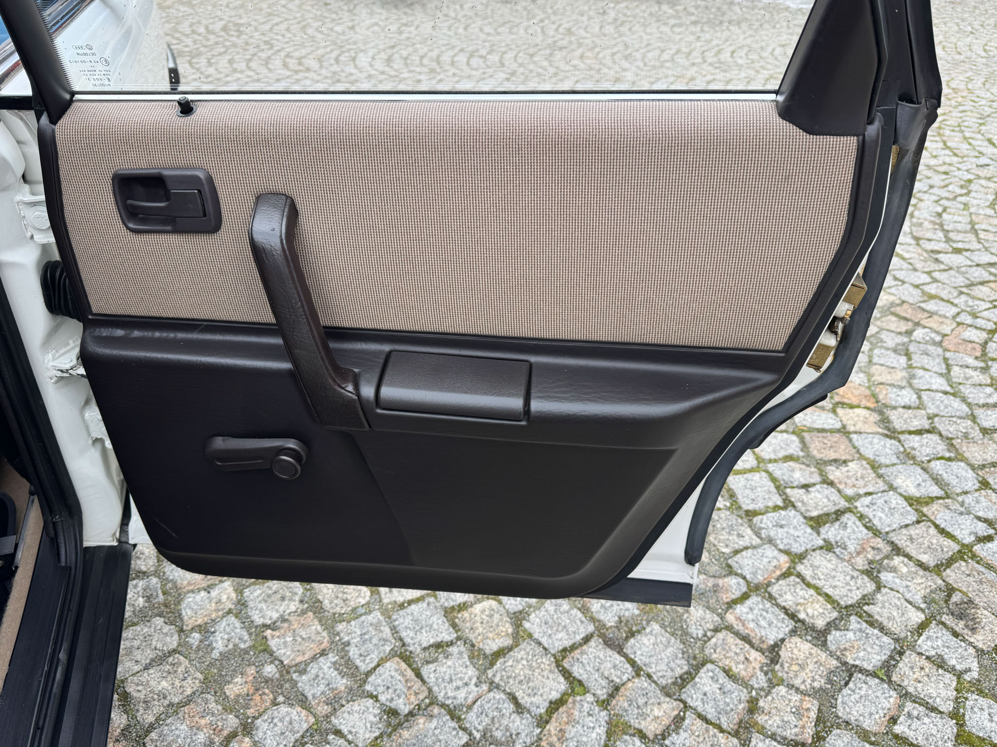 Wnętrze zachowane w idealnym stanie, z minimalnymi śladami użytkowania. Tapicerka nie wykazuje żadnych śladów zużycia, fotele wyglądają prawie jak nowe. Mimo wieku materiały mają wciąż żywy kolor. Plastiki są matowe, jak nowe. Fabryczne radio Blaupunkt. Welurowe dywaniki jak nowe.