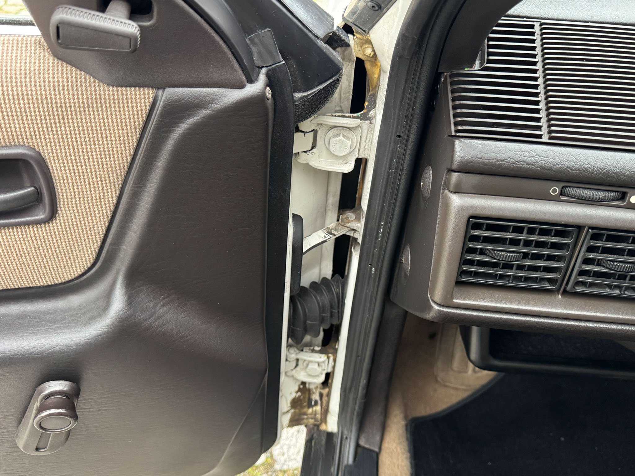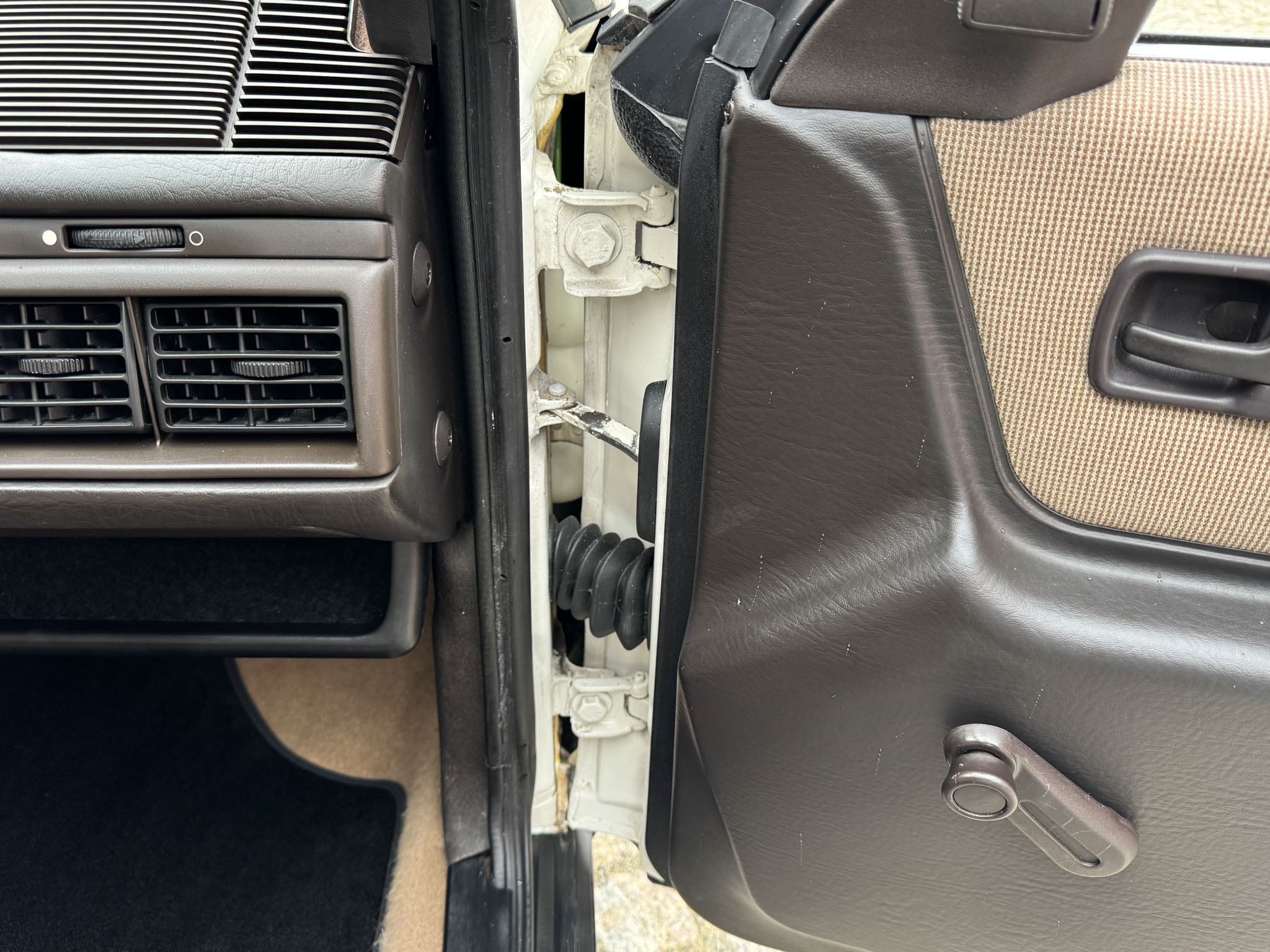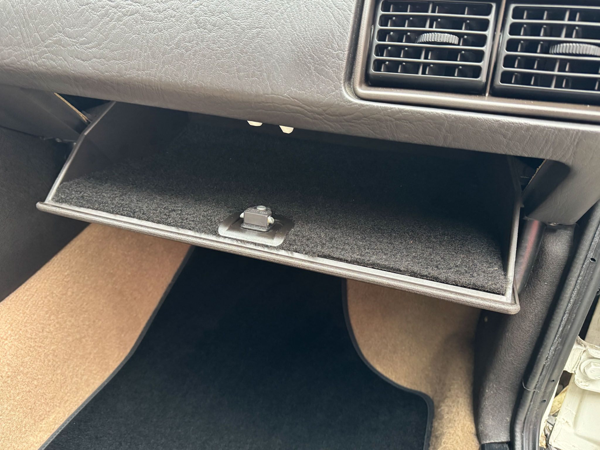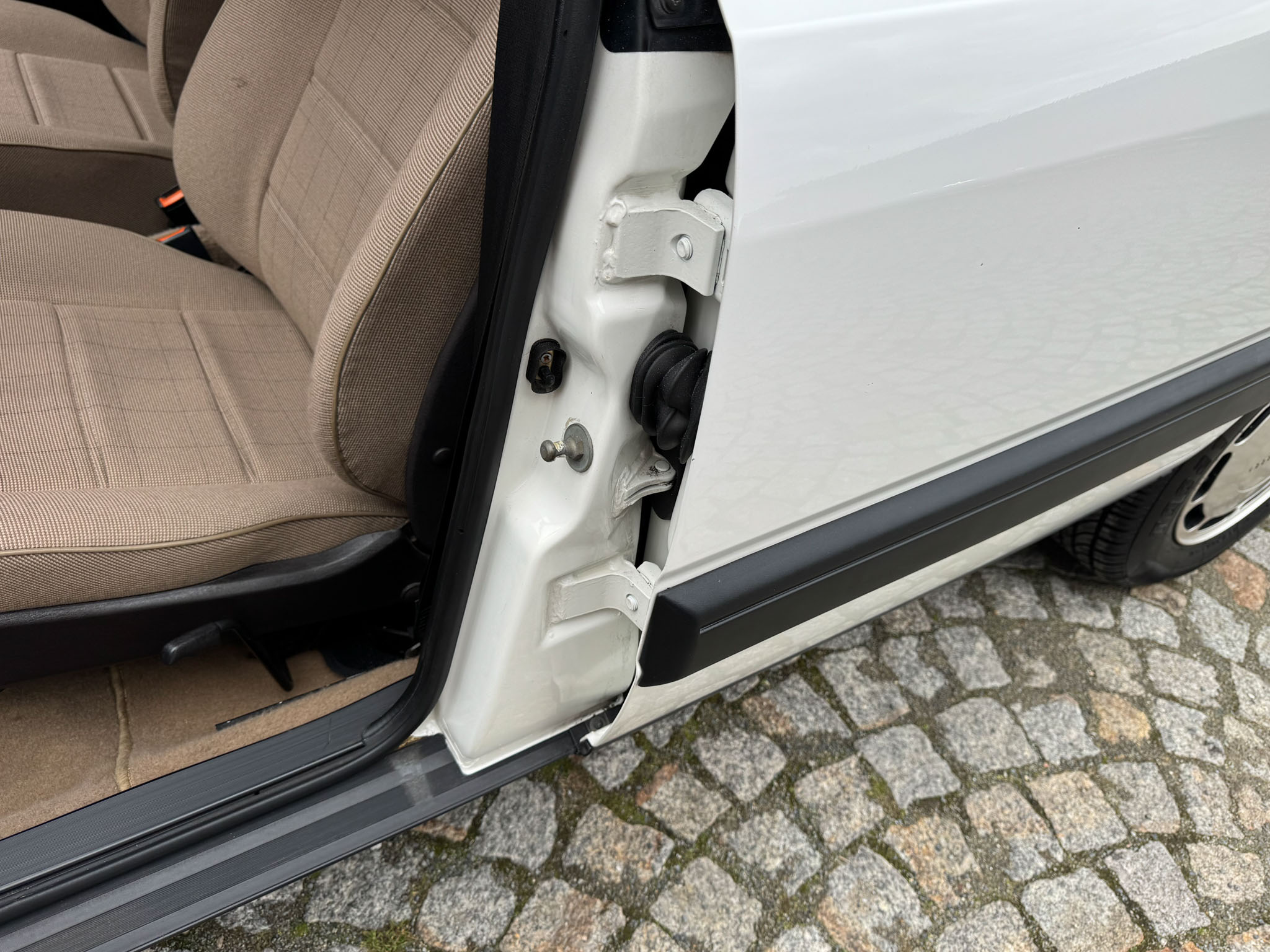 Wnętrze zachowane w idealnym stanie, z minimalnymi śladami użytkowania. Tapicerka nie wykazuje żadnych śladów zużycia, fotele wyglądają prawie jak nowe. Mimo wieku materiały mają wciąż żywy kolor. Plastiki są matowe, jak nowe. Fabryczne radio Blaupunkt. Welurowe dywaniki jak nowe.