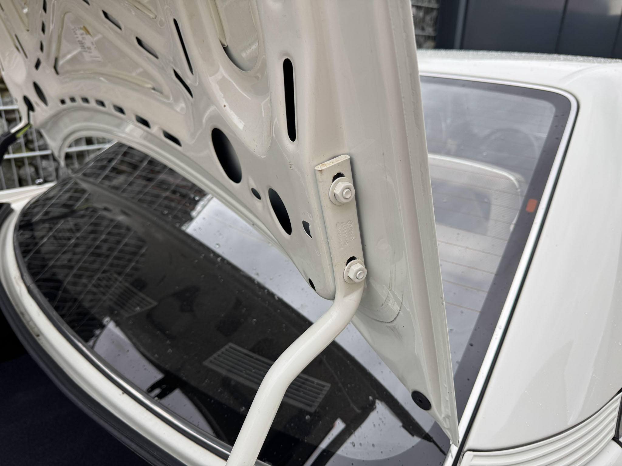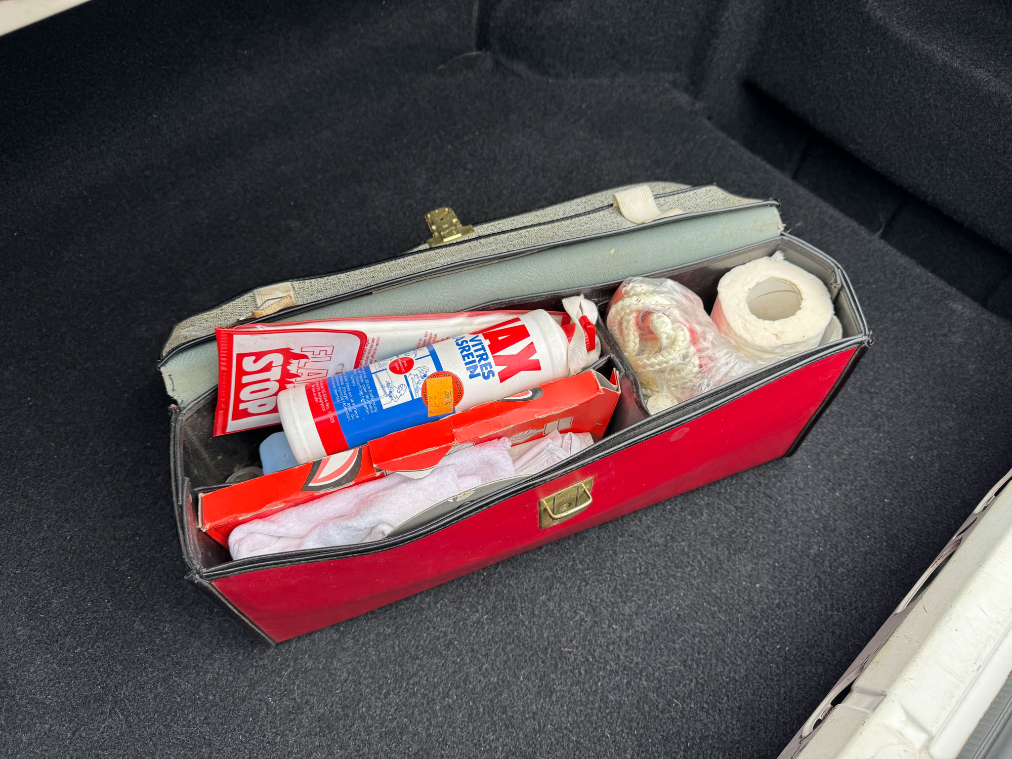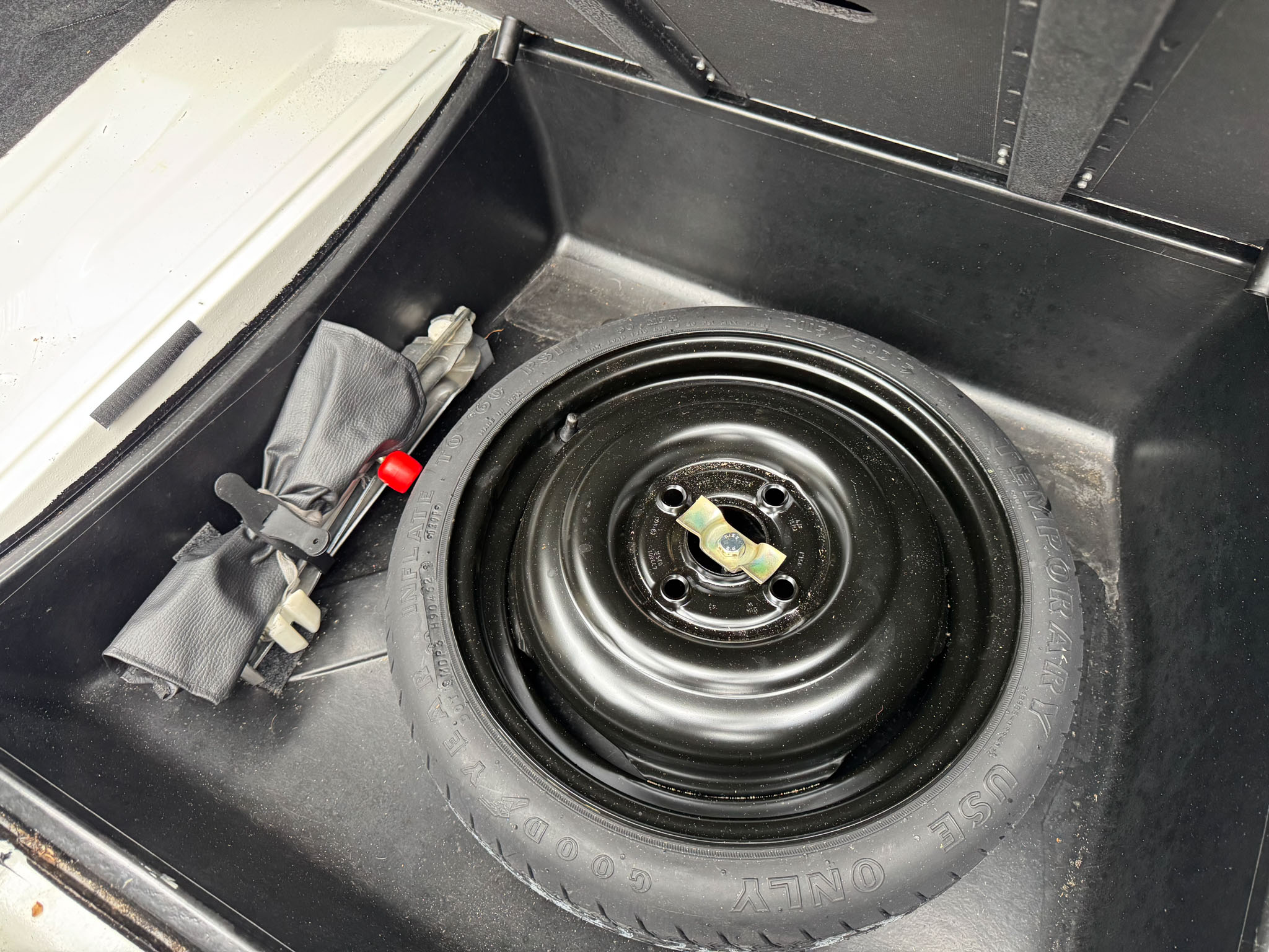 Felgi w idealnym stanie, bez widocznych uszkodzeń. Komplet opon zamontowanych w 2023, na których samochód przejechał maksymalnie 300 km. W bagażniku koło zapasowe oraz zestaw oryginalnych narzędzi. Walizka akcesoriów z tamtej epoki, z potrzebnymi materiałami do obsługi auta. Wszystkie wnęki i podłoga bagażnika jak nowe.