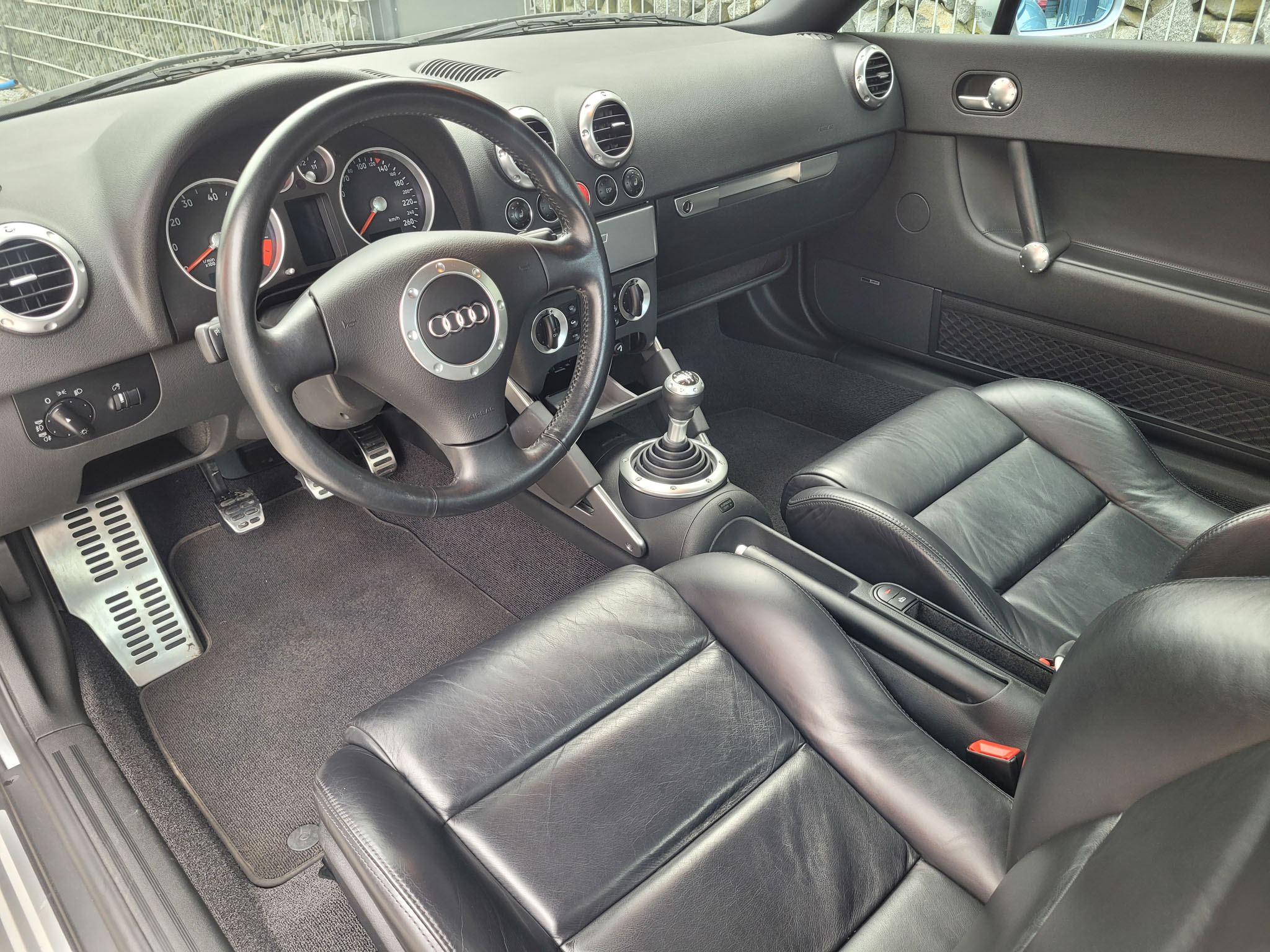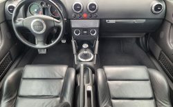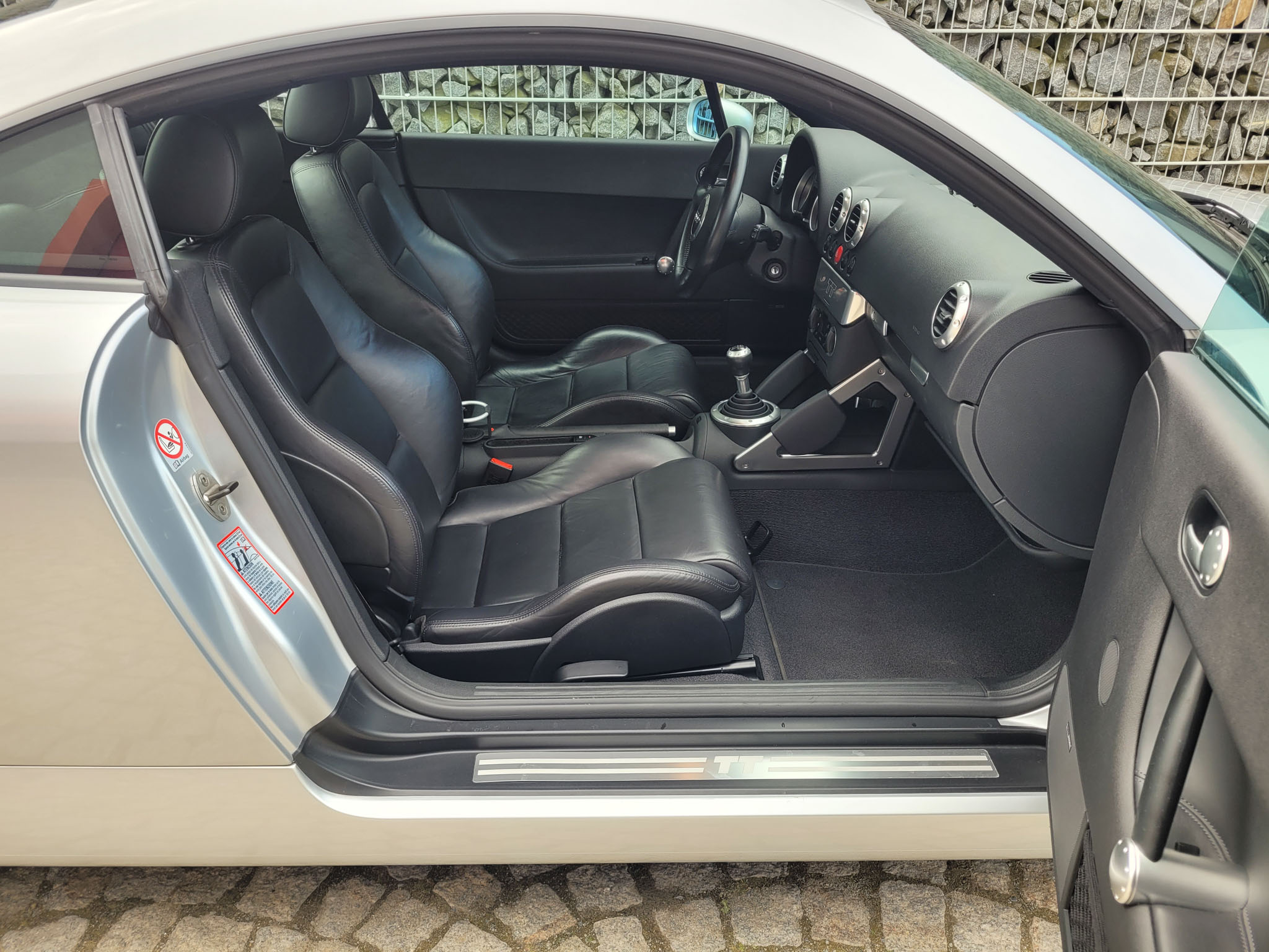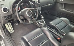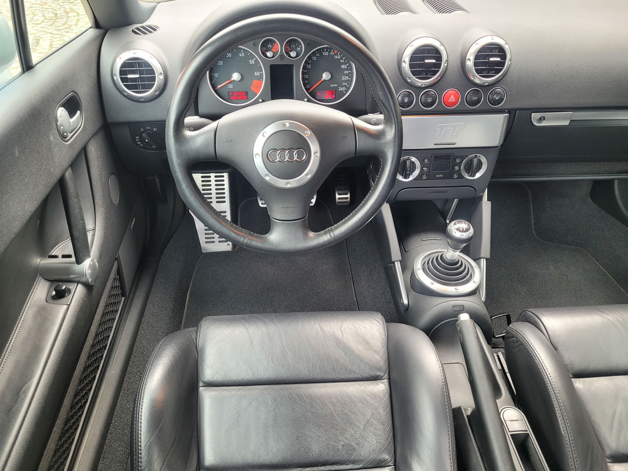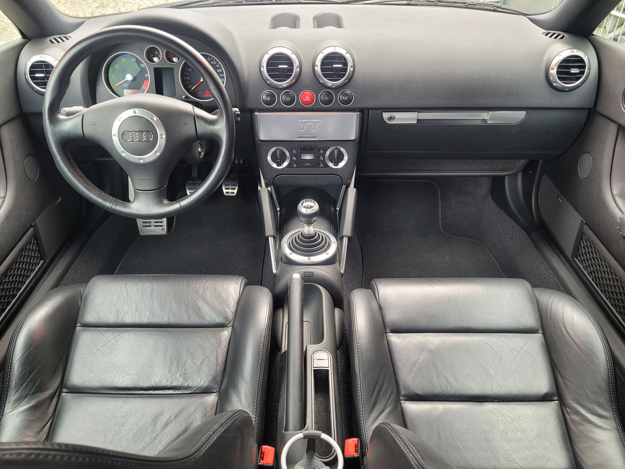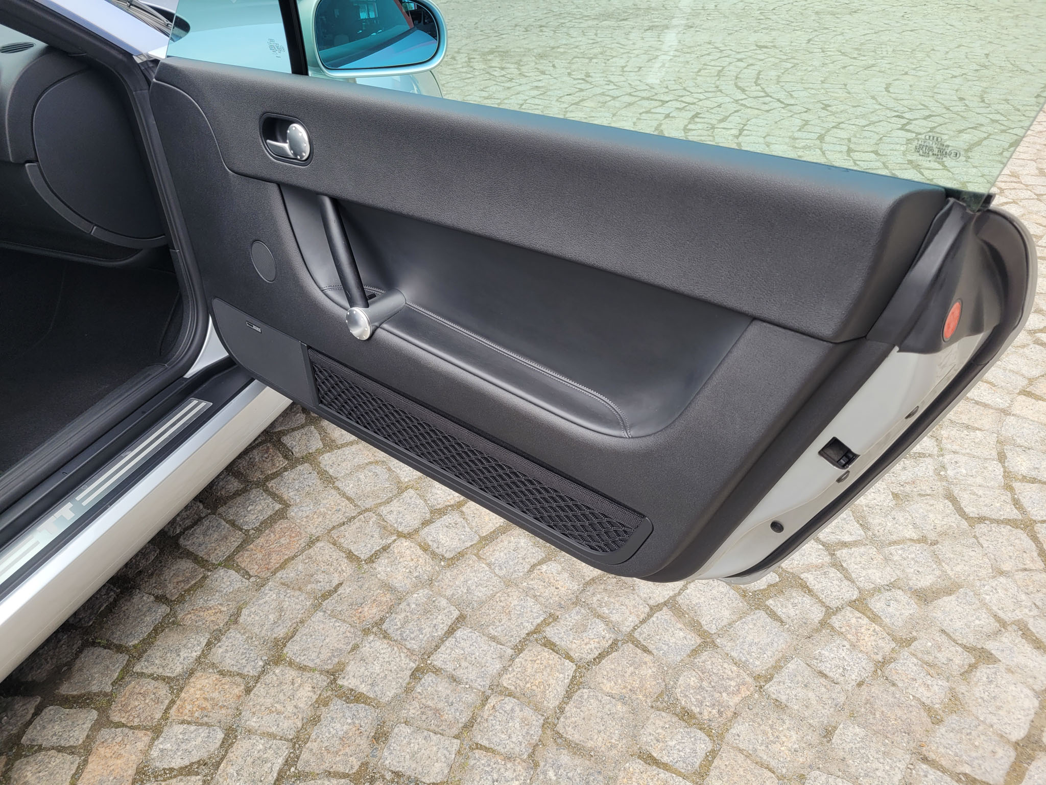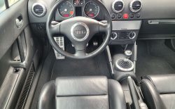 Wnętrze zachowane w bardzo dobrym stanie, widoczne jedynie minimalne ślady użytkowania. Tapicerka bardzo ładna, bez przetarć czy uszkodzeń. Żadne elementy nie były obszywane czy poddawane regeneracji. Oryginalne radio Audi Concert. Oryginalne dywaniki welurowe. Wszystkie zegary sprawne. Środkowy wyświetlacz komputera posiada kilka martwych pikseli z racji wieku- typowa bolączka TT z tamtych lat. Plastiki matowe bez rys czy pęknięć.