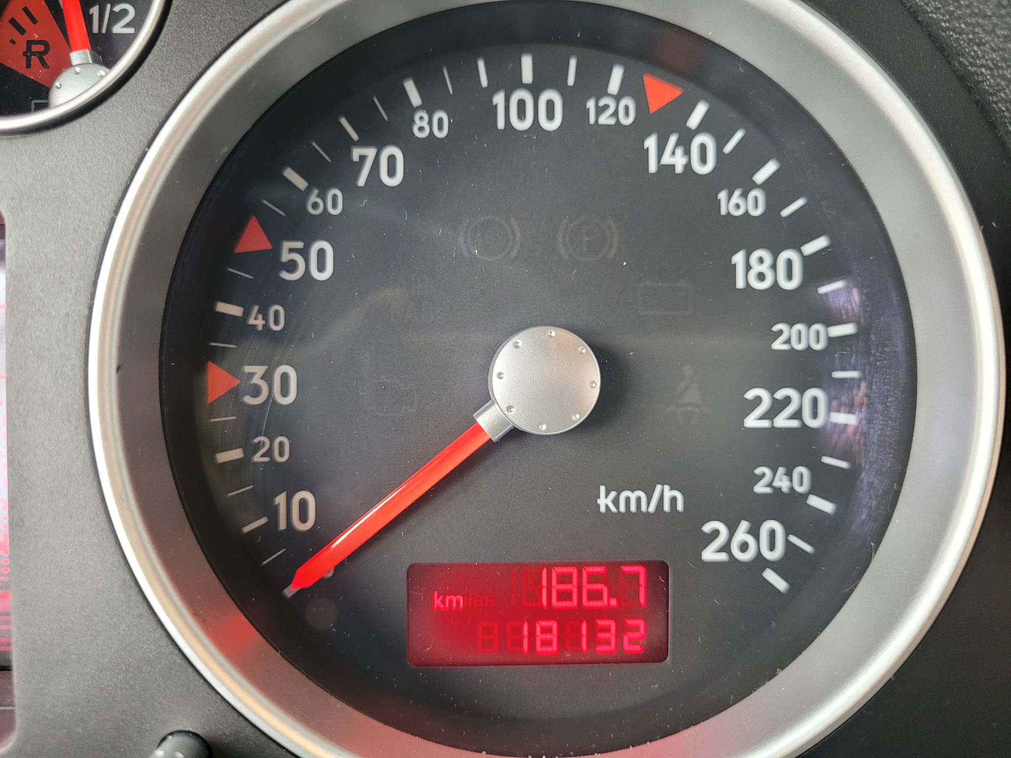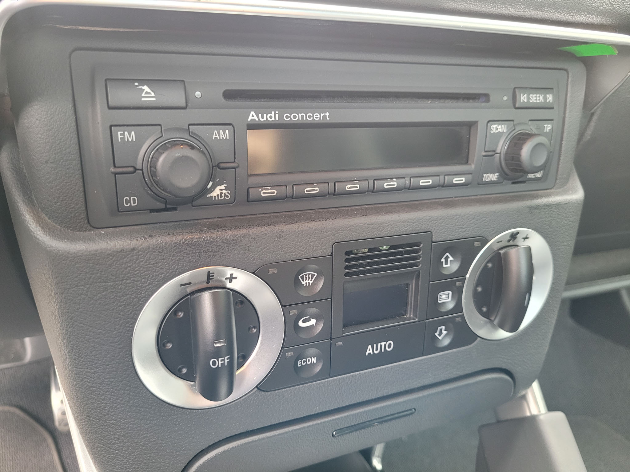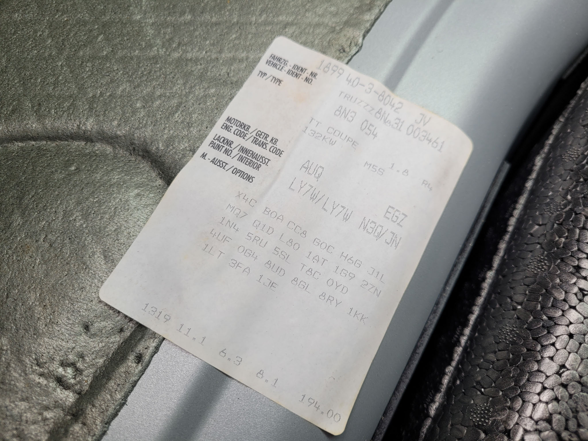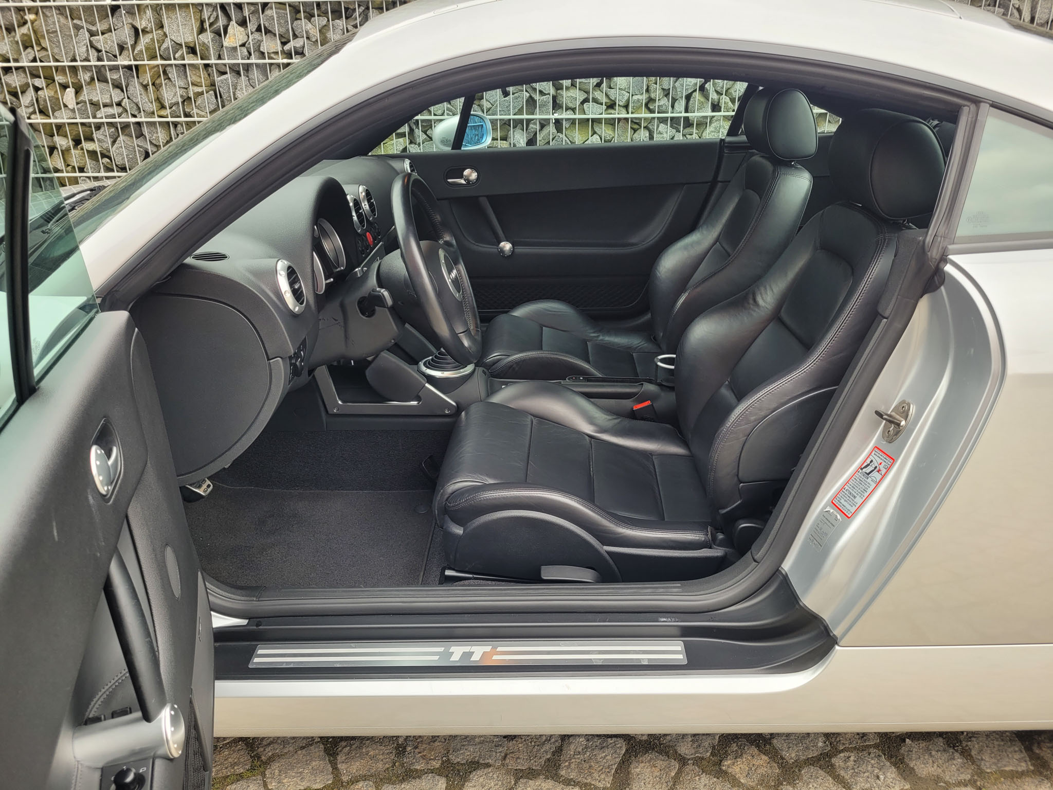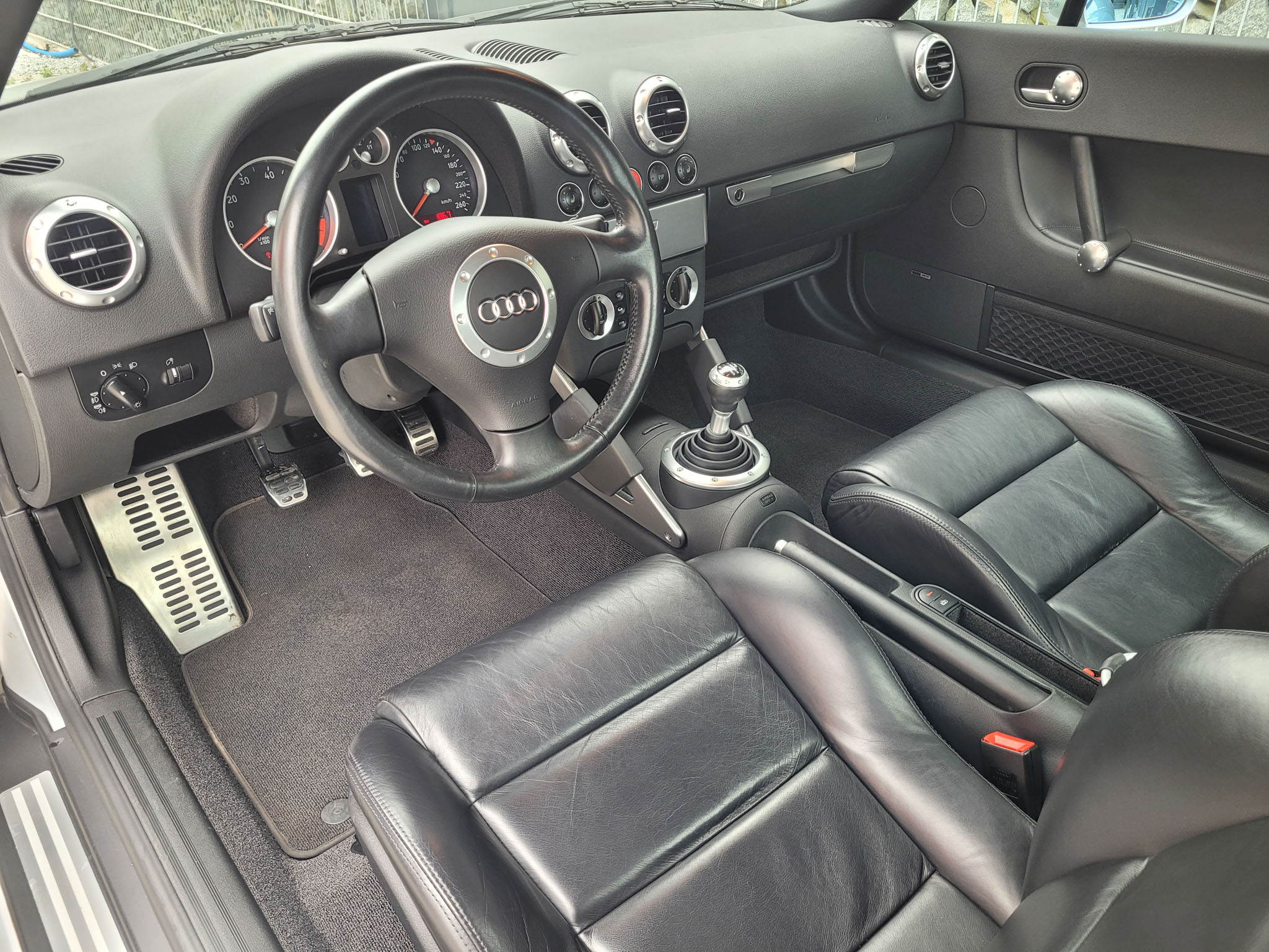 Wnętrze zachowane w bardzo dobrym stanie, widoczne jedynie minimalne ślady użytkowania. Tapicerka bardzo ładna, bez przetarć czy uszkodzeń. Żadne elementy nie były obszywane czy poddawane regeneracji. Oryginalne radio Audi Concert. Oryginalne dywaniki welurowe. Wszystkie zegary sprawne. Środkowy wyświetlacz komputera posiada kilka martwych pikseli z racji wieku- typowa bolączka TT z tamtych lat. Plastiki matowe bez rys czy pęknięć.