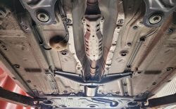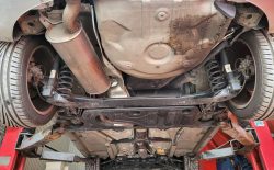 Nadwozie zachowane w idealnym stanie. Nie posiada uszkodzeń czy widocznych mankamentów. Brak widocznej korozji. Reflektory przednie i tylne oryginalne bez uszkodzeń. Wszystkie szyby oryginalne łącznie z czołową. Podwozie praktycznie jak nowe, widać jeszcze fabryczny wosk i naklejki na elementów zawieszenia.