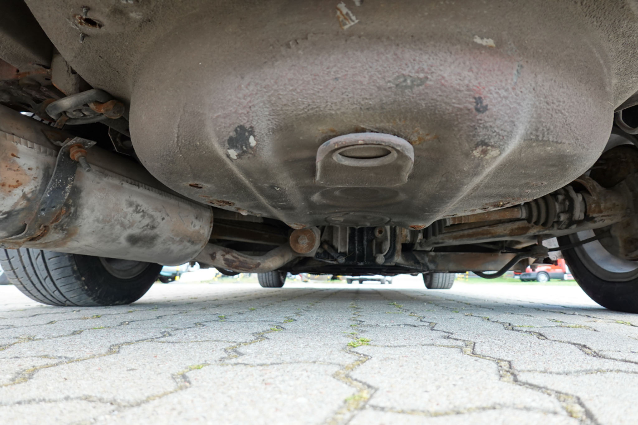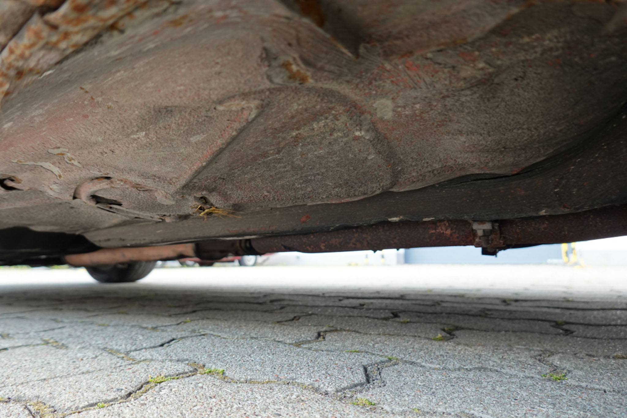 Podłoga zdrowa – z jedynie drobnym nalotem powierzchownej korozji, którą wystarczy wyczyścić i zabezpieczyć.