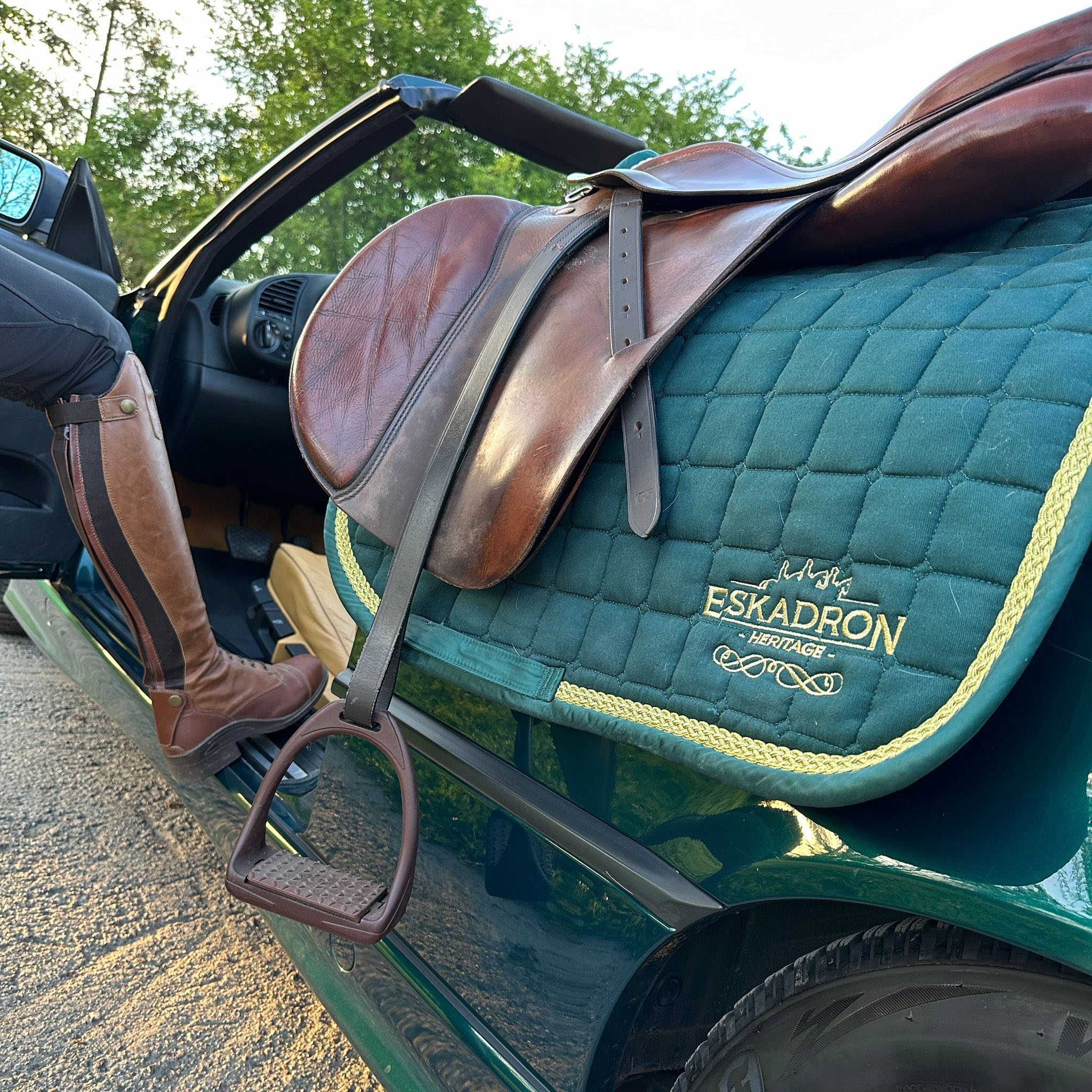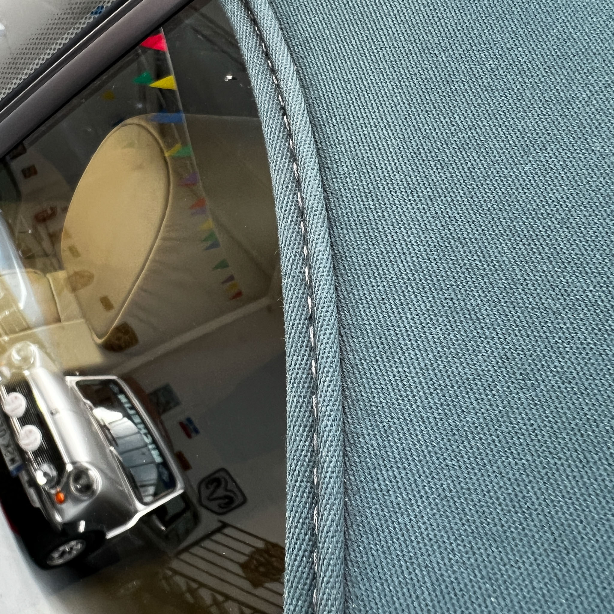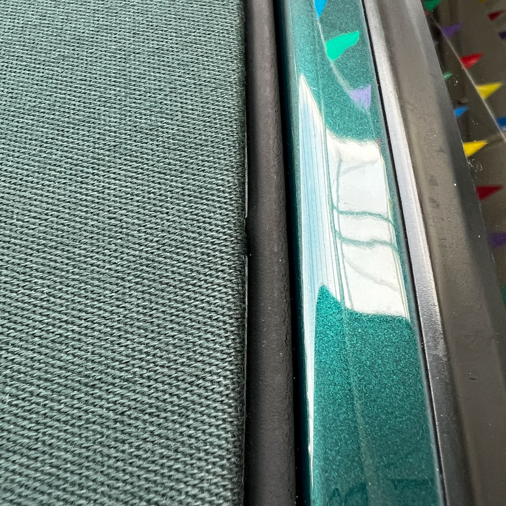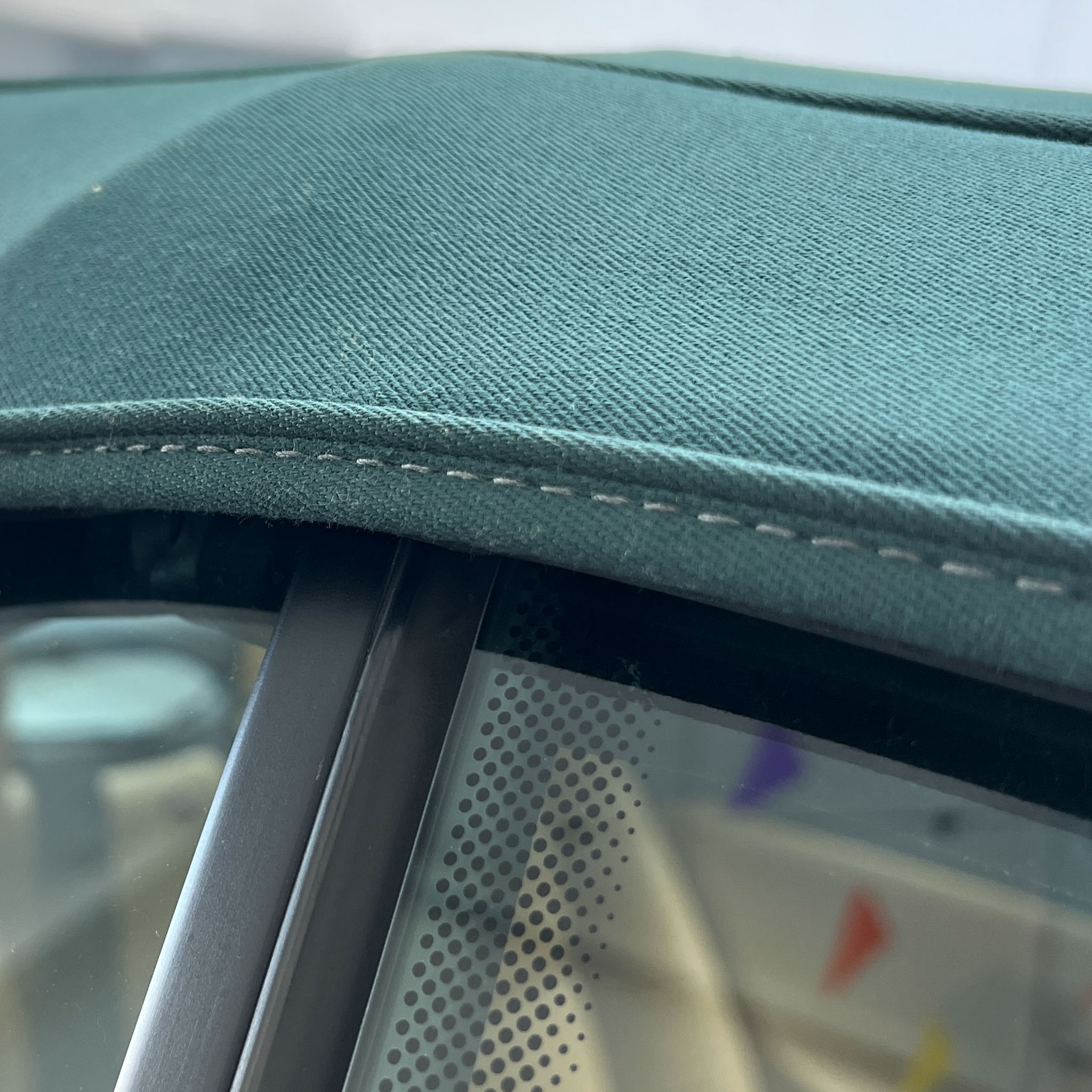 Piękny dach w pasującej zieleni składa się bez najmniejszych zarzutów i wygląda jak w 5-letnim cabrio. Szyba w dachu jest nadal w bardzo przyzwoitej kondycji, przejrzysta i bez załamań.