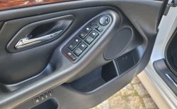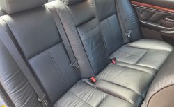 Wnętrze jest kompletne, zachowane w idealnym stanie, z minimalnymi śladami użytkowania. Tapicerka foteli i boczków wygląda prawie jak nowa, nie posiada uszkodzeń, rozdarć czy plam. Wykończenia drewniane jak nowe, mają żywy kolor. Plastiki matowe. Dywaniki jak nowe, podsufitka do podklejenia – typowa bolączka BMW z tamtych lat. Wyświetlacze bez martwych pikseli. Wszystkie elementy wyposażenia dodatkowego sprawne.