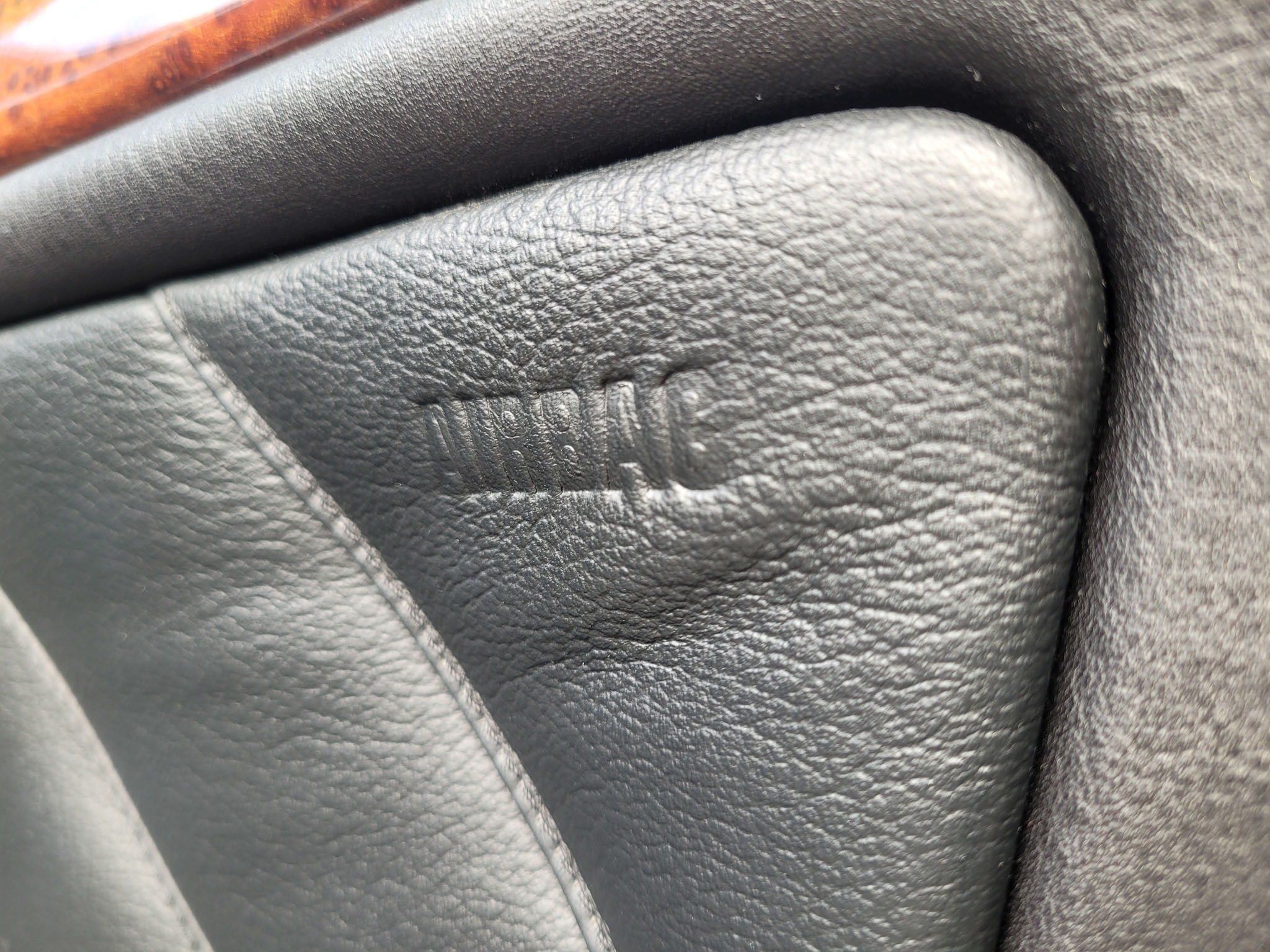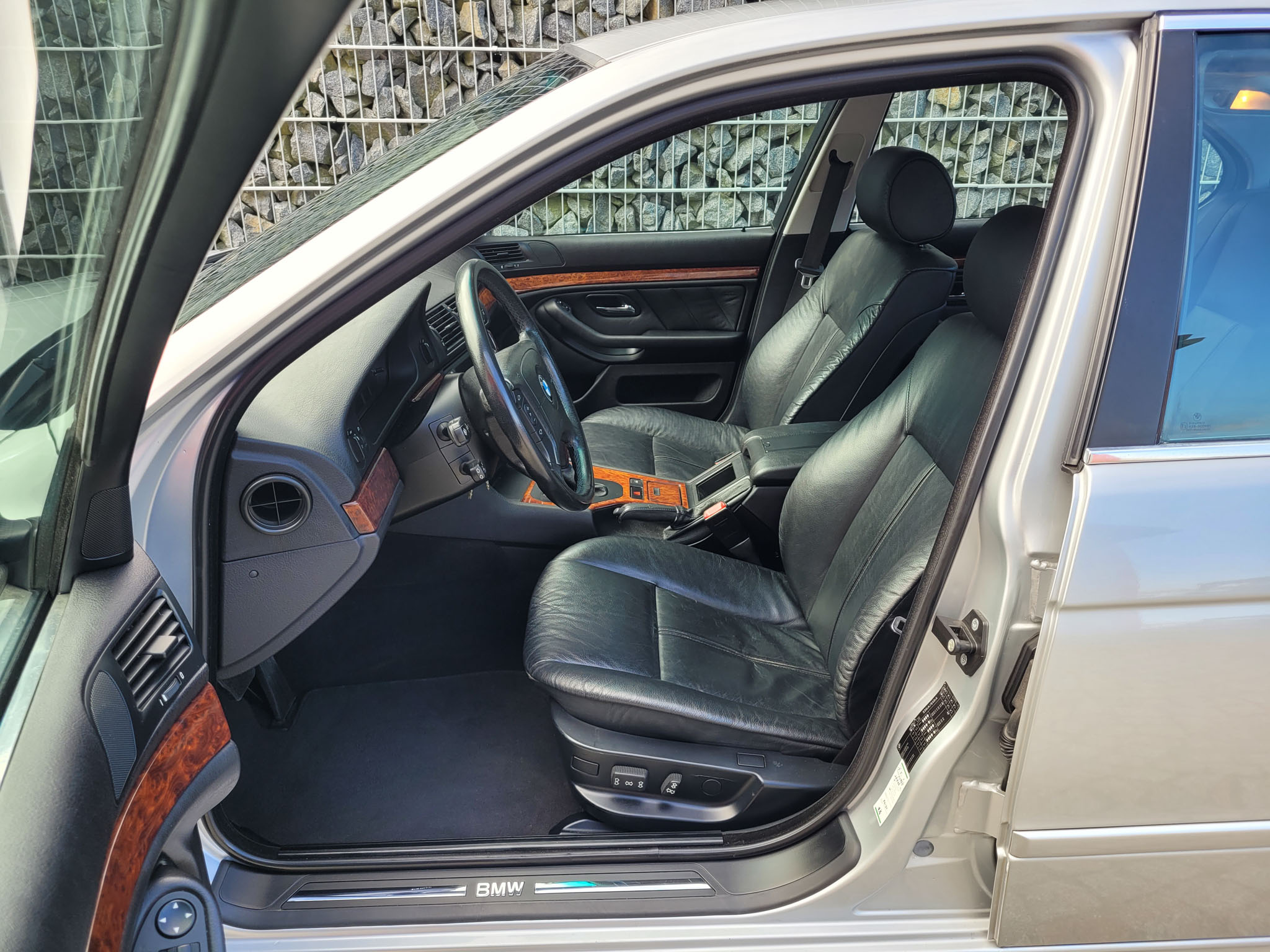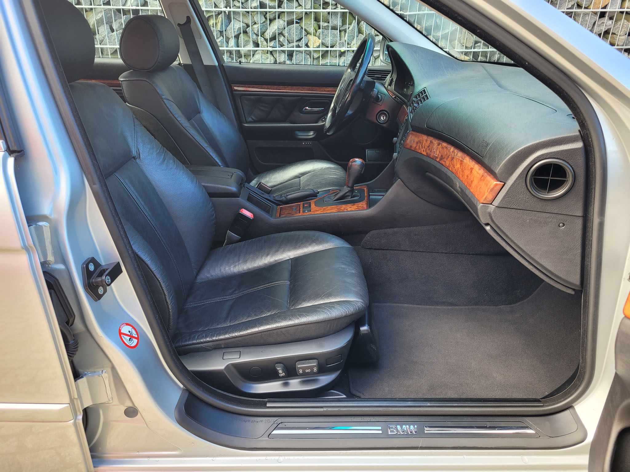 Wnętrze jest kompletne, zachowane w idealnym stanie, z minimalnymi śladami użytkowania. Tapicerka foteli i boczków wygląda prawie jak nowa, nie posiada uszkodzeń, rozdarć czy plam. Wykończenia drewniane jak nowe, mają żywy kolor. Plastiki matowe. Dywaniki jak nowe, podsufitka do podklejenia – typowa bolączka BMW z tamtych lat. Wyświetlacze bez martwych pikseli. Wszystkie elementy wyposażenia dodatkowego sprawne.