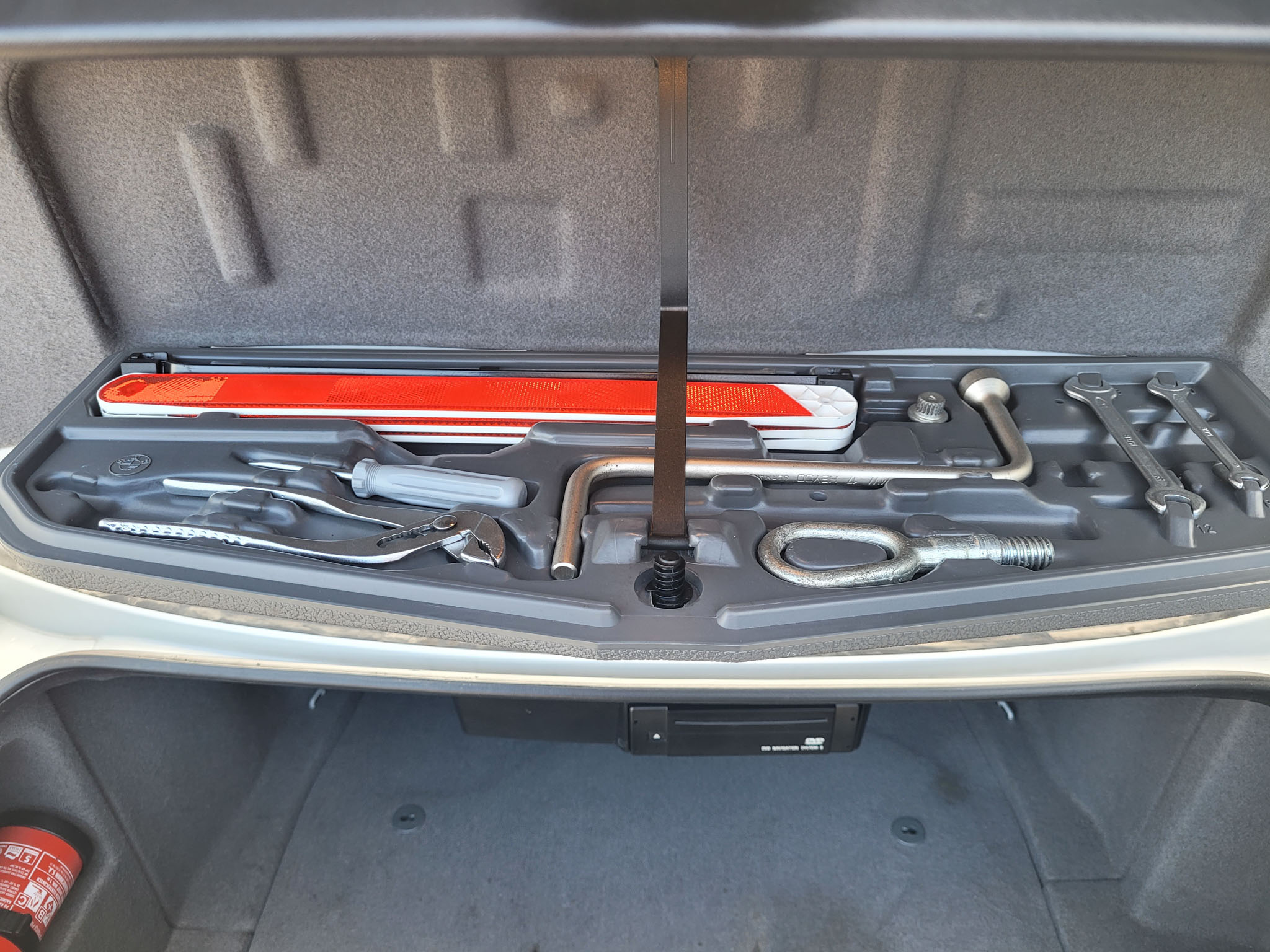 Felgi fabryczne zachowane w dobrym stanie, z drobnymi odpryskami. Komplet prawie nowych opon letnich klasy premium Goodyear założonych na wiosnę 2023 r. – przejechały około 700 km.