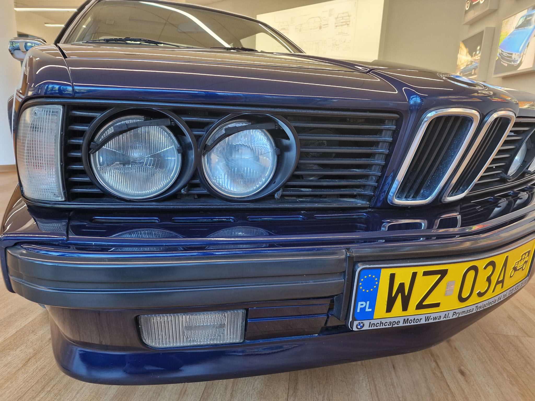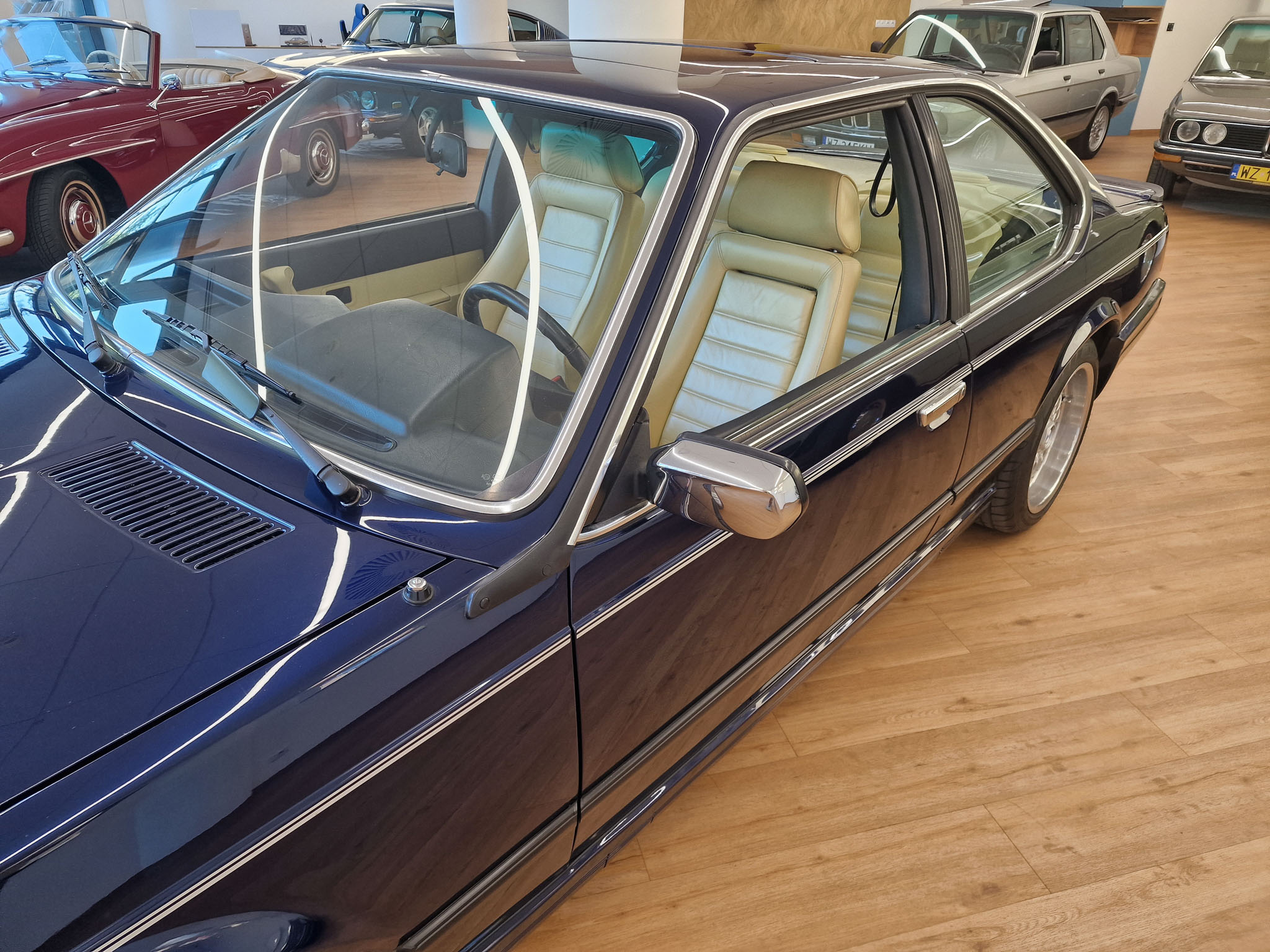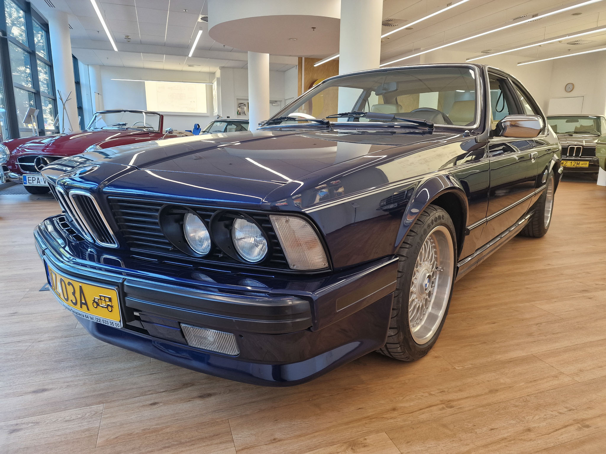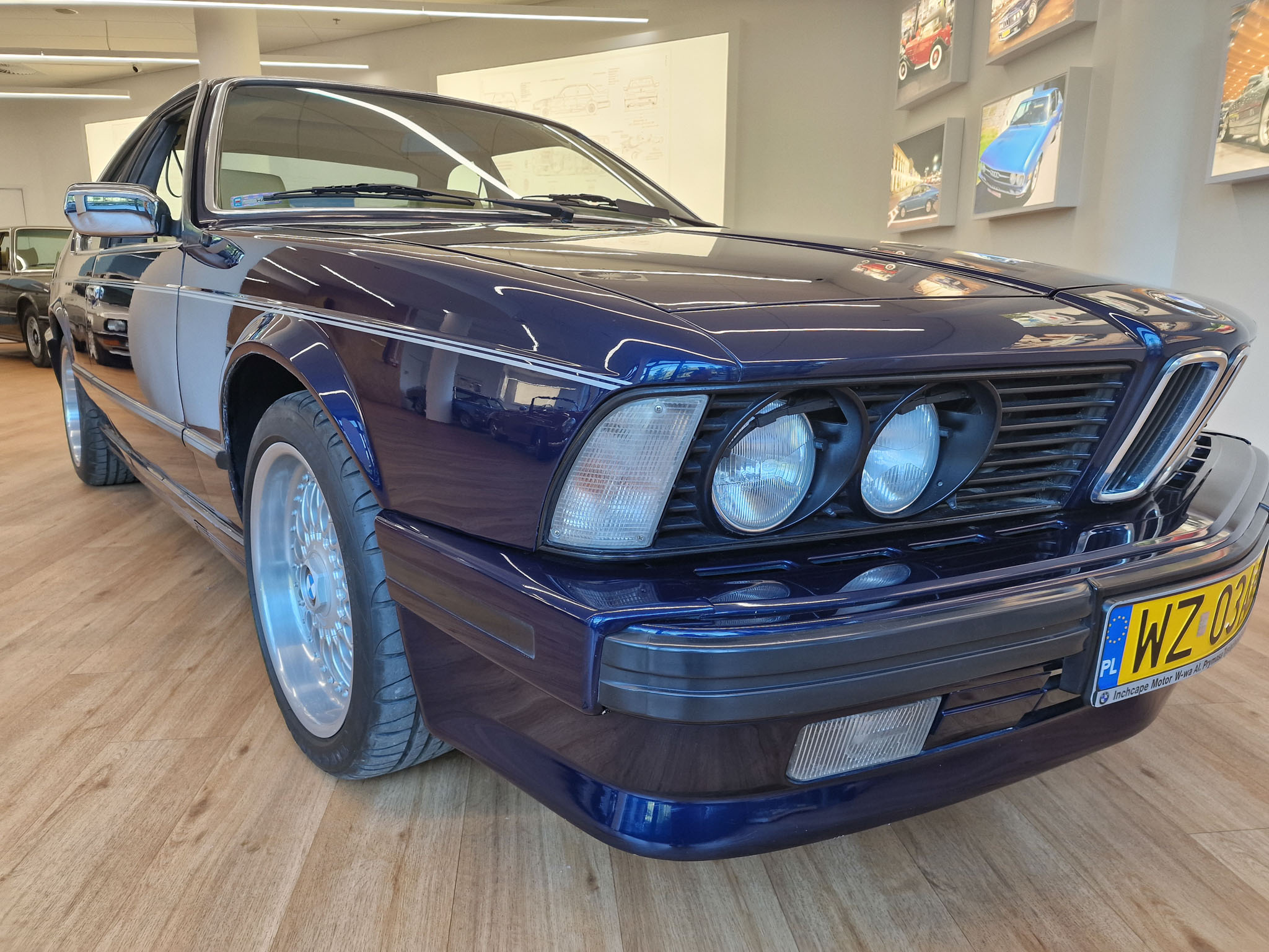 Nasz egzemplarz to samochód, bez którego nie byłoby Classic Cars Warsaw. Ten model 20 lat temu wzbudził we mnie pasję do klasycznej motoryzacji, którą interesuje się do dzisiaj. 20 lat temu mój znajomy zwrócił moją uwagę na fajne sportowe coupe bawarskiej marki, które nazywa się E24. Tej samej nocy w stanie lekkiego zauroczenia tym pięknym wozem oglądałem oferty w Internecie i moim oczom ukazało się to wspaniałe BMW w kolorze Royal Blue. Nie miałem wyboru, musiałem go zalicytować i los chciał, że kolejnego dnia wygrałem tę licytację. Koła historii zostały poruszone i musiałem odebrać ten samochód. Podczas oględzin byłem zaskoczony, jak bardzo podobał mi się ten samochód. Kupiłem samochód w ciemno i byłem z niego bardzo zadowolony, i ciągle jestem z niego zadowolony. Samochód przez 20 lat ciągle ulepszałem, chciałem aby był idealny, w pełni sprawny i piękny. Samochód został sprowadzony ze Szwajcarii, gdzie miał jednego właściciela. Gdy był nowy, kosztował niesamowitą ilość pieniędzy, bo jest bardzo bogata wersja z największym i najnowocześniejszym wtedy silnikiem 3,5 litra z komputerem pokładowym „DME” (Digital Motor Electronics), sportowymi siedzeniami i automatyczną skrzynią biegów.