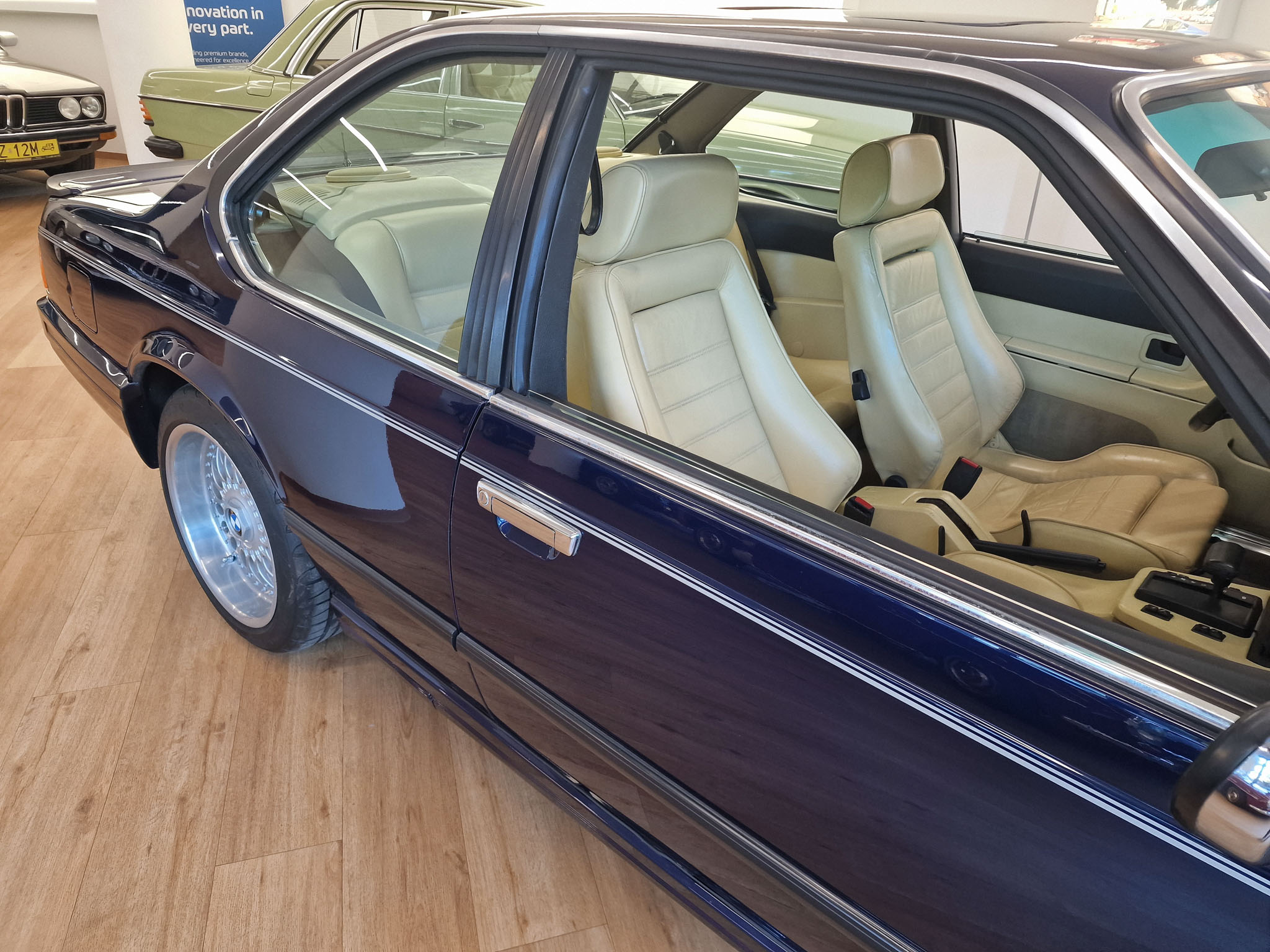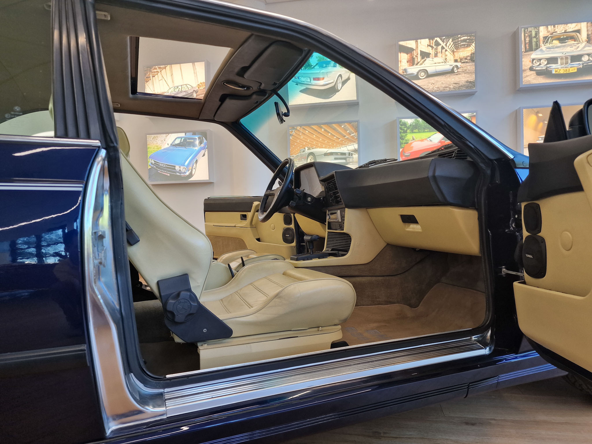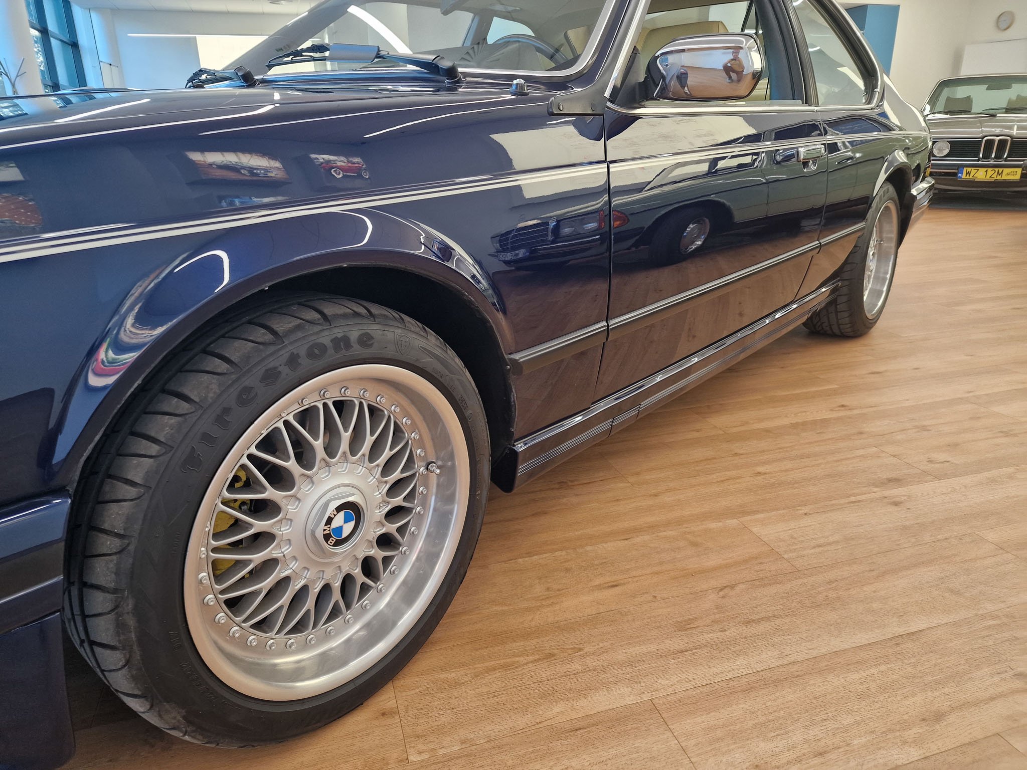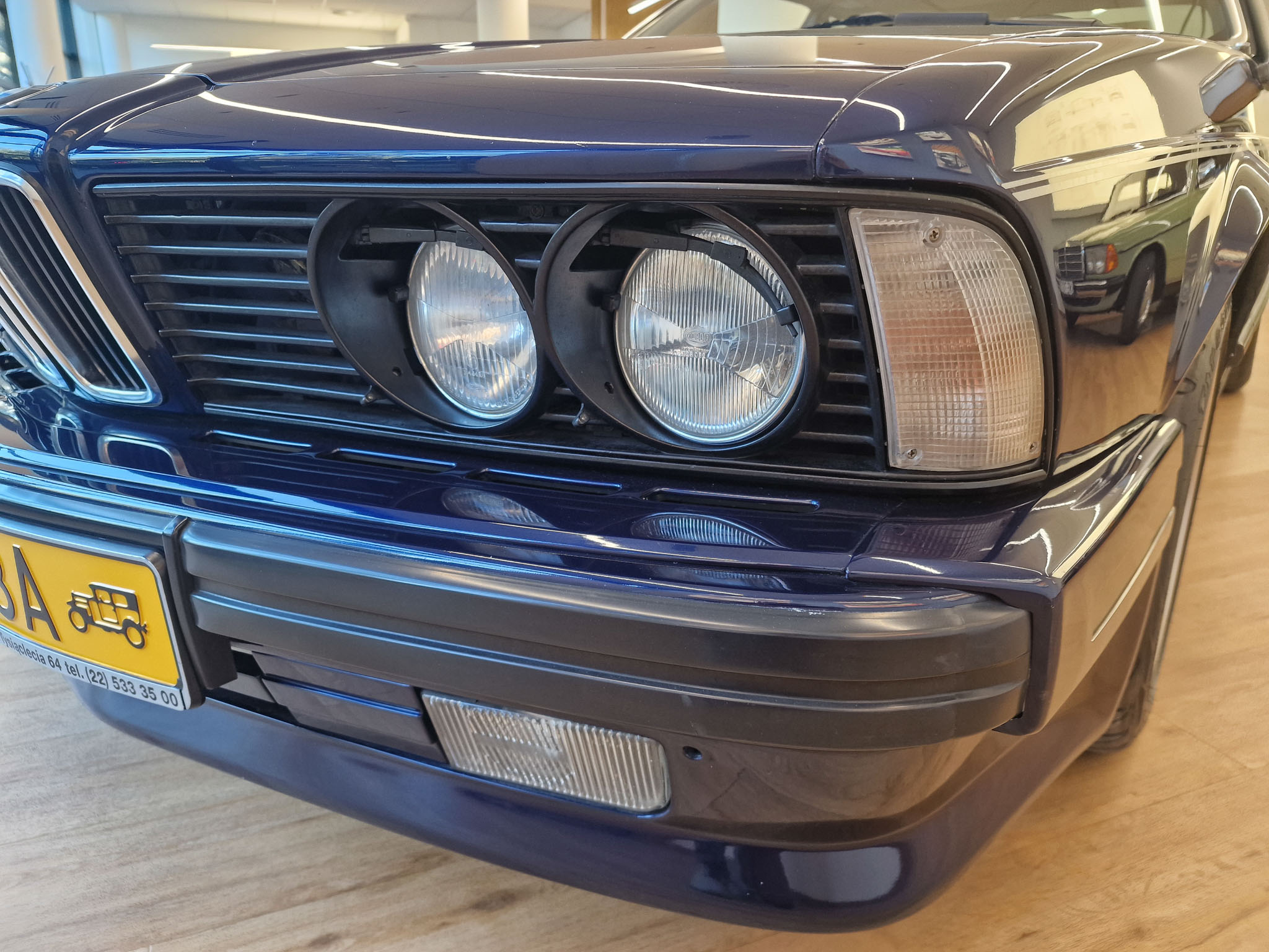 Nasz egzemplarz to samochód, bez którego nie byłoby Classic Cars Warsaw. Ten model 20 lat temu wzbudził we mnie pasję do klasycznej motoryzacji, którą interesuje się do dzisiaj. 20 lat temu mój znajomy zwrócił moją uwagę na fajne sportowe coupe bawarskiej marki, które nazywa się E24. Tej samej nocy w stanie lekkiego zauroczenia tym pięknym wozem oglądałem oferty w Internecie i moim oczom ukazało się to wspaniałe BMW w kolorze Royal Blue. Nie miałem wyboru, musiałem go zalicytować i los chciał, że kolejnego dnia wygrałem tę licytację. Koła historii zostały poruszone i musiałem odebrać ten samochód. Podczas oględzin byłem zaskoczony, jak bardzo podobał mi się ten samochód. Kupiłem samochód w ciemno i byłem z niego bardzo zadowolony, i ciągle jestem z niego zadowolony. Samochód przez 20 lat ciągle ulepszałem, chciałem aby był idealny, w pełni sprawny i piękny. Samochód został sprowadzony ze Szwajcarii, gdzie miał jednego właściciela. Gdy był nowy, kosztował niesamowitą ilość pieniędzy, bo jest bardzo bogata wersja z największym i najnowocześniejszym wtedy silnikiem 3,5 litra z komputerem pokładowym „DME” (Digital Motor Electronics), sportowymi siedzeniami i automatyczną skrzynią biegów.