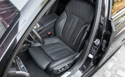 Wymienię tylko kilka takich drogich smaczków, jak przednie reflektory laserowe czy pakiet Executive Drive Pro wraz ze skrętną tylną osią, co sprawia, że auto niesamowicie się prowadzi i jest bardzo zwrotne mimo swych gabarytów. Tu podkreślę, że jest to tzw. wersja krótka, co sprawia, że mamy do czynienia z wyjątkowo sportową limuzyną, a zarazem po wciśnięciu jednego przycisku bardzo komfortową, ze znakomicie wygodnymi fotelami wyposażonych w masaże i wentylację, ogrzewane i w pełni regulowane, z pamięcią.