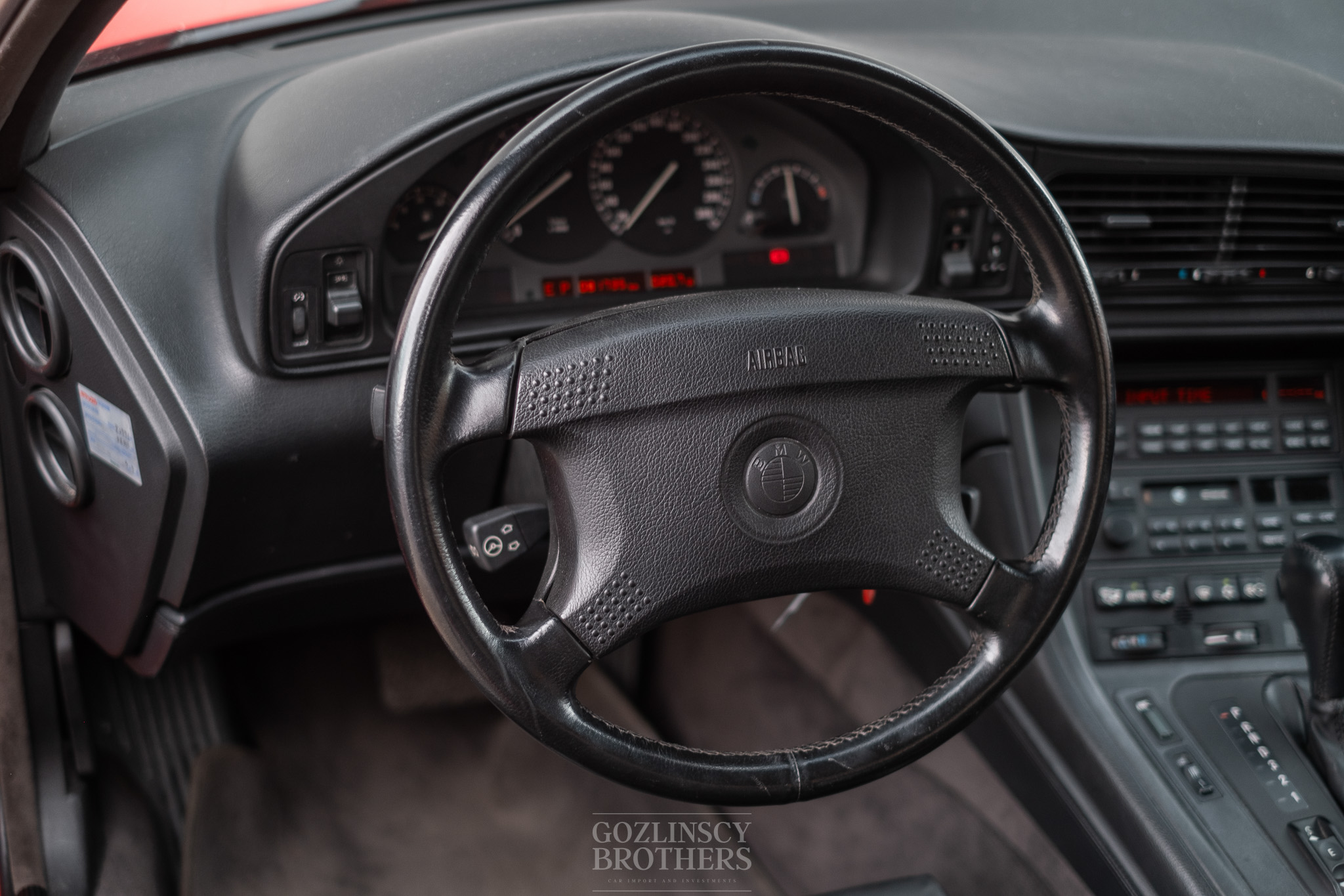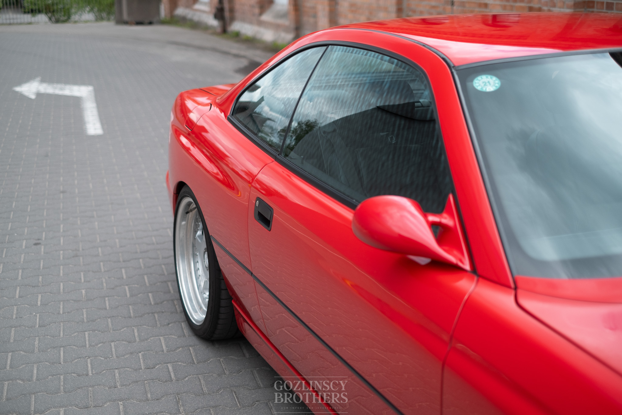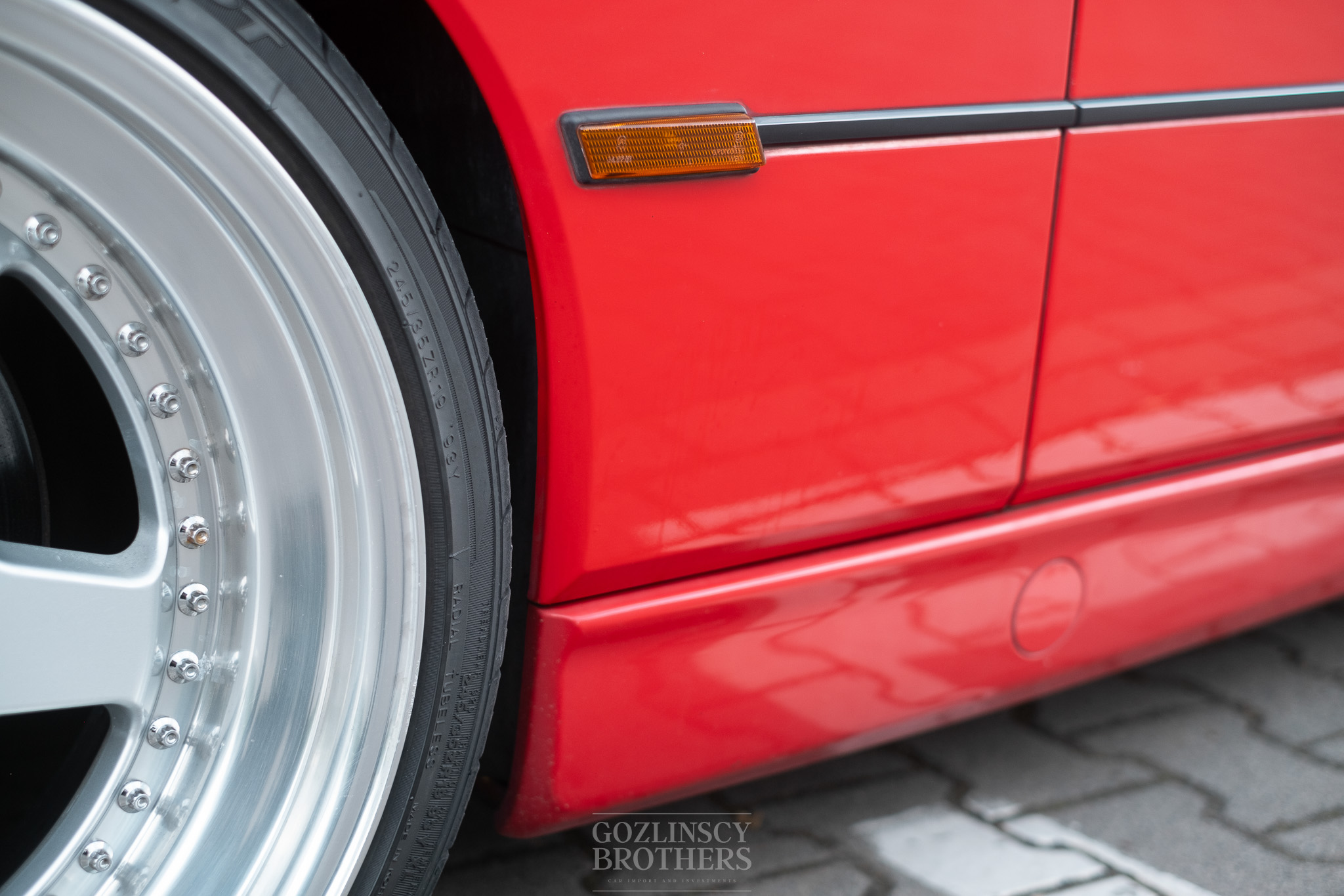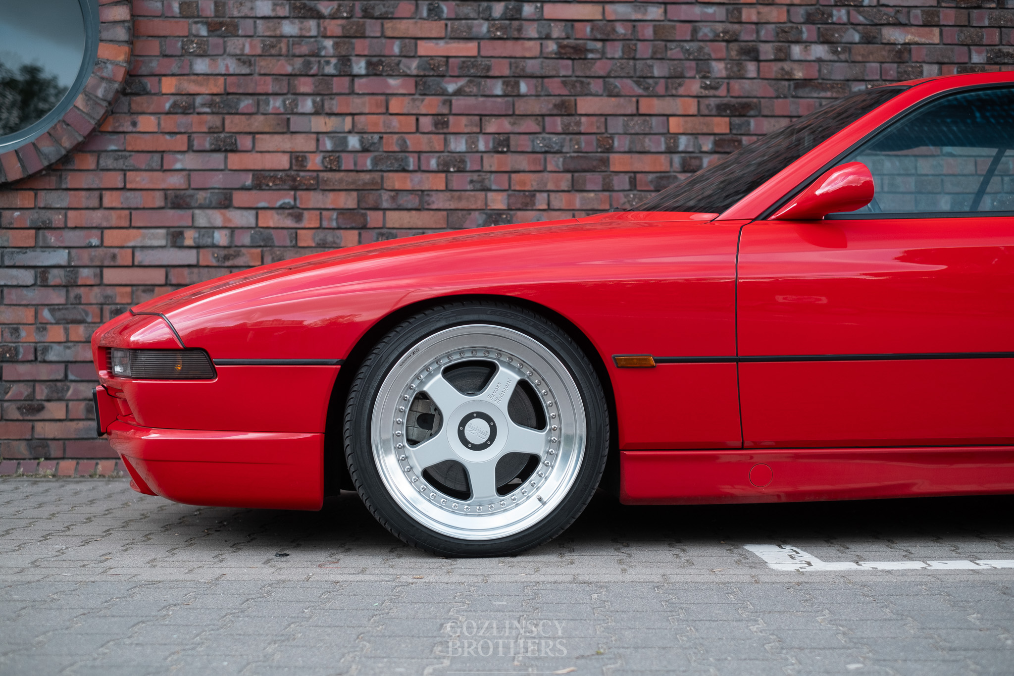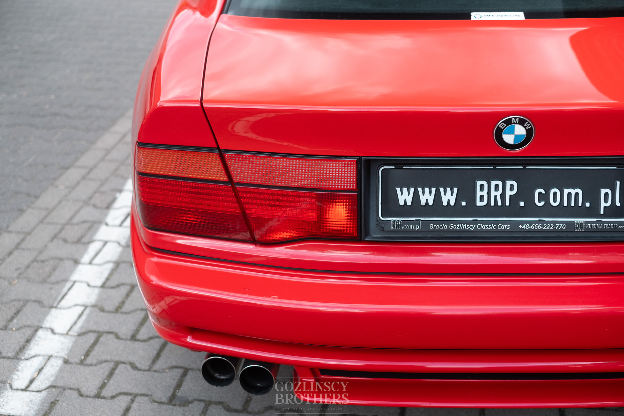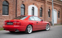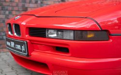 BMW 850i E31 było topowym modelem marki, podbijającym segment rynku, na którym BMW nigdy wcześniej obecne nie było. Klasa GT była domeną takich marek, jak Aston Martin, Jaguar czy Porsche. To samochody luksusowe, zapewniające wyjątkowy komfort i moc, która jest wystarczająca w każdej drogowej sytuacji. Klasa 8 od BMW wyposażona została w piękne i eleganckie nadwozie oraz silniki o wyłącznie ośmiu bądź dwunastu cylindrach. Stała się idealnym samochodem do autostradowych podroży i odwiedzania najdalszych zakątków Europy. Na przełomie lat 80. i 90. było w sferze najbardziej skrytych marzeń fanatyków marki, lecz wówczas rzadko kto miał okazję oglądać je na żywo. W sumie zbudowano ich 22800 sztuk, ale rzadko która prezentuje się dziś równie dobrze, jak ten egzemplarz. Tutaj dodatkowo mamy piękną konfigurację kolorów – „najszybszy” odcień lakieru, czyli 408 Brillantrot oraz czarna skórzana tapicerka we wnętrzu.