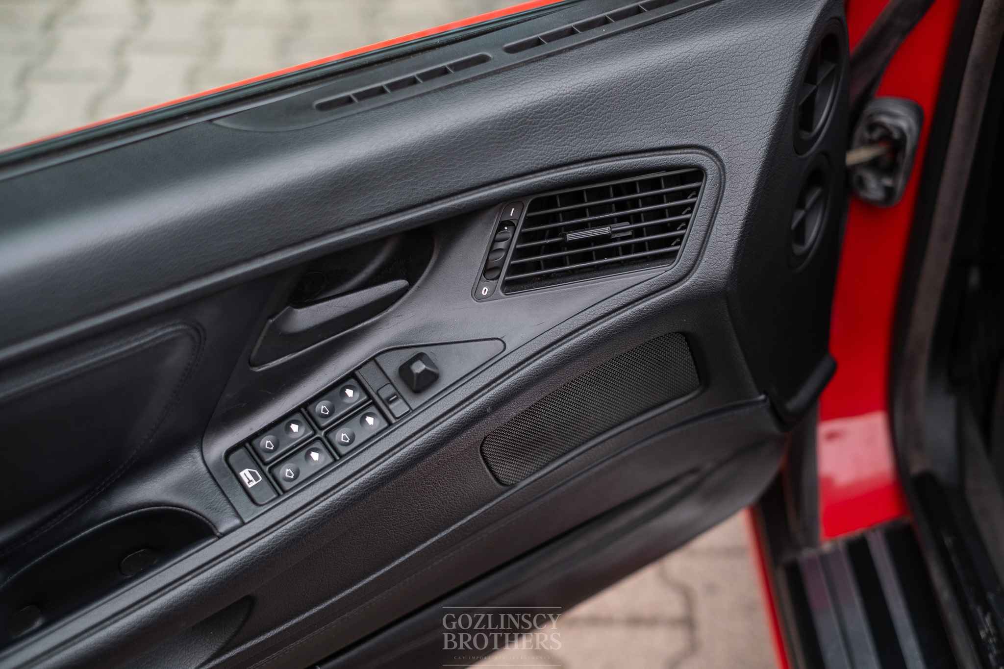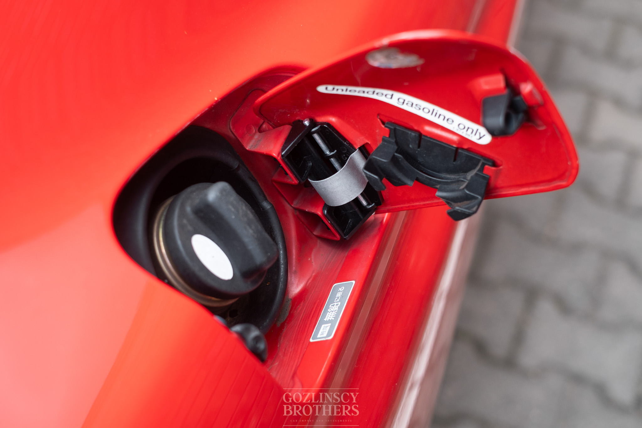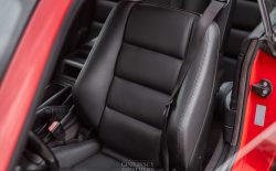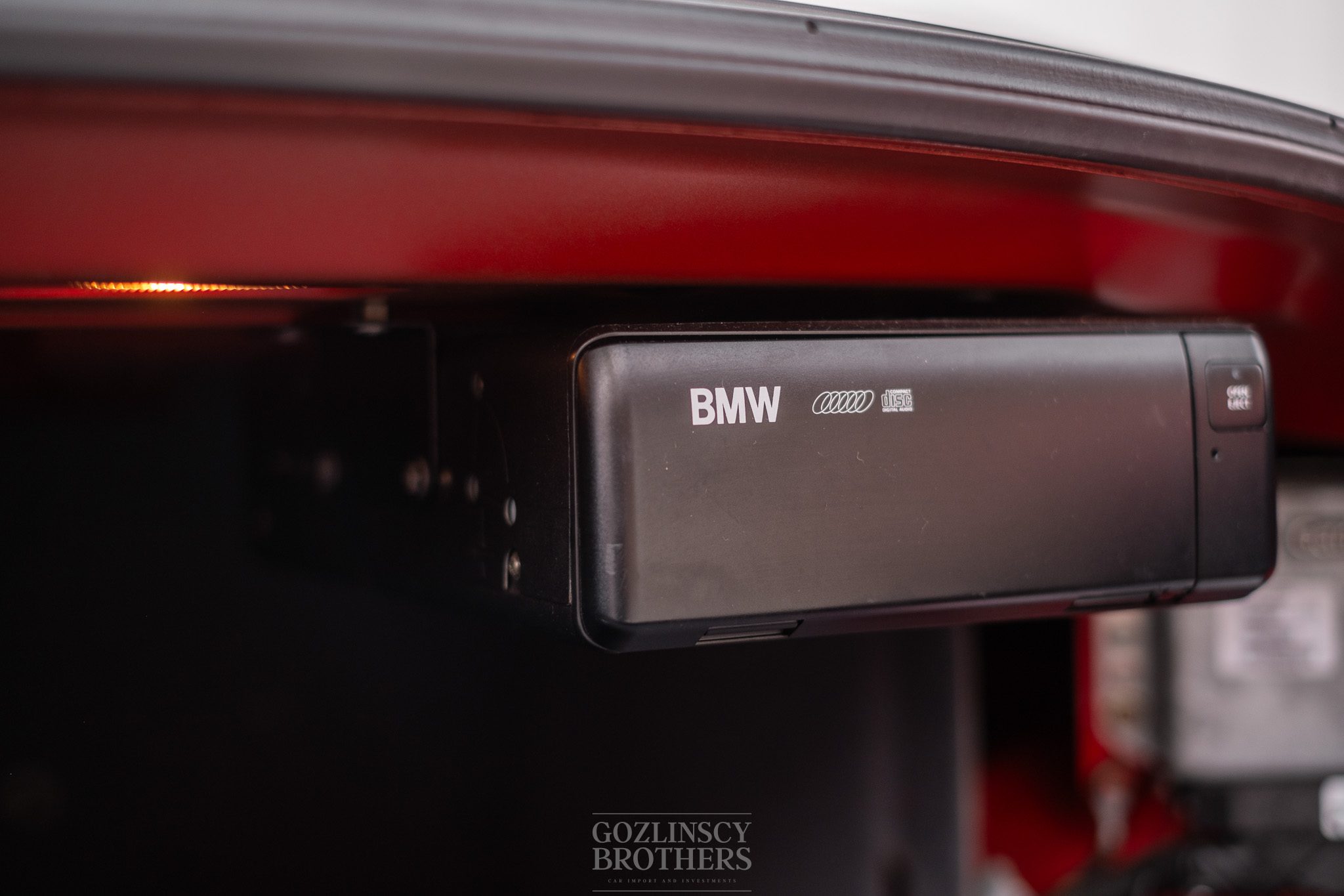 Wnętrze zachowane w świetnym stanie. Piękna i najbardziej pożądana kompozycja kolorystyczna: Brilliantrot z czarną skórzaną tapicerką i podsufitką z Alcantary.