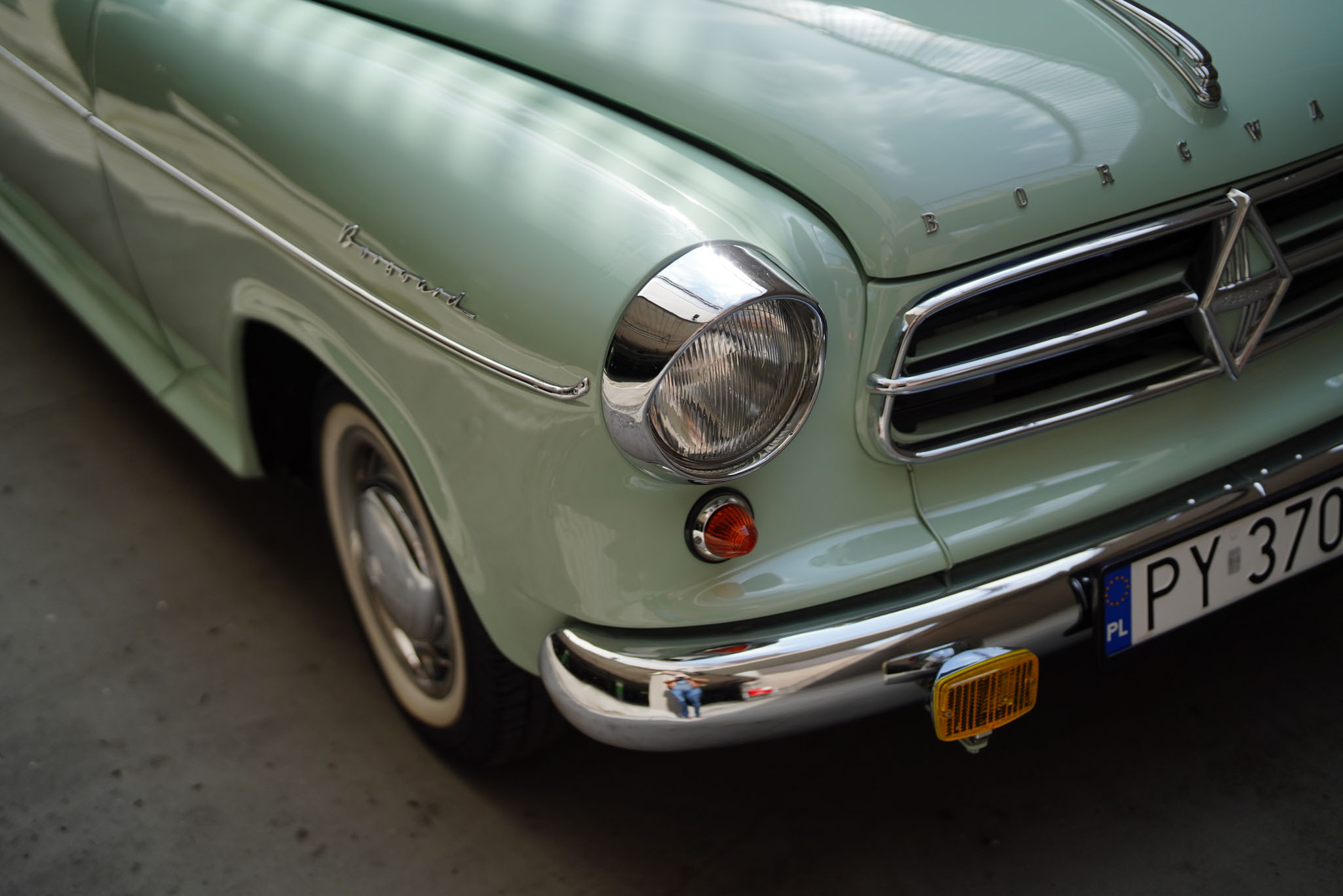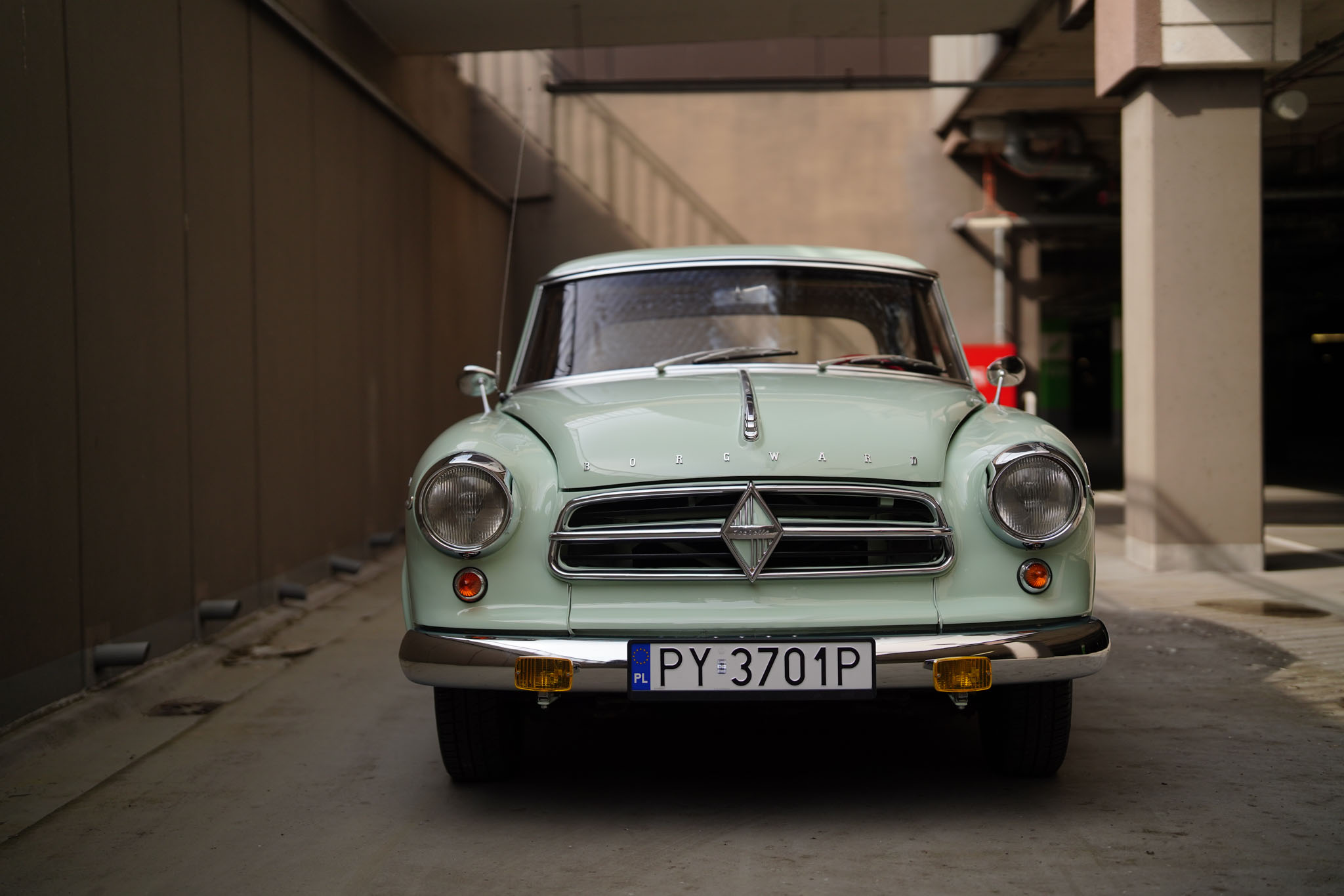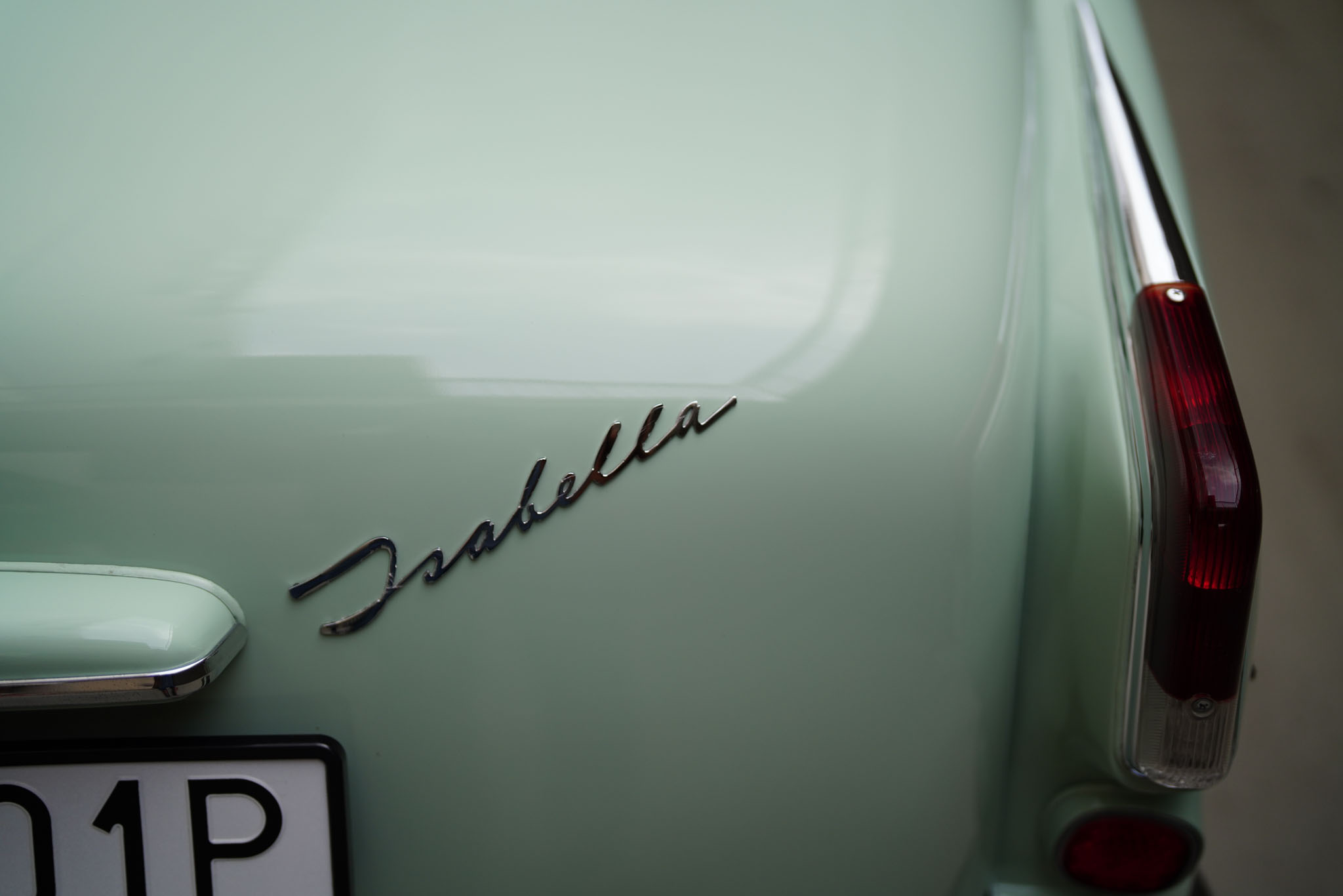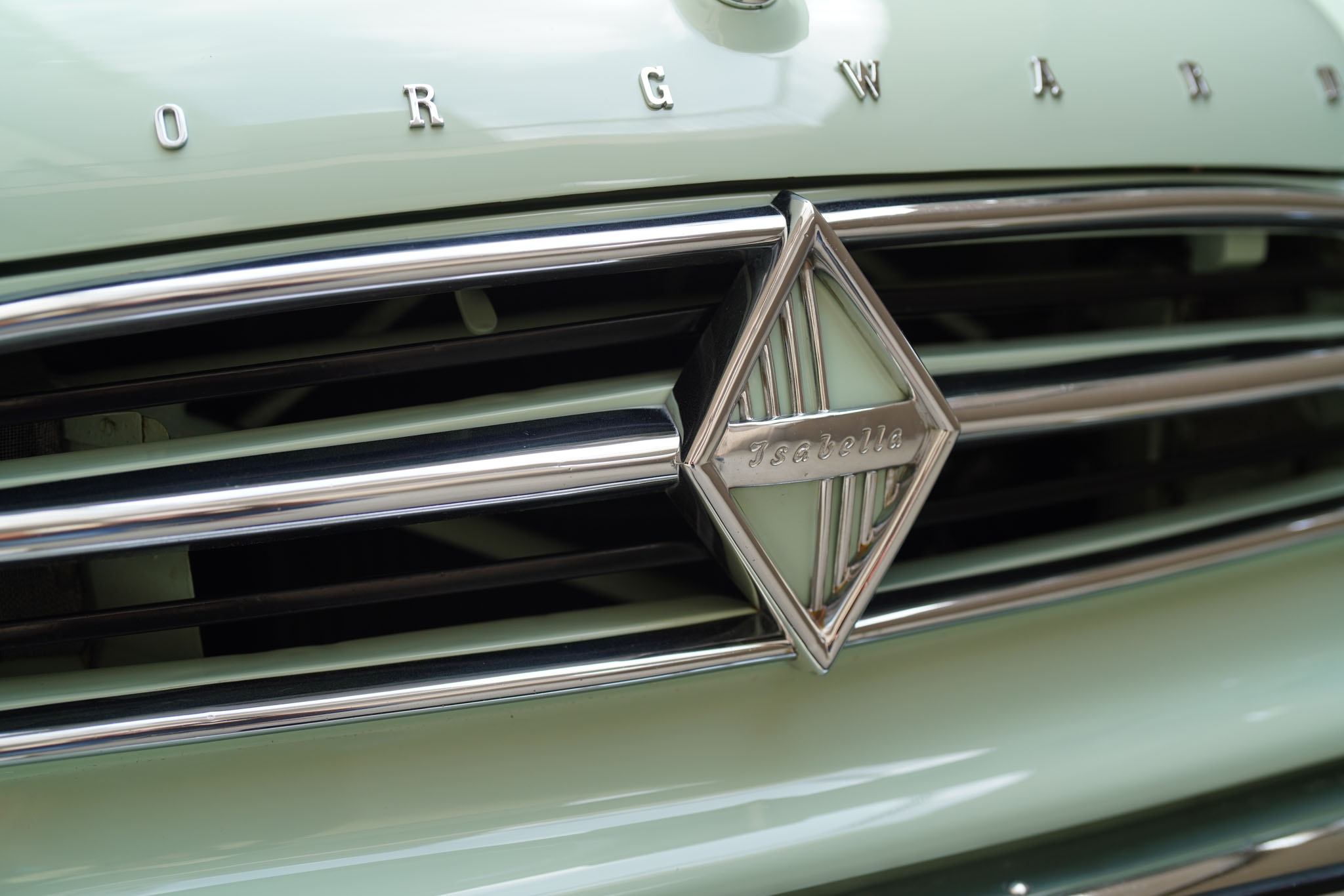 Marka Borgward owiana jest w Niemczech legendą nie mniejszą niż Tucker 48 w Stanach czy Syrena Sport w Polsce. Różnica jest taka, że w odróżnieniu od wcześniej wymienionych Borgwardy zdobyły niemałą popularność. Sztandarowy model, Isabella, został wyprodukowany w latach 1954-62 w liczbie ponad 200 tysięcy sztuk! Isabella była bardzo udanym i ciekawym wzorniczo projektem samodzielnego inżyniera, Carla Borgwarda, który rzucił tą konstrukcją wyzwanie największym motoryzacyjnym koncernom. Samochód jest sporych rozmiarów, komfortowy i napędzany mocnym, czterosuwowym, górnozaworowym silnikiem będącym własną konstrukcją marki. Ma cztery zsynchronizowane biegi, hydrauliczne sprzęgło, tylny napęd, samonośne nadwozie i niezależne zawieszenie wszystkich kół. Pomimo popularności modelu, Borgward popadł w kłopoty finansowe i ostatecznie zakończył działalność już w 1962 roku. Wokół zniknięcia marki krążyło wiele teorii spiskowych, a Niemcy za tymi samochodami wzdychają do dziś. W Polsce Borgward jest niemal kompletnie nieznany, i z tego powodu wzbudza ogromne zainteresowanie i entuzjazm wszędzie, gdzie się pojawi. A poza tym – Isabella jest piękna, po prostu, szczególnie w najrzadszym z ówczesnej palety kolorze Jade Gruen (jadeitowy zielony).