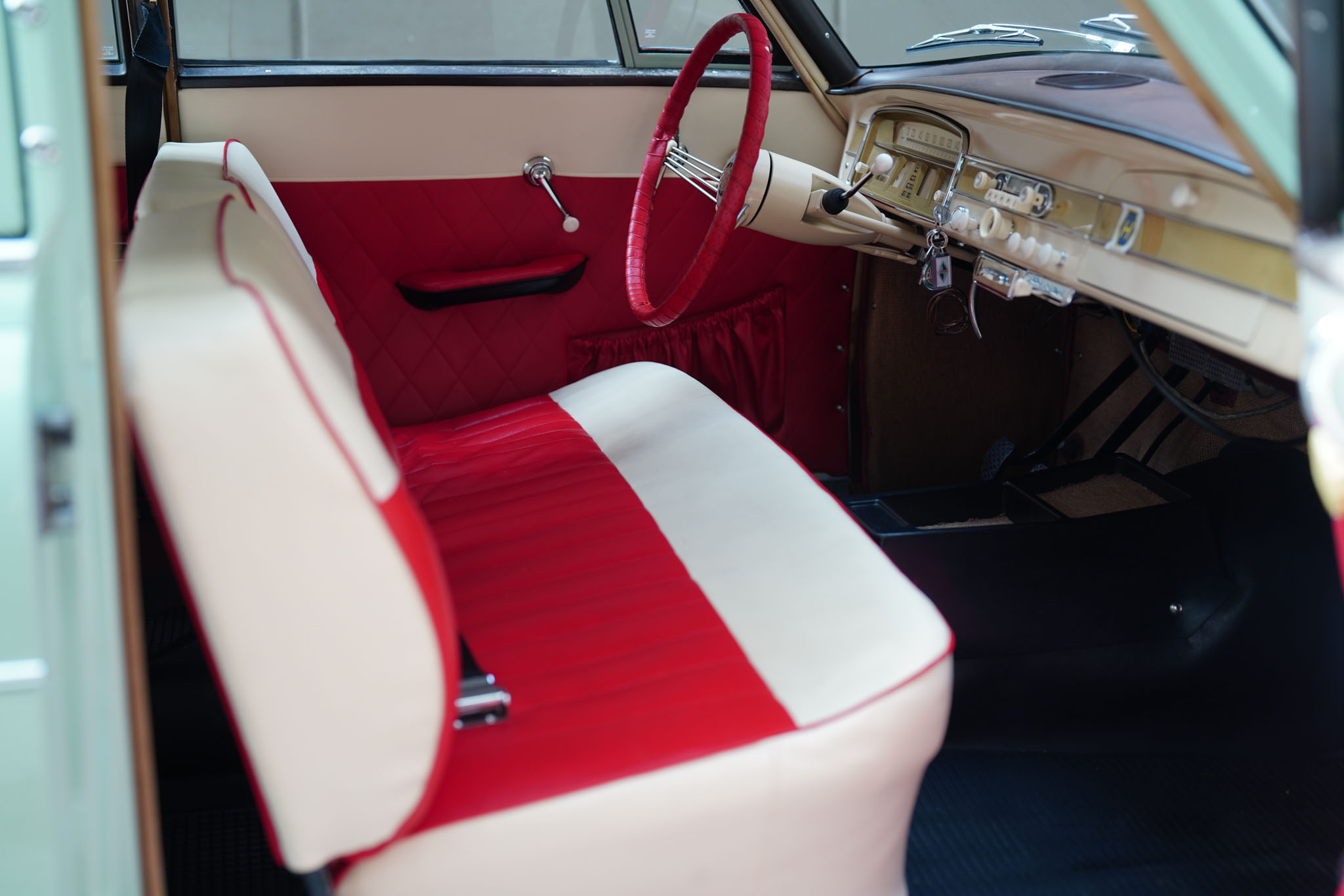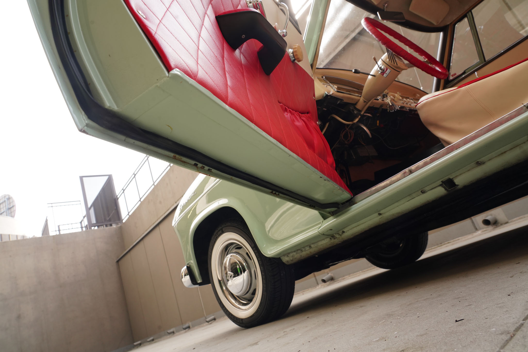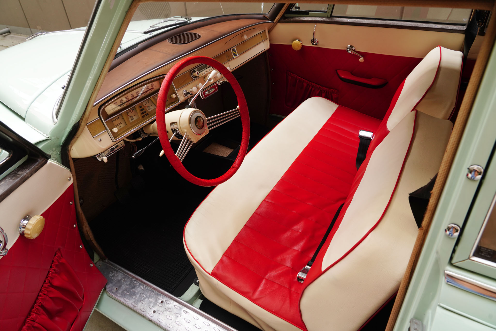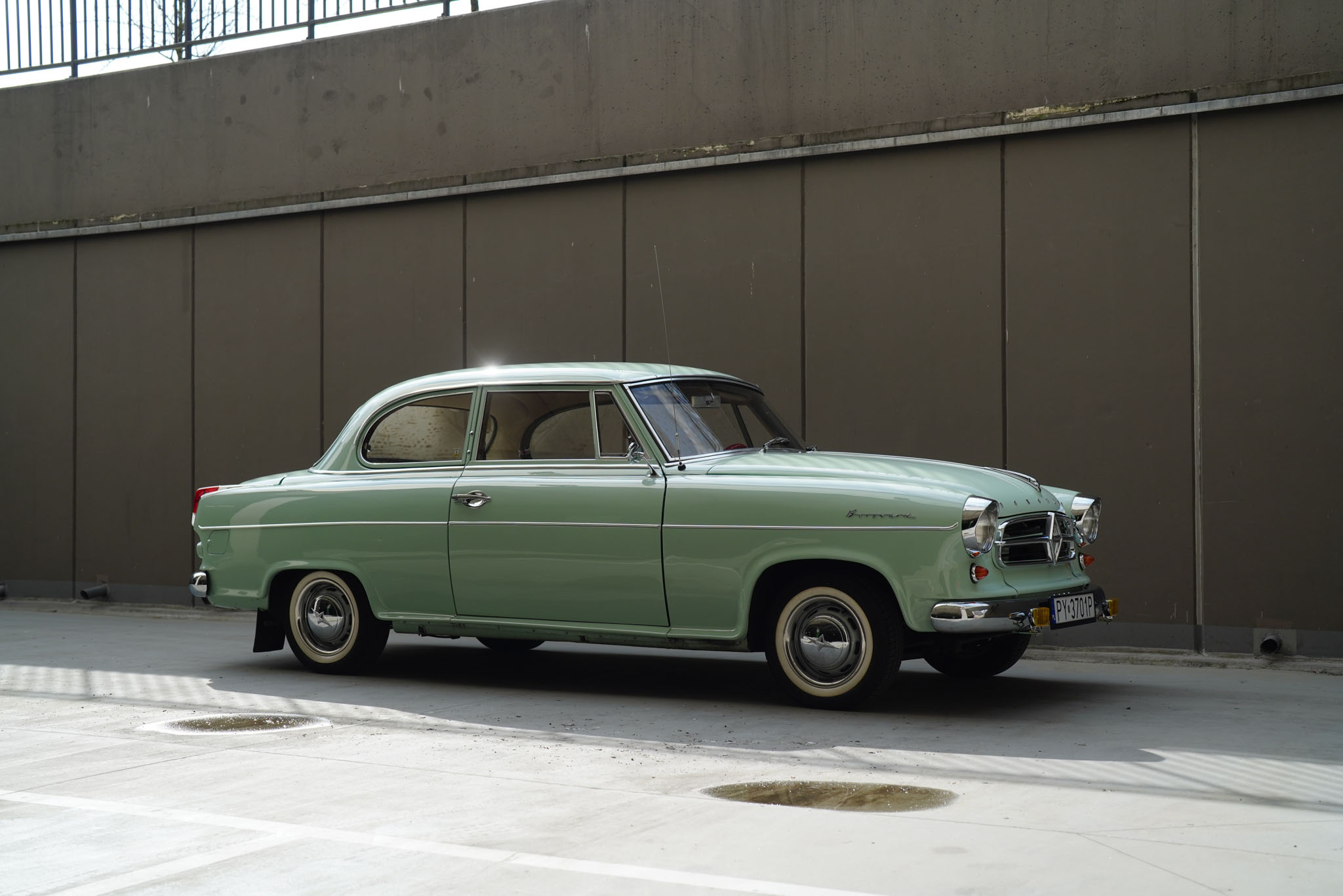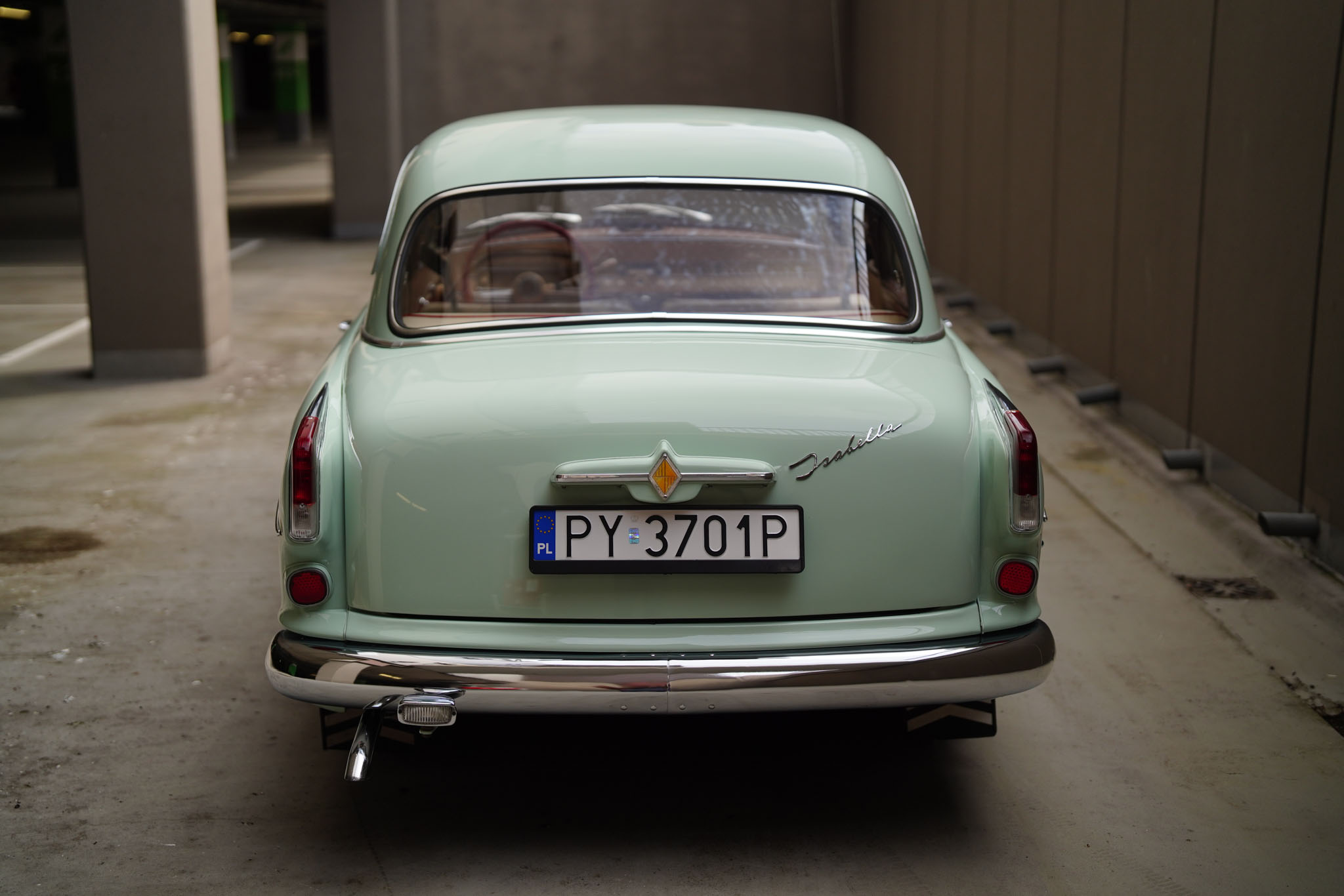 Marka Borgward owiana jest w Niemczech legendą nie mniejszą niż Tucker 48 w Stanach czy Syrena Sport w Polsce. Różnica jest taka, że w odróżnieniu od wcześniej wymienionych Borgwardy zdobyły niemałą popularność. Sztandarowy model, Isabella, został wyprodukowany w latach 1954-62 w liczbie ponad 200 tysięcy sztuk! Isabella była bardzo udanym i ciekawym wzorniczo projektem samodzielnego inżyniera, Carla Borgwarda, który rzucił tą konstrukcją wyzwanie największym motoryzacyjnym koncernom. Samochód jest sporych rozmiarów, komfortowy i napędzany mocnym, czterosuwowym, górnozaworowym silnikiem będącym własną konstrukcją marki. Ma cztery zsynchronizowane biegi, hydrauliczne sprzęgło, tylny napęd, samonośne nadwozie i niezależne zawieszenie wszystkich kół. Pomimo popularności modelu, Borgward popadł w kłopoty finansowe i ostatecznie zakończył działalność już w 1962 roku. Wokół zniknięcia marki krążyło wiele teorii spiskowych, a Niemcy za tymi samochodami wzdychają do dziś. W Polsce Borgward jest niemal kompletnie nieznany, i z tego powodu wzbudza ogromne zainteresowanie i entuzjazm wszędzie, gdzie się pojawi. A poza tym – Isabella jest piękna, po prostu, szczególnie w najrzadszym z ówczesnej palety kolorze Jade Gruen (jadeitowy zielony).