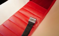 Borward Isabella w kolorze Jade Gruen z dwukolorowym, czerwono-beżowym wnętrzem.