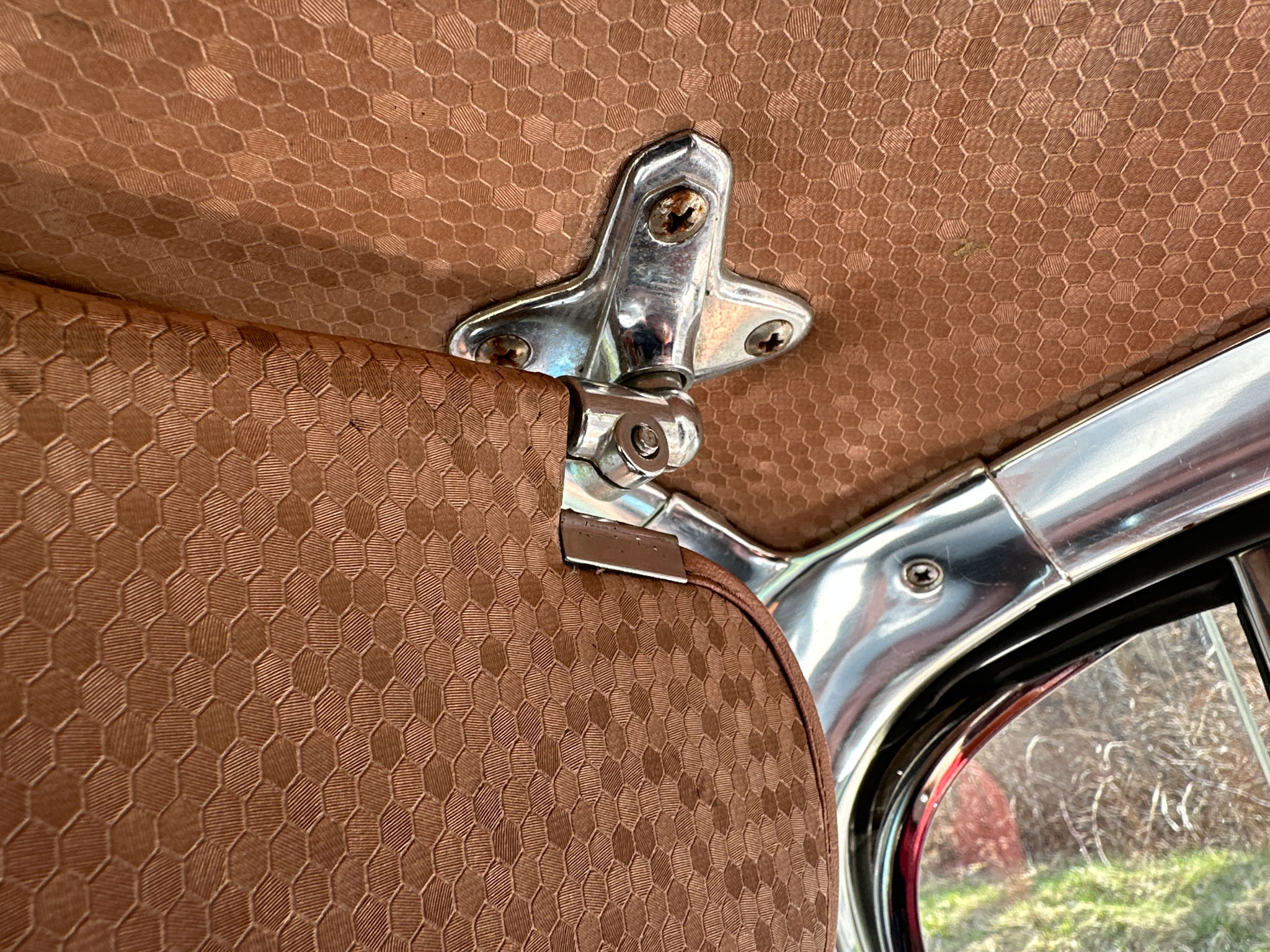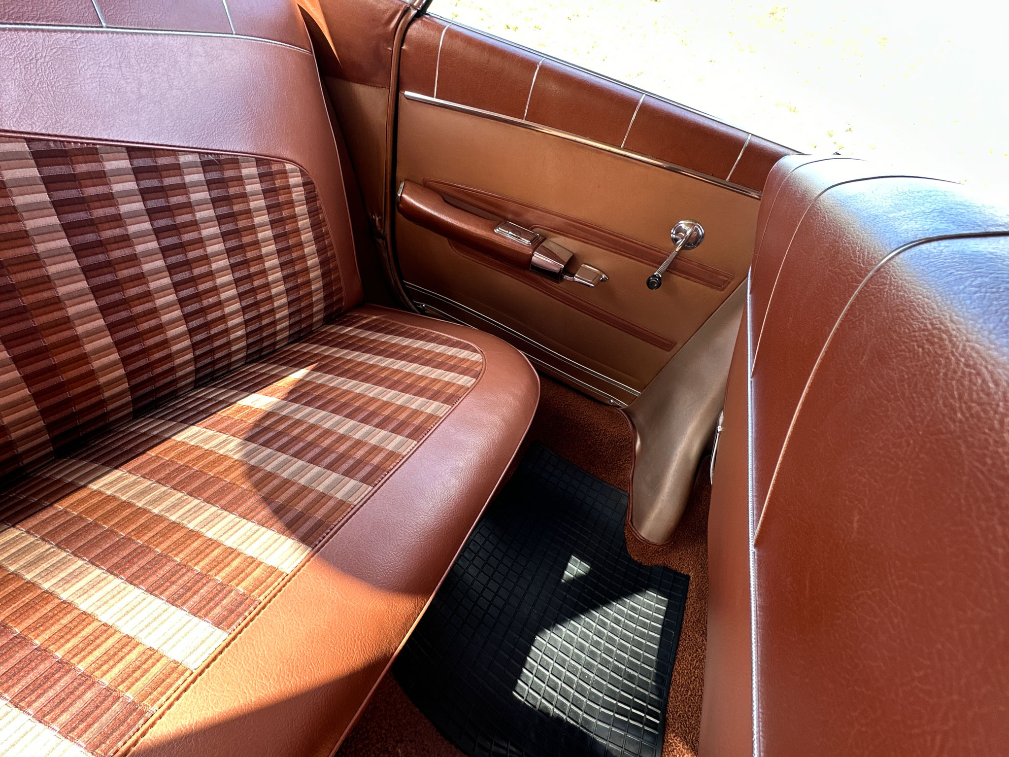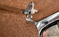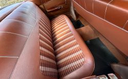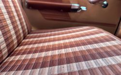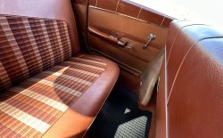 Wnętrze to już w ogóle kosmos, ilość ornamentów, wzorów i kształtów na materiałach tapicerki sprawia wrażenie, że siedzi się w dziele sztuki. Całe wnętrze utrzymane jest w absolutnym oryginale i poza drobnymi śladami użytkowania jest kompletne i sprawne. Niczego nie brakuje i wszystko jest na swoim miejscu. Podobnie sprawa ma się z chromami – wszystkie są w bardzo dobrym stanie i przepięknie się błyszczą. Szyby w stanie bardzo dobrym, co bardzo ważne w przypadku przedniej i tylnej, są ogromne, rzadkie i trudno dostępne w Polsce.