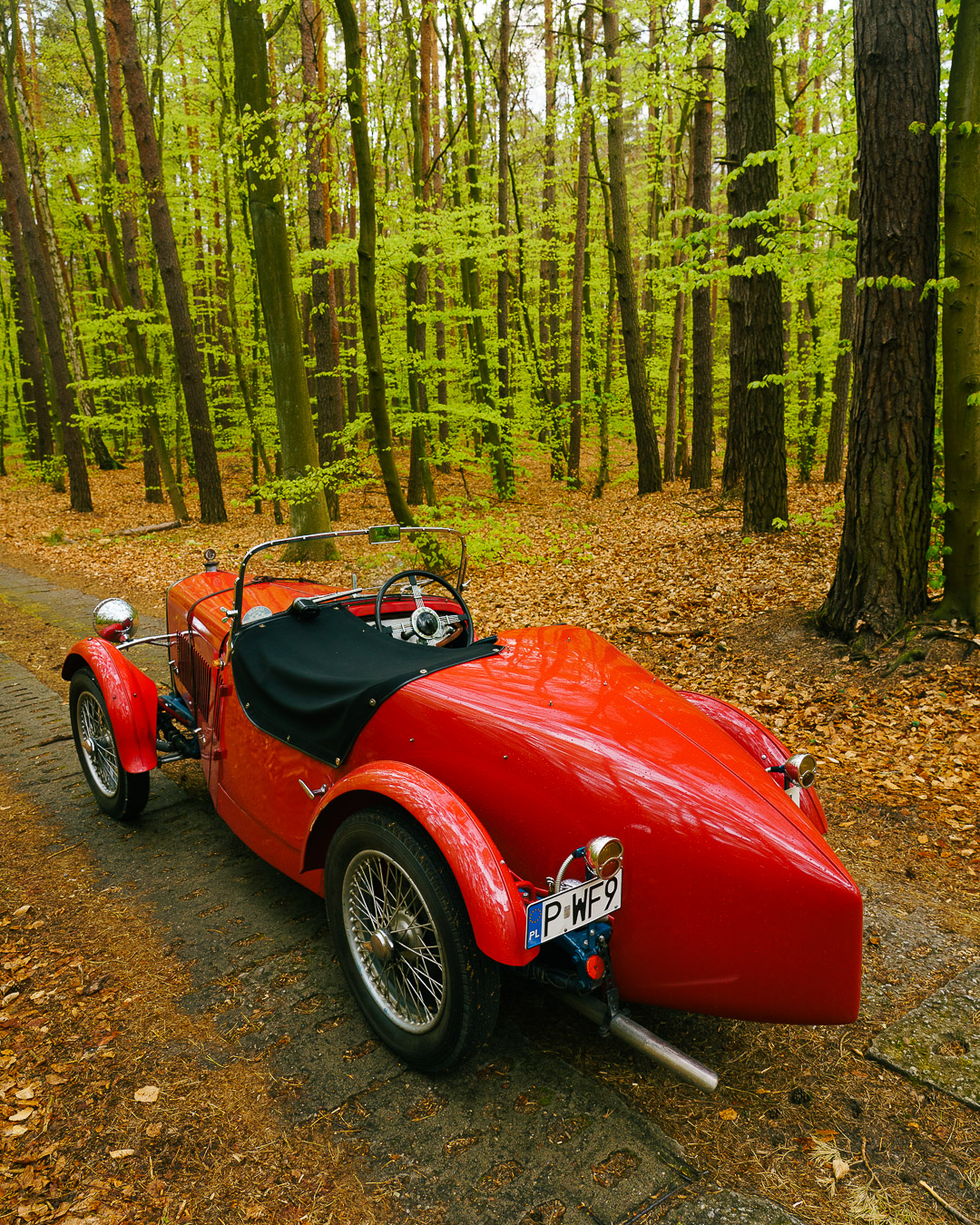 Drugi samochód okazał się być jeszcze wspanialszy, niż na zdjęciach. Singer Nine Sports Special, czyli niewielkie auto z wyścigowym nadwoziem wykonanym na zamówienie. Jego historia była fascynująca. Pierwszy właściciel kupił Singera jako jeżdżące podwozie i od razu zabrał je do Francji. Tam powierzył firmie Lemaitre budowę aerodynamicznej karoserii. Silnik był wykonany według wariantu wyścigowego, miał zgodnie z regulaminem samochodów małolitrażowych pojemność mieszczącą się w 1000 cm³, ale jego wał podparty był na trzech, a nie dwóch łożyskach, co pozwalało uzyskać wyższe prędkości obrotowe. Planem był start w wyścigu 24h Le Mans. Planem jak się okazało nigdy nie zrealizowanym, bo o wszystkim dowiedziała się małżonka i zbombardowała plany. Później przyszła też wojna i mamy absolutnie czarną plamę w historii samochodu.