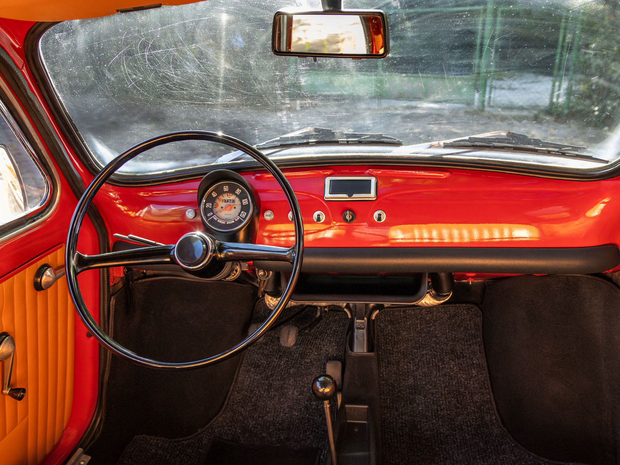 Na sprzedaż oferuję Fiata 500 z 1969 roku, egzemplarz zabytkowy w stanie kolekcjonerskim, po kompleksowej renowacji, wykonanej z dbałością o detale i zgodność z oryginałem.