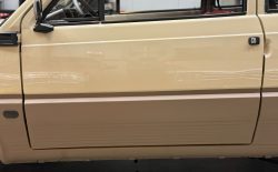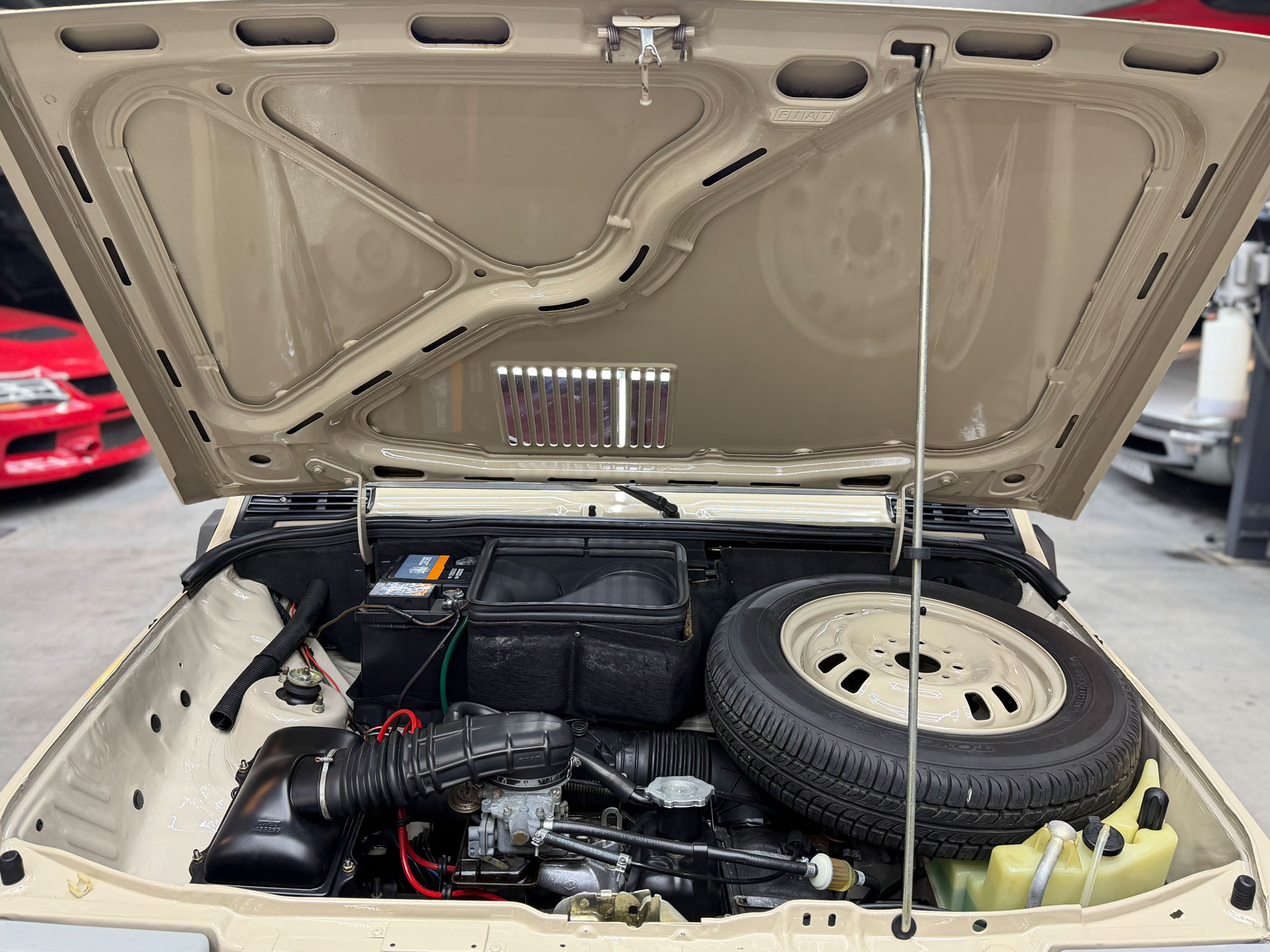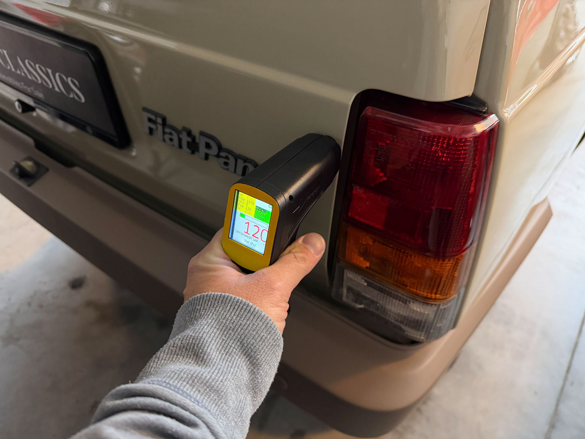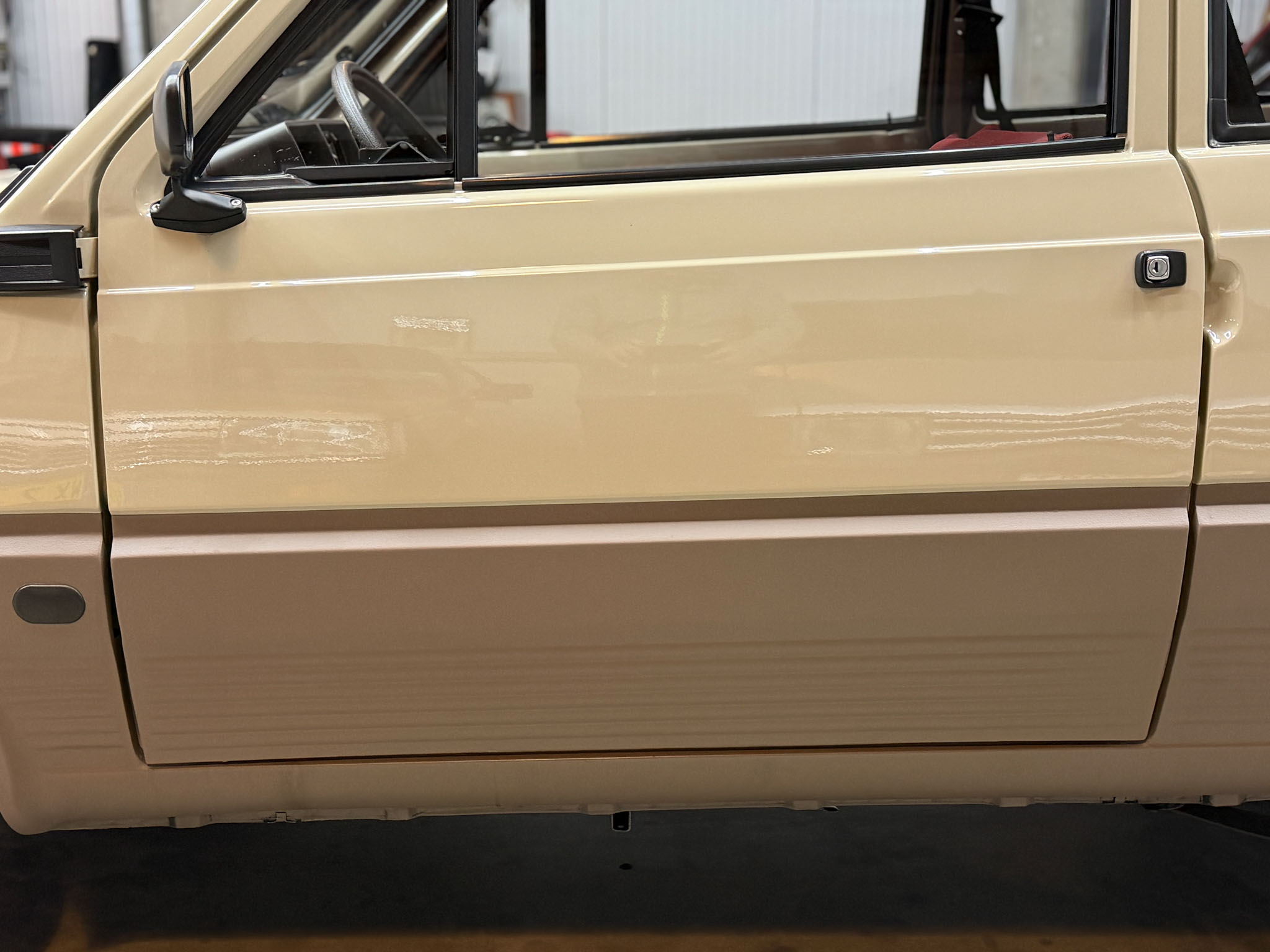 Wszystko zostało zrobione tak jak powinno być. Lakier ma odpowiednią morkę, grubość, wszędzie są właściwe naklejki, maty, gumy, uszczelki i znaczki. Wszystkie te extrasy są po prostu nowe. Koszt renowacji Pandy w takim standardzie to minimum 30.000€.