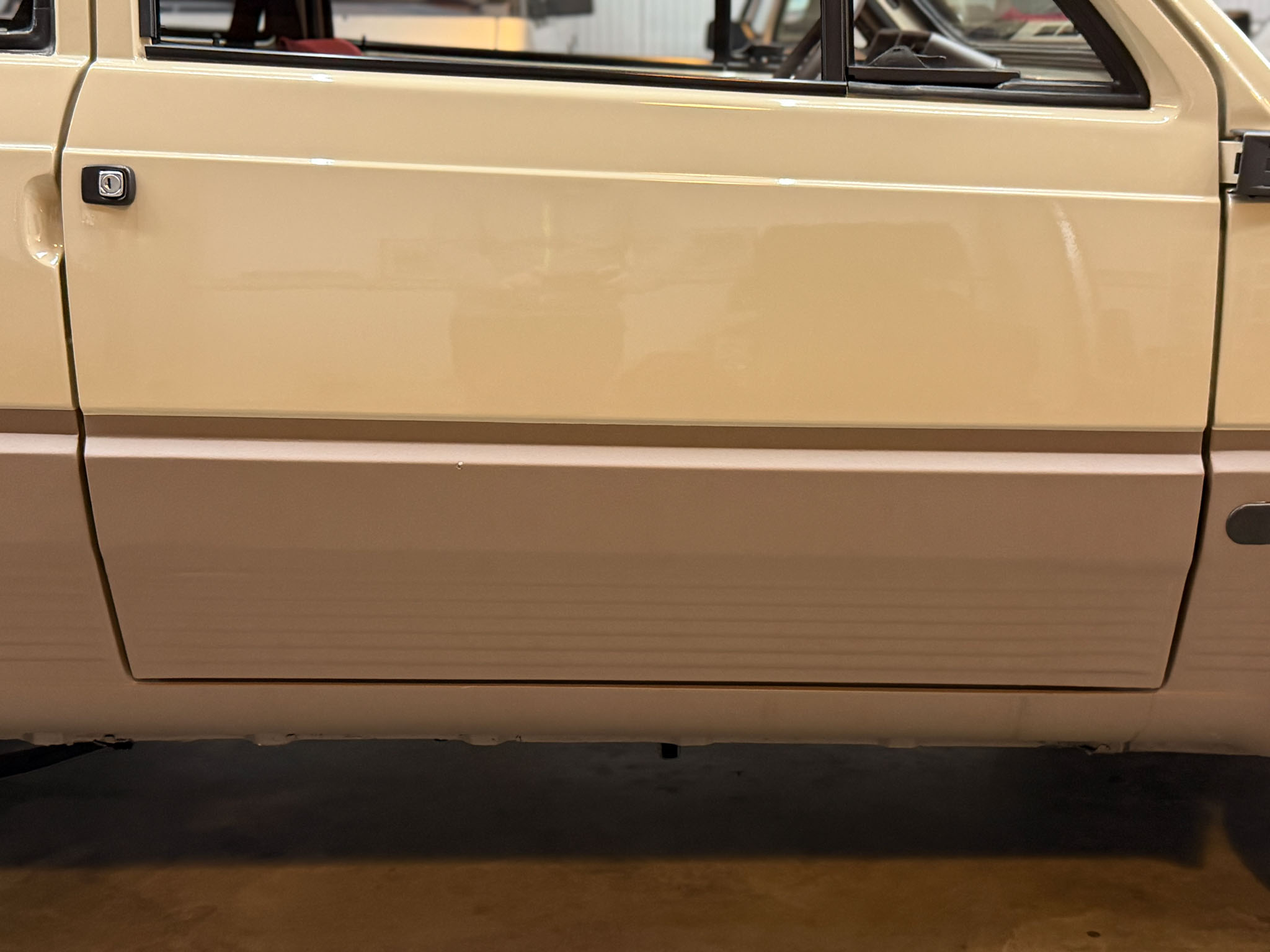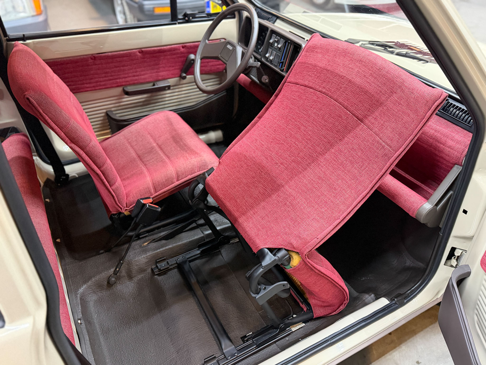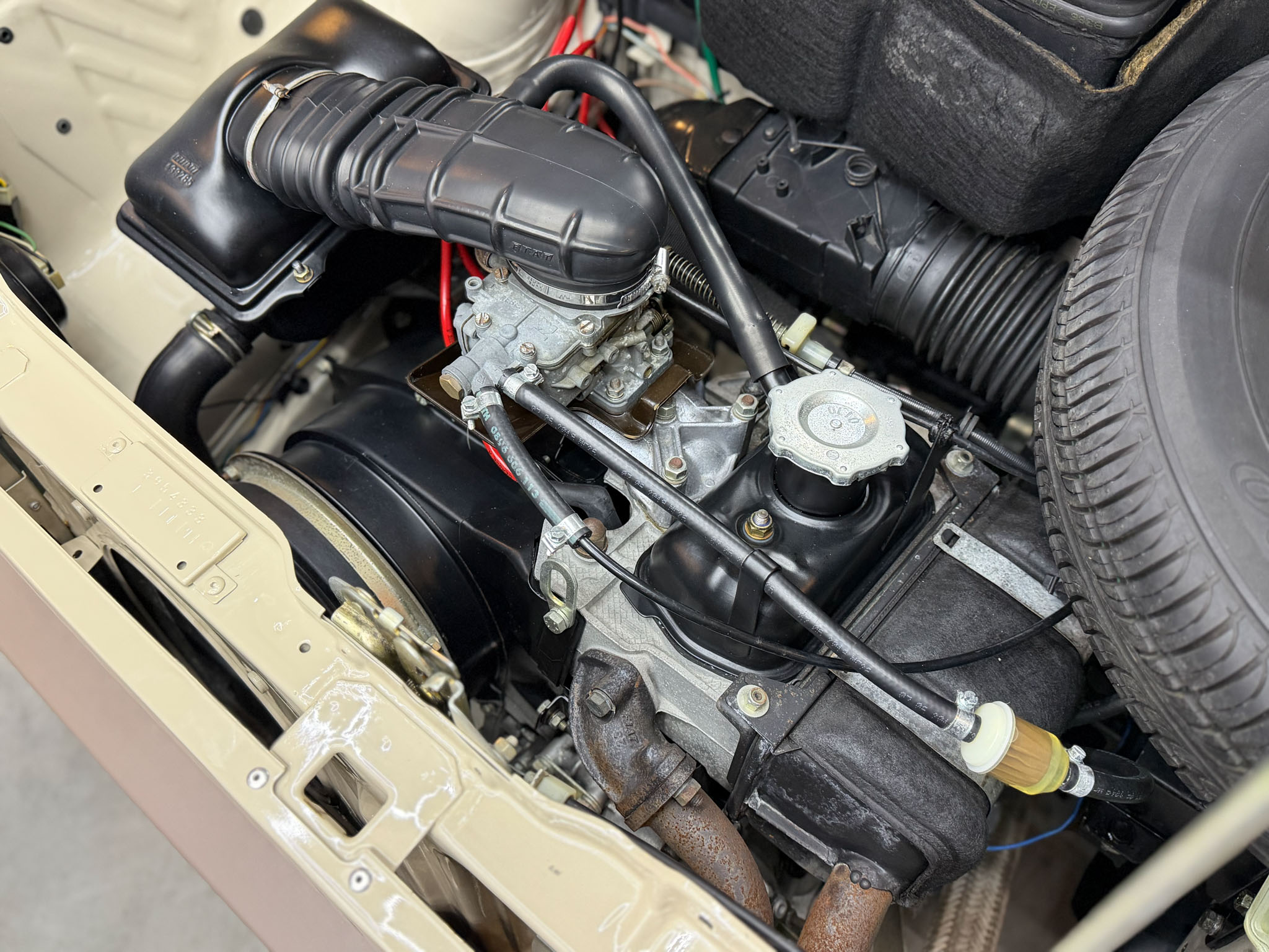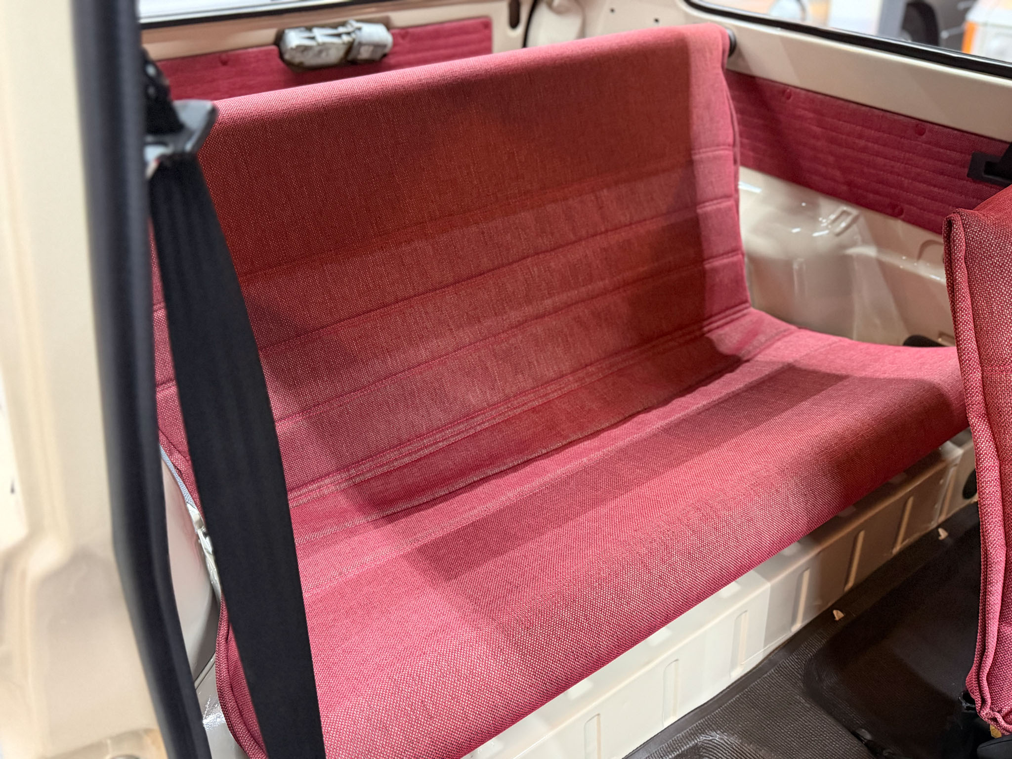Wszystko zostało zrobione tak jak powinno być. Lakier ma odpowiednią morkę, grubość, wszędzie są właściwe naklejki, maty, gumy, uszczelki i znaczki. Wszystkie te extrasy są po prostu nowe. Koszt renowacji Pandy w takim standardzie to minimum 30.000€.