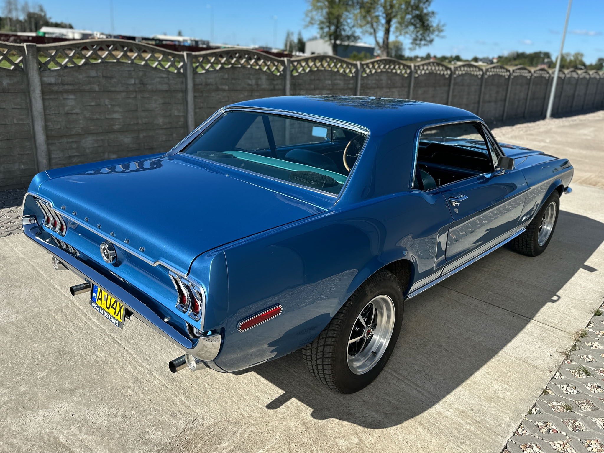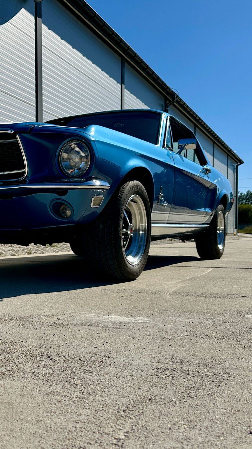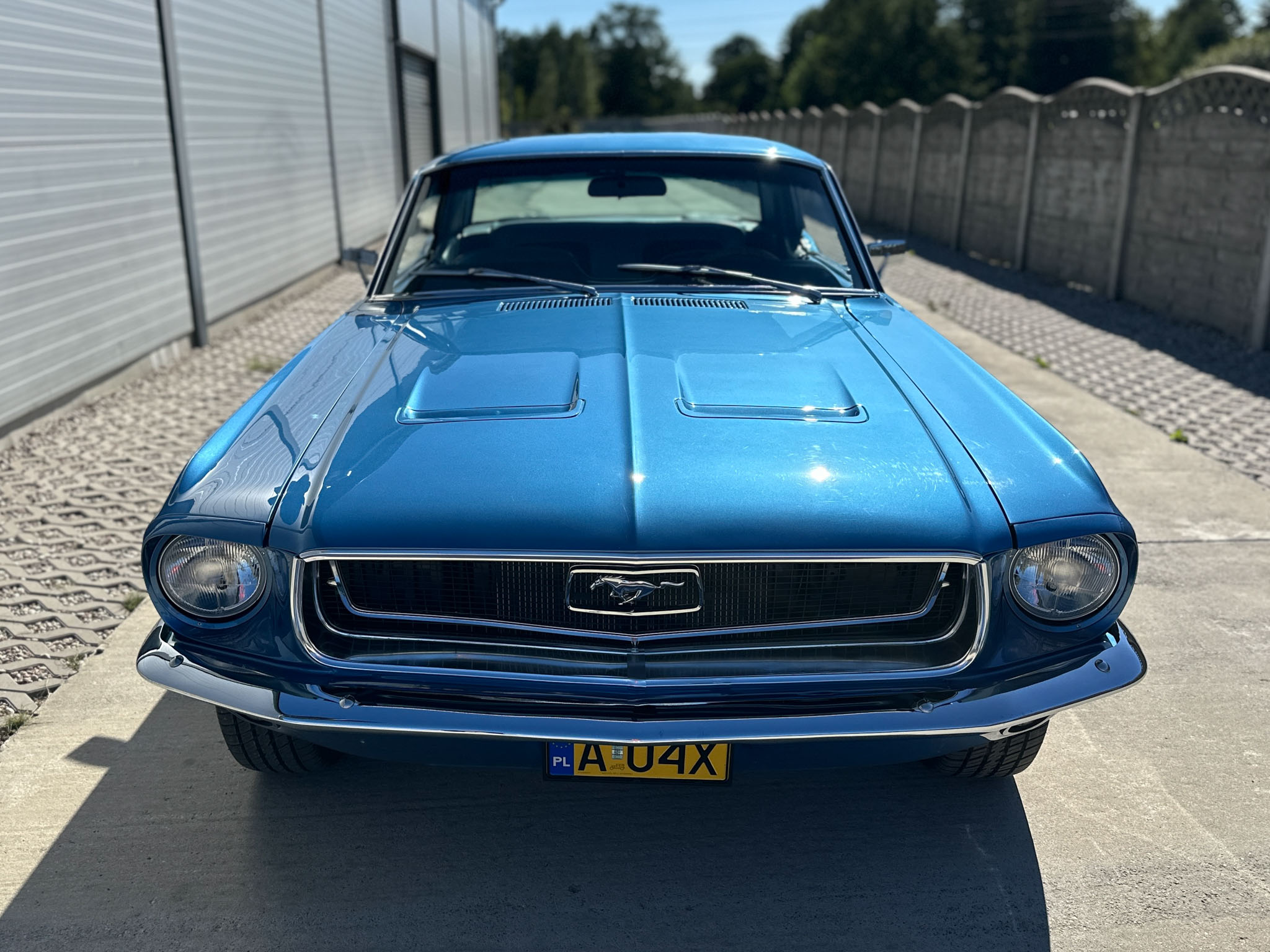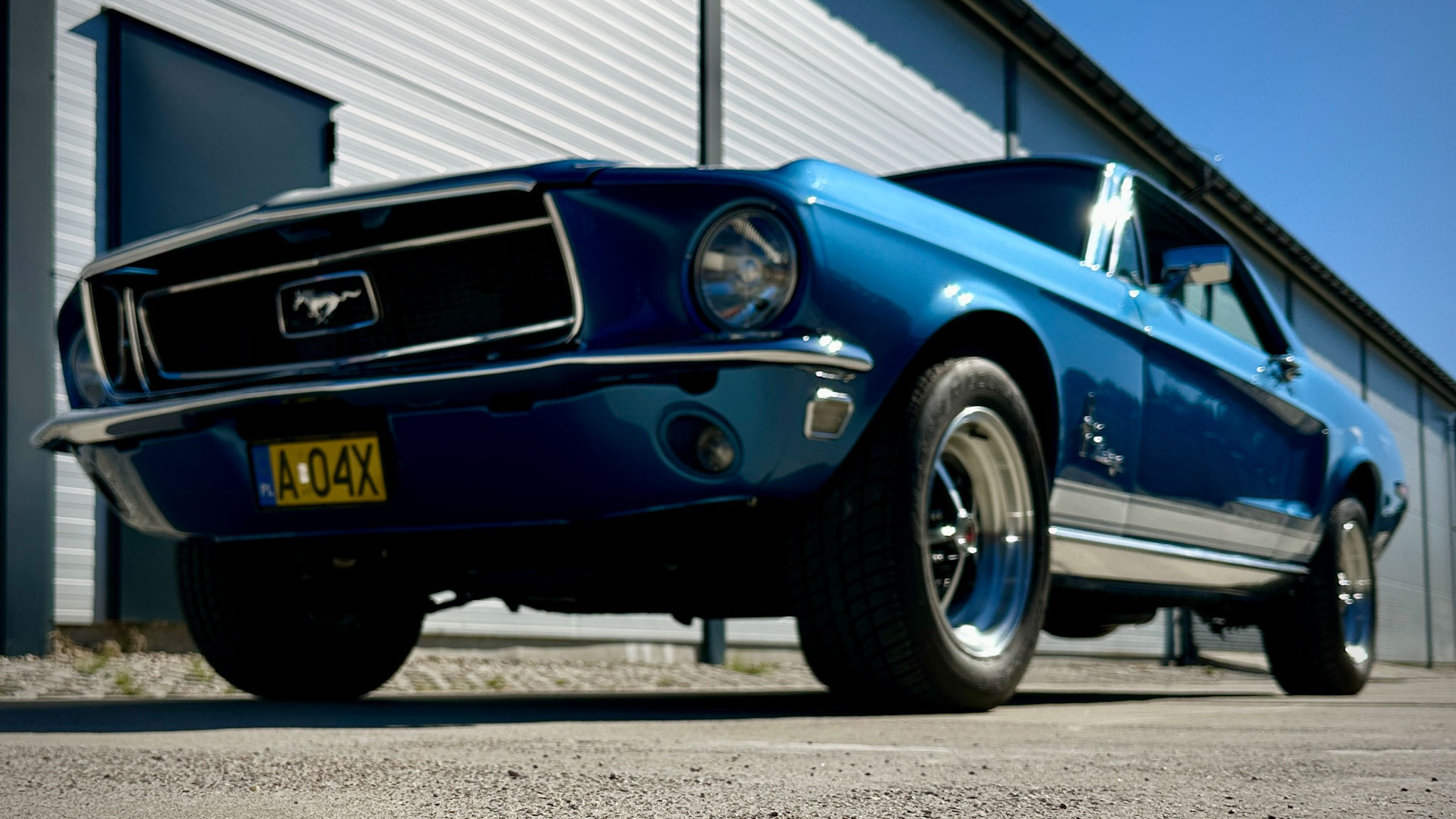 Ford Mustang z 1968 roku to najprawdopodobniej najbardziej legendarny rocznik tego modelu. Wszystkiemu oczywiście winien film „Bullitt”, choć szczęśliwie nie każdy Mustang z tego toku ma ten kolor highland green i nadwozie fastback. Ten to bardziej dyskretne coupe ze skromniejszym, 289 calowym silnikiem C-code pod maską i manualną, 3-stopniową skrzynią biegów. To, co w nim zwraca uwagę najbardziej, to fantastyczny stan będący konsekwencją skrupulatnie przeprowadzonej renowacji.