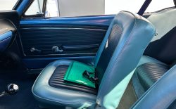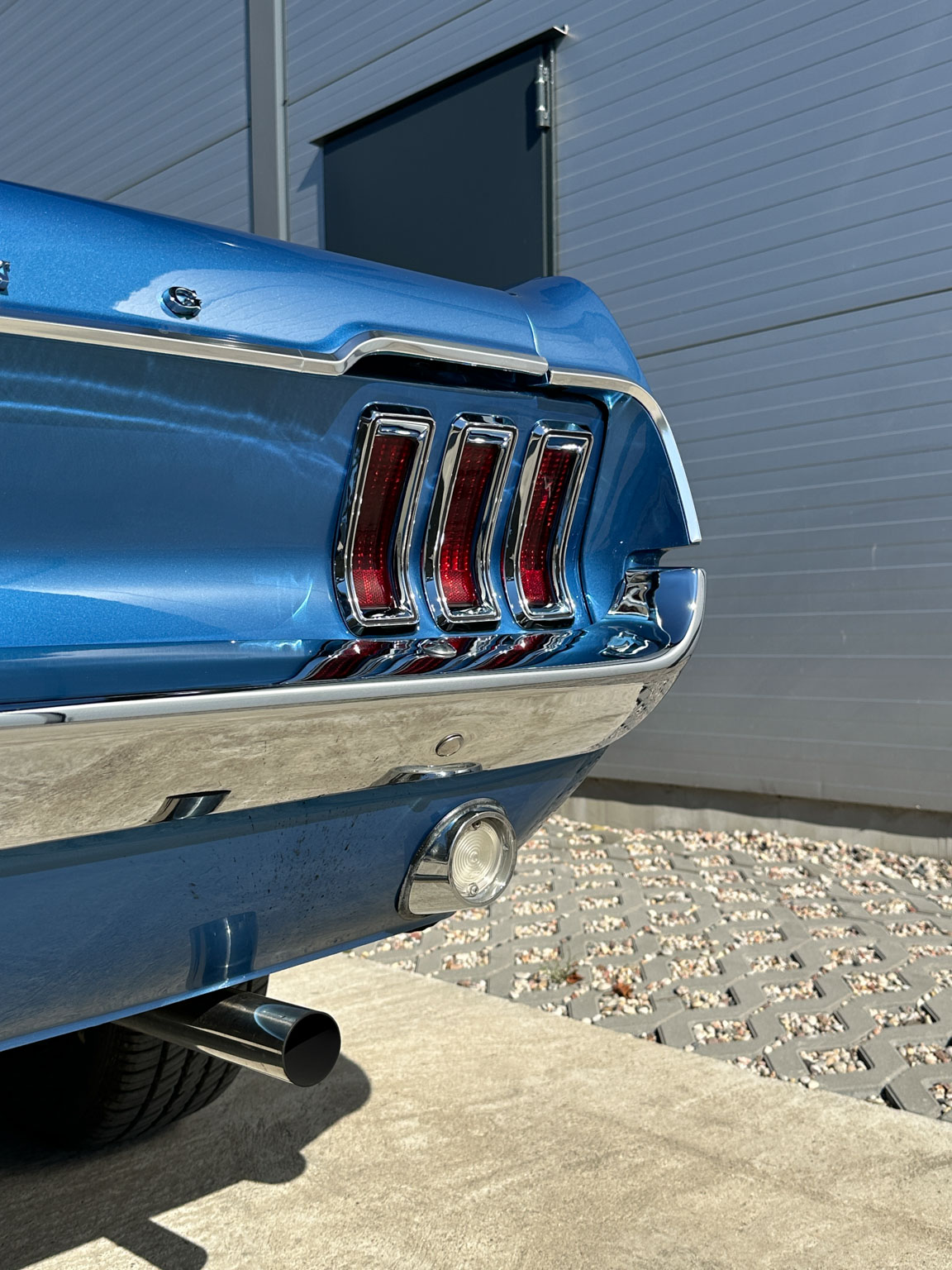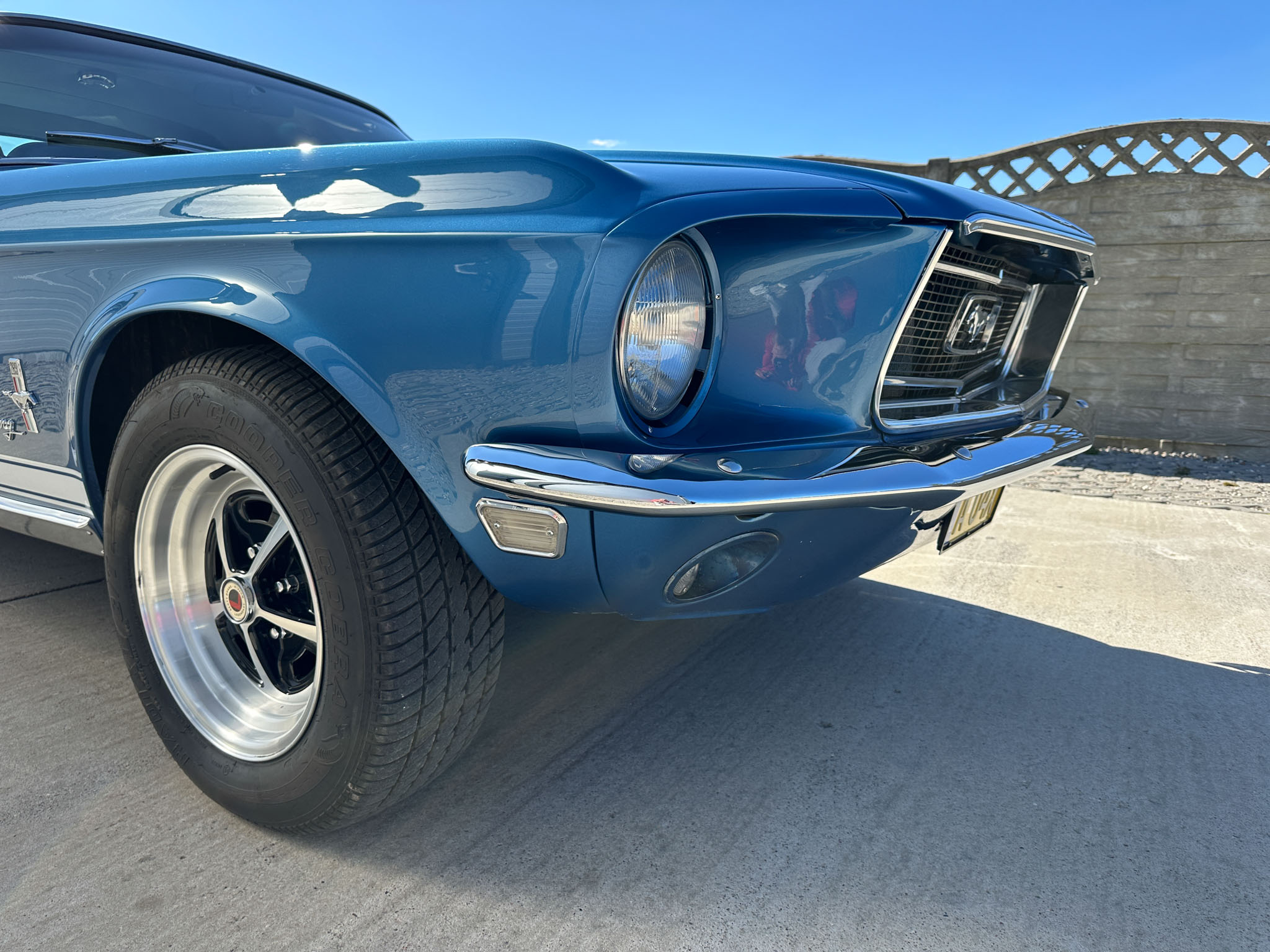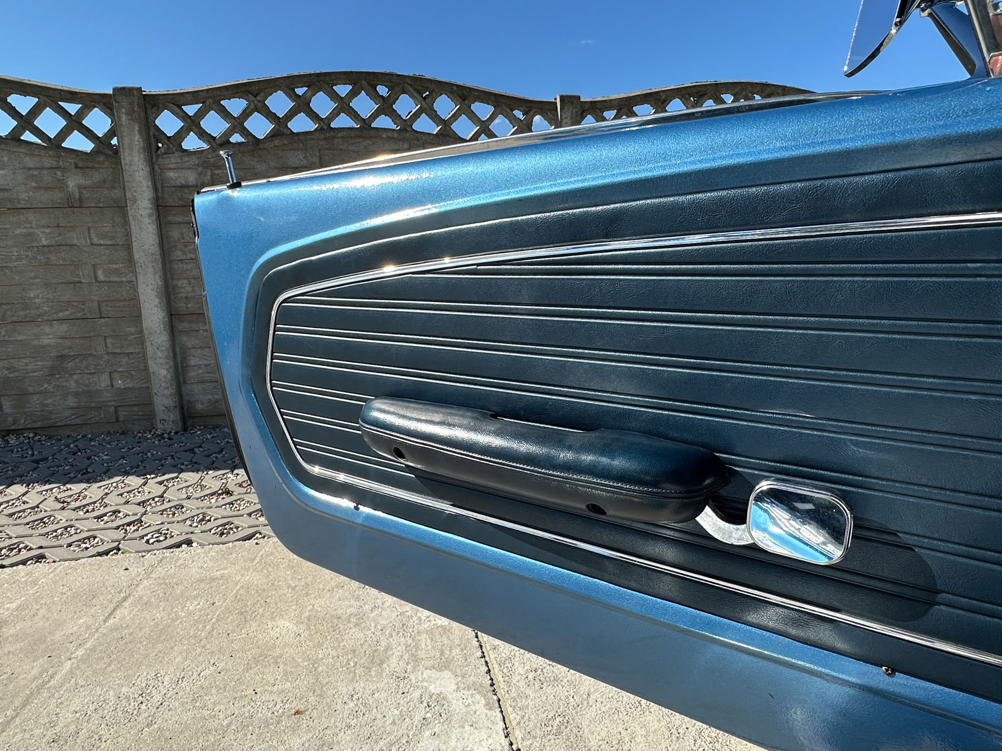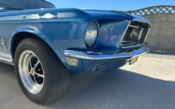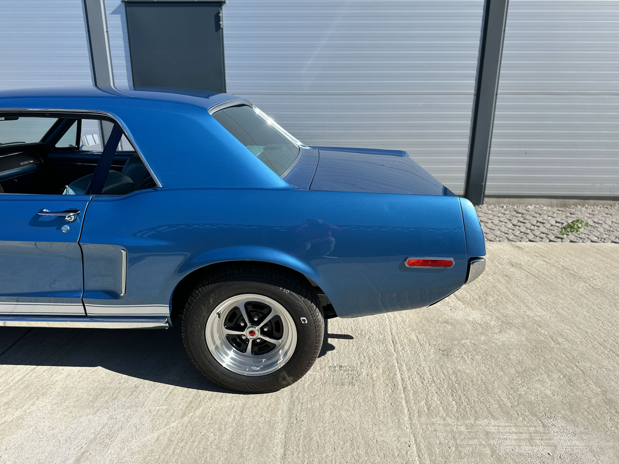 Ford Mustang z 1968 roku to najprawdopodobniej najbardziej legendarny rocznik tego modelu. Wszystkiemu oczywiście winien film „Bullitt”, choć szczęśliwie nie każdy Mustang z tego toku ma ten kolor highland green i nadwozie fastback. Ten to bardziej dyskretne coupe ze skromniejszym, 289 calowym silnikiem C-code pod maską i manualną, 3-stopniową skrzynią biegów. To, co w nim zwraca uwagę najbardziej, to fantastyczny stan będący konsekwencją skrupulatnie przeprowadzonej renowacji.