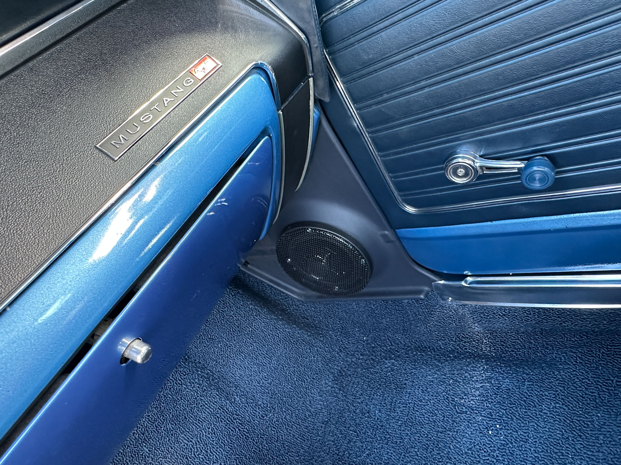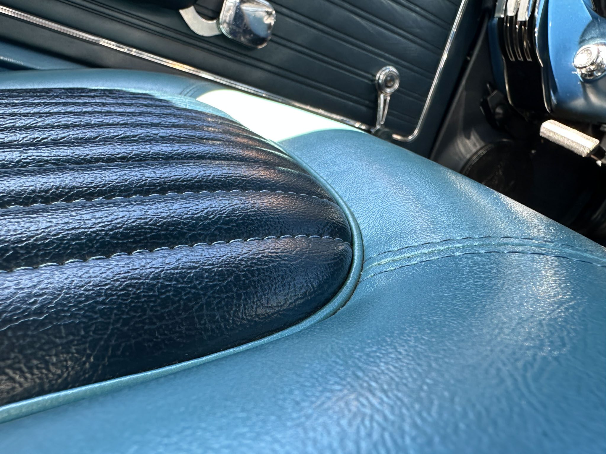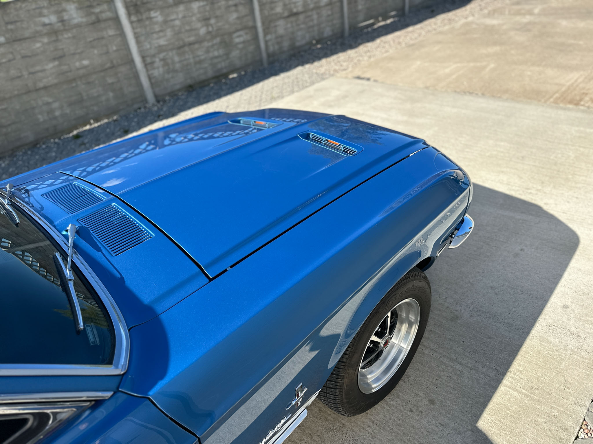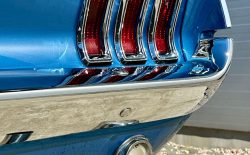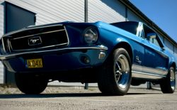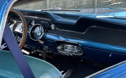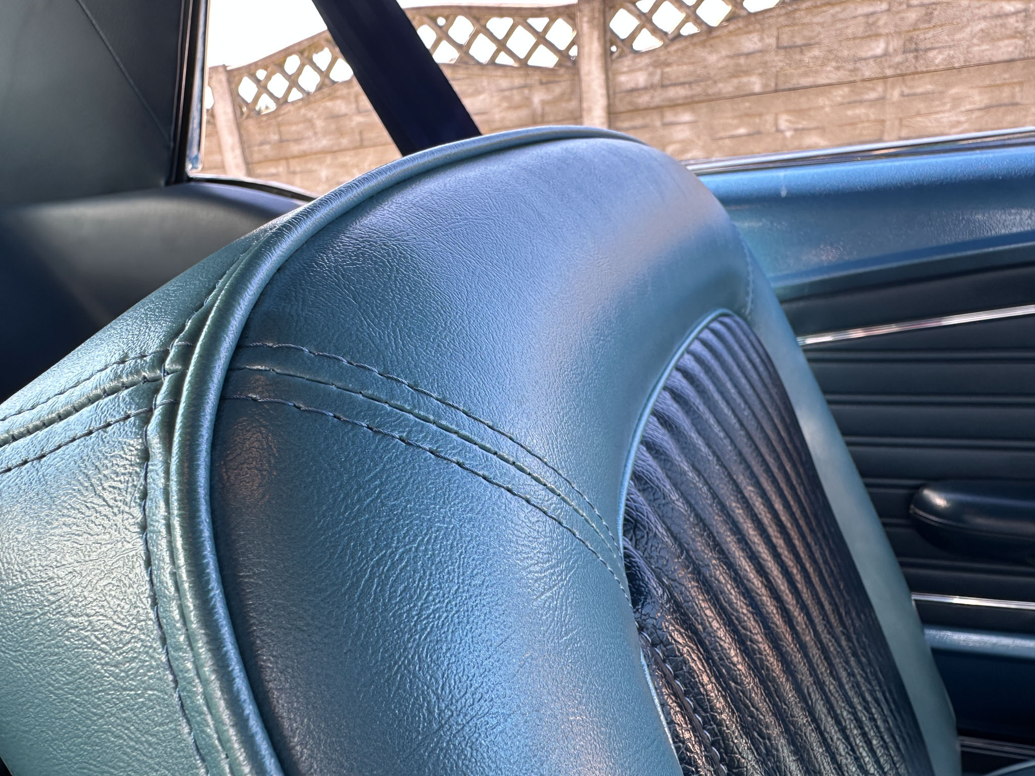 Ford Mustang z 1968 roku to najprawdopodobniej najbardziej legendarny rocznik tego modelu. Wszystkiemu oczywiście winien film „Bullitt”, choć szczęśliwie nie każdy Mustang z tego toku ma ten kolor highland green i nadwozie fastback. Ten to bardziej dyskretne coupe ze skromniejszym, 289 calowym silnikiem C-code pod maską i manualną, 3-stopniową skrzynią biegów. To, co w nim zwraca uwagę najbardziej, to fantastyczny stan będący konsekwencją skrupulatnie przeprowadzonej renowacji.