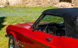 Pierwsza generacja Forda Mustanga była produkowana przez od 1964 do 1973 roku. Debiutował jako hardtop i kabriolet. Rocznik ’67 przeszedł już parę aktualizacji, ale to wciąż klasyczny Mustang, rozpoznawalny natychmiastowo na ulicy. Prezentowane czerwone cabrio z czarnym wnętrzem, wyposażone w silnik o pojemności 4,7 litra generujący 200 KM i zestawiony ze skrzynią automatyczną. Mimo upływu lat, jest to wciąż niezmiennie przyjemny cruiser, dostarczający wspaniałych wrażeń podczas niespiesznych przejażdżek.