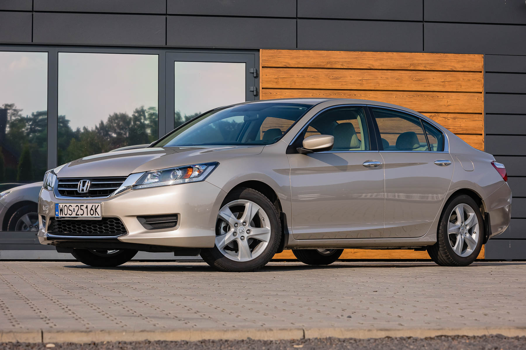 Honda Accord to jeden z tych Japończyków, który wypracował świetną pozycję marki na całym świecie. IX generacja modelu debiutowała z początkiem roku 2012 na targach w Detroit i była pierwszą, która nigdy oficjalnie nie była sprzedawana w Europie. W stosunku do poprzedniej generacji, poprawiono aerodynamikę, ale design był stosunkowo kanciasty i konserwatywny. Ten egzemplarz ma tylko 45 tys. mil przebiegu. Napędza go 2,4-litrowy silnik i-VTEC (188 KM), połączony z 5-stopniową, automatyczną skrzynią biegów.