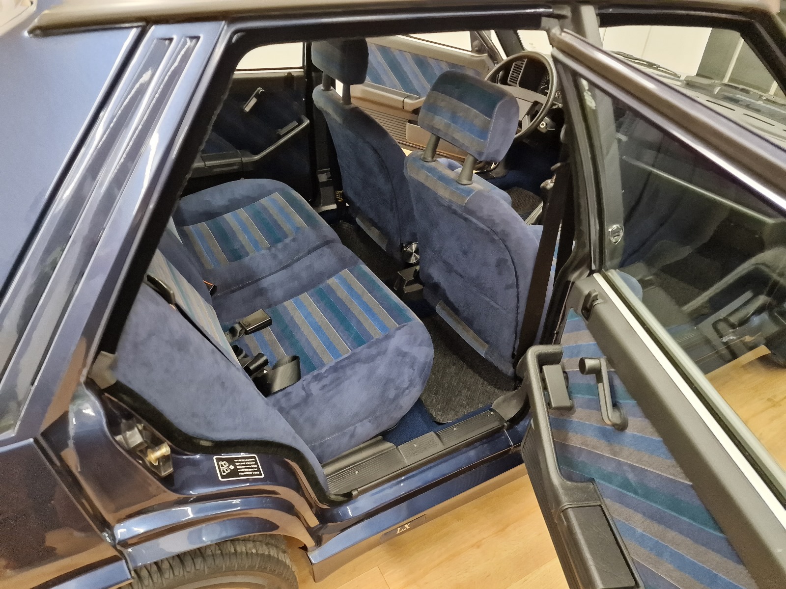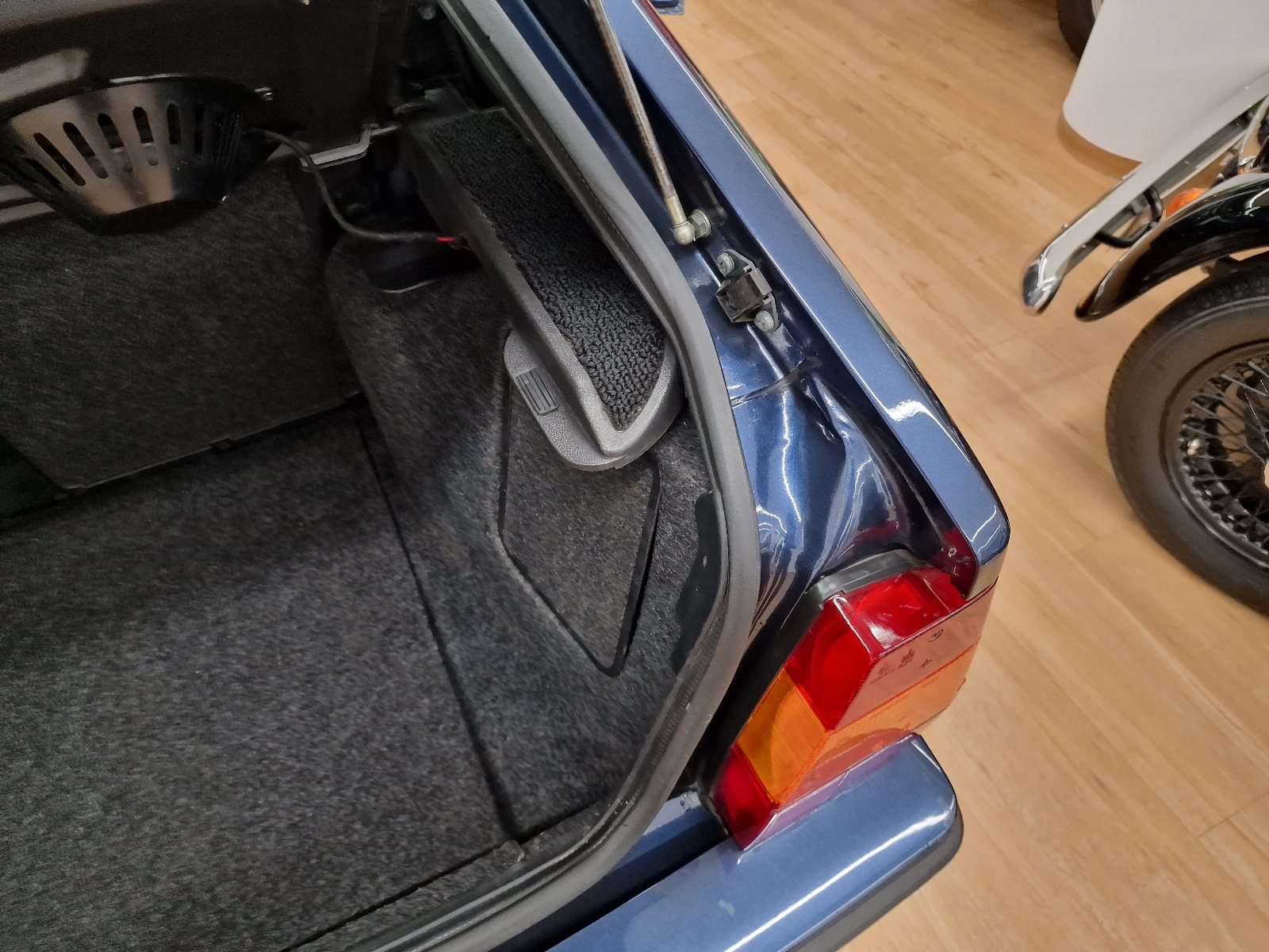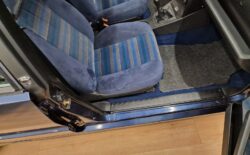 Nasz egzemplarz ma przejechane 22 tysiące kilometrów i jest w perfekcyjnym stanie blacharsko-lakierniczym, jak i technicznym. Wnętrze jest również zachowane w oryginalnej kondycji – brak uszkodzeń. Warto zwrócić uwagę na piękny design welurowej tapicerki. Samochód pochodzi z rynku hiszpańskiego i posiada komplet dokumentów, w tym pierwszy dowód hiszpański. Auto posiada w większości oryginalny lakier. Proszę zwrócić uwagę na zdjęcia, gdzie jest pokazany spód tego samochodu. Niektóre części wyglądają tak, jakby niedawno były założone i mają oryginalne plomby na śrubach. W tym stanie praktycznie już nie ma samochodów na rynku, ze względu na to, że kiedyś to był tzw. zwykły samochód i właściciele nie dbali o nie tak dobrze, jak o typowe auta kolekcjonerskie. Ten egzemplarz miał jednak to szczęście.