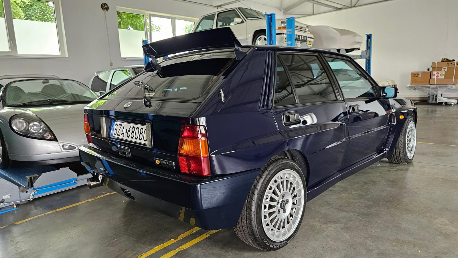 Lancia Delta Integrale, we wszystkich swoich wariantach, zdobyła sześć kolejnych tytułów Rajdowych Mistrzostw Świata w latach 1987-1992, stając się jednym z najbardziej utytułowanych samochodów rajdowych w historii. W swojej ostatecznej formie przez wielu uważana jest za ideał piękna. Bo owszem – z jednej strony silnik turbo, napęd na 4 koła i możliwość szybkiej jazdy, ale z drugiej – kultowe kształty, potężne nadkola, regulowane spojlery. Debiutująca w 1993 roku Delta Integrale Evoluzione II była najdoskonalszą wersją ze wszystkich, tak mechanicznie, jak i wizualnie. W przeciwieństwie do niezliczonych modeli Integrale w kolorze czerwonym i żółtym, ta Evoluzione II otrzymała rzadki i wyjątkowo elegancki odcień koloru niebieskiego, zwany „Blu Lord”, zestawiony gustownie z beżowym, zamszowym wnętrzem.