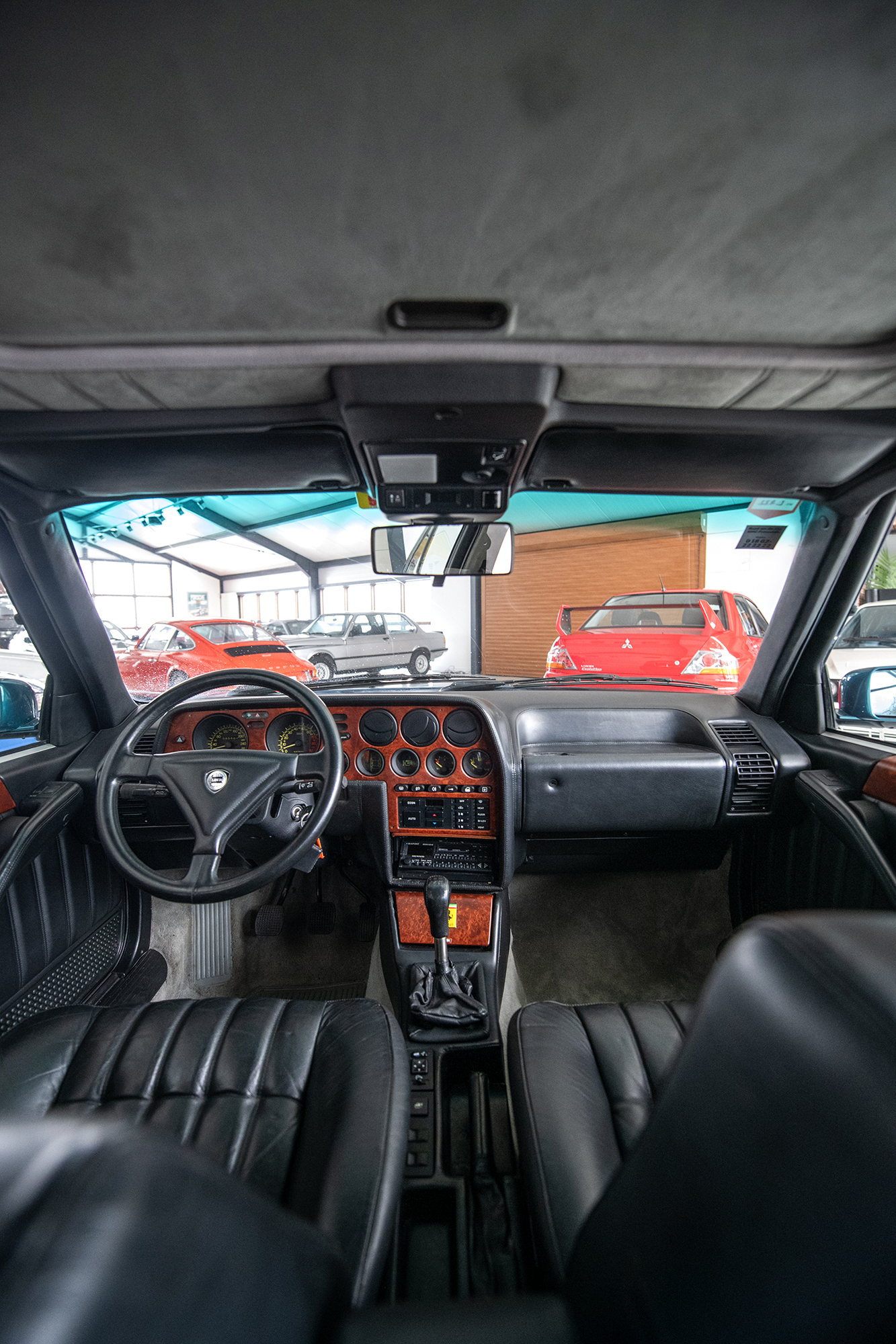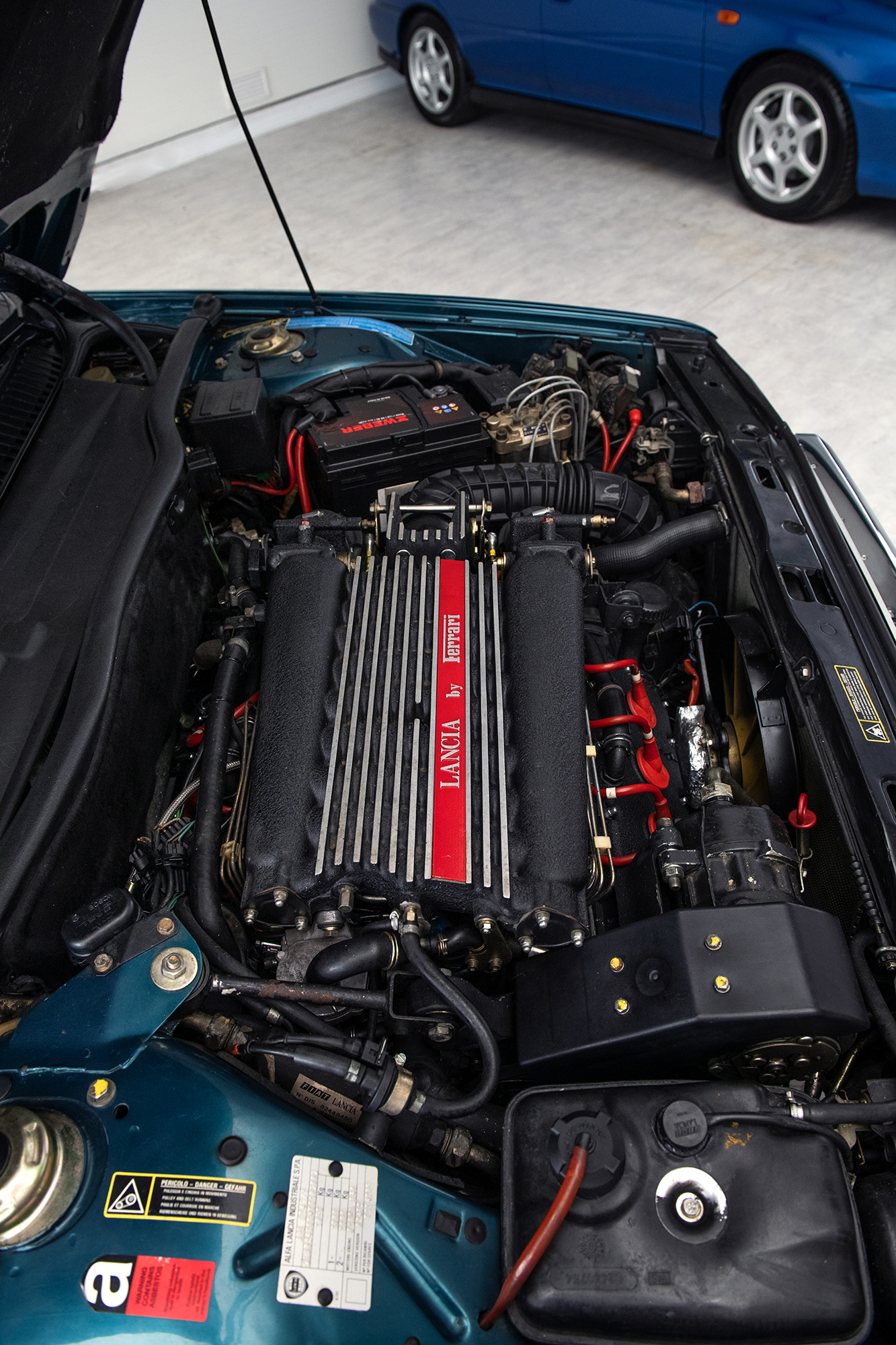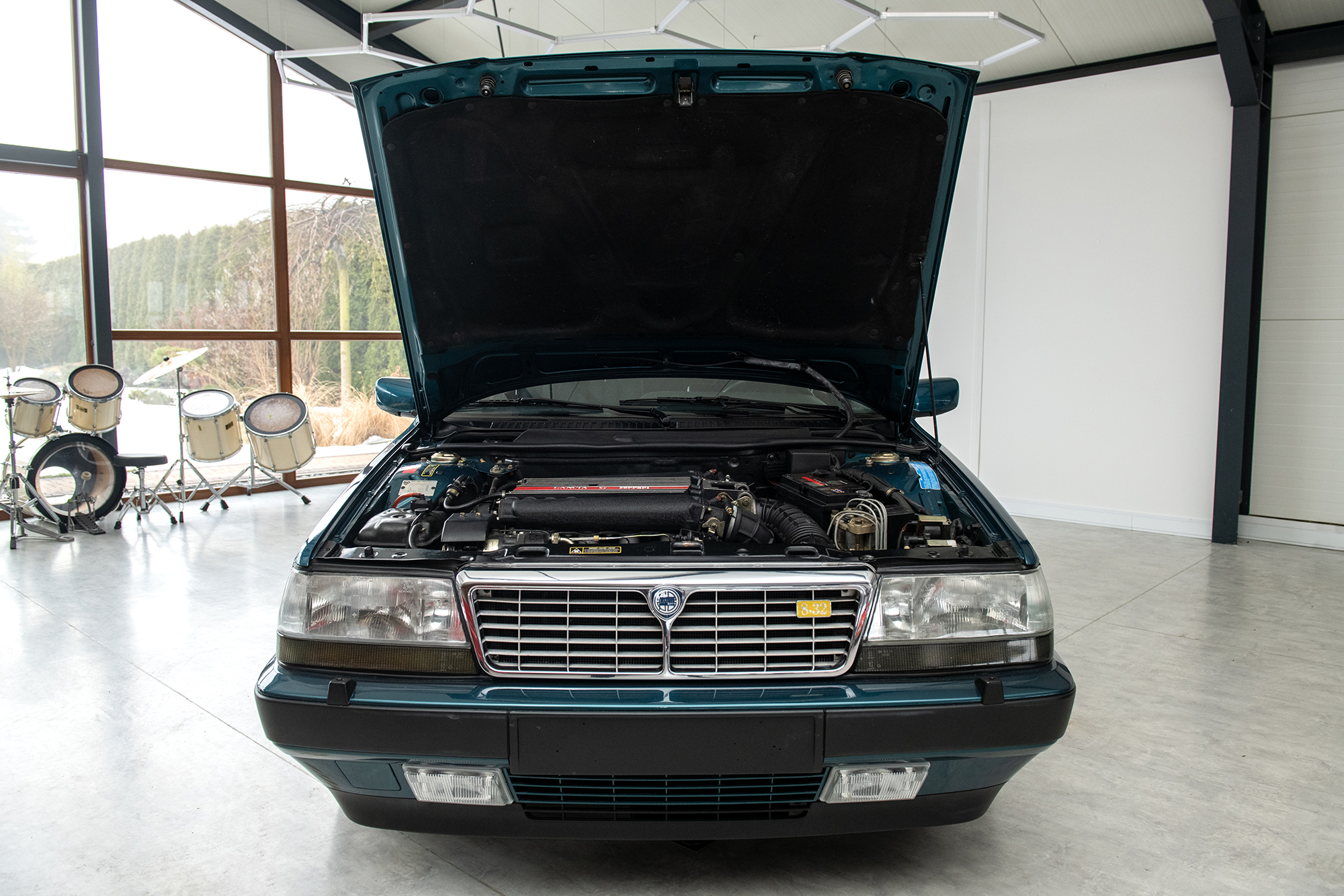 Zaprezentowana została po raz pierwszy na salonie samochodowym w Turynie w 1986 roku. Lancia Thema 8.32, gdzie „8” oznacza liczbę cylindrów, natomiast „32” liczbę zaworów, była montowana w fabryce Lancii S. Paolo w Turynie. Wszystkie wersje 8.32 zasilane były wtryskiem paliwa Bosch KE3 Jetronic. Zupełnie nowy, elektronicznie sterowany układ kierowniczy Servotronic dostarczany był przez firmę ZF i zmieniał siłę wspomagania w zależności od prędkości jazdy. Bodaj największą ciekawostką był automatycznie wysuwający się przy wyższych prędkościach tylny spojler. Tym samym Thema 8.32 została pierwszym seryjnie produkowanym autem drogowym, które oferowało elementy aktywnej aerodynamiki, wyprzedzając o kilka miesięcy Porsche 959. Samochód oferował ręcznie wykonane wnętrze z drewna i Alcantary albo skóry Poltrona Frau, którą odnajdziecie w prezentowanym egzemplarzu. Skóra pokrywa tu całą deskę rozdzielczą, kierownicę, dźwignię zmiany biegów oraz hamulca ręcznego, schowki, konsolę środkową, panele drzwi i osłony przeciwsłoneczne, podsufitkę zaś wykonano z Alcantary. Wskaźniki mają czarne tarcze z żółtymi wskazówkami. Nabywcy Themy 8.32 mogli wybierać spośród pięciu kolorów lakieru, wszystkich metalizowanych: Blizzard Blue, Winner Red, Quartz Grey, Reflex Green i Black. Podwójny ręcznie malowany pasek (górny dopasowany do koloru nadwozia, dolny żółty) biegnie wzdłuż boków i tyłu samochodu. Dla wielu niespodzianką będzie silnik pod maską. To poprzecznie umieszczona jednostka V8 Ferrari, połączona ze skrzynią manualną. Silnik różnił się od innych ówczesnych silników V8 Ferrari tym, że był wyposażony w wał korbowy typu cross-plane zamiast standardowego płaskiego, mniejsze zawory i inną kolejność zapłonu: wszystko to miało na celu dostosowanie charakterystyki silnika do czterodrzwiowej luksusowej limuzyny.
