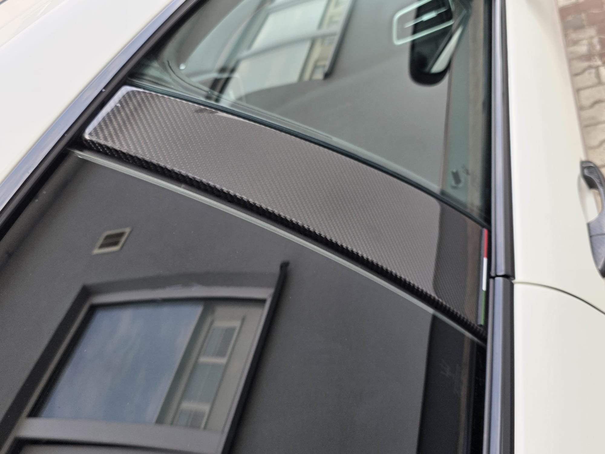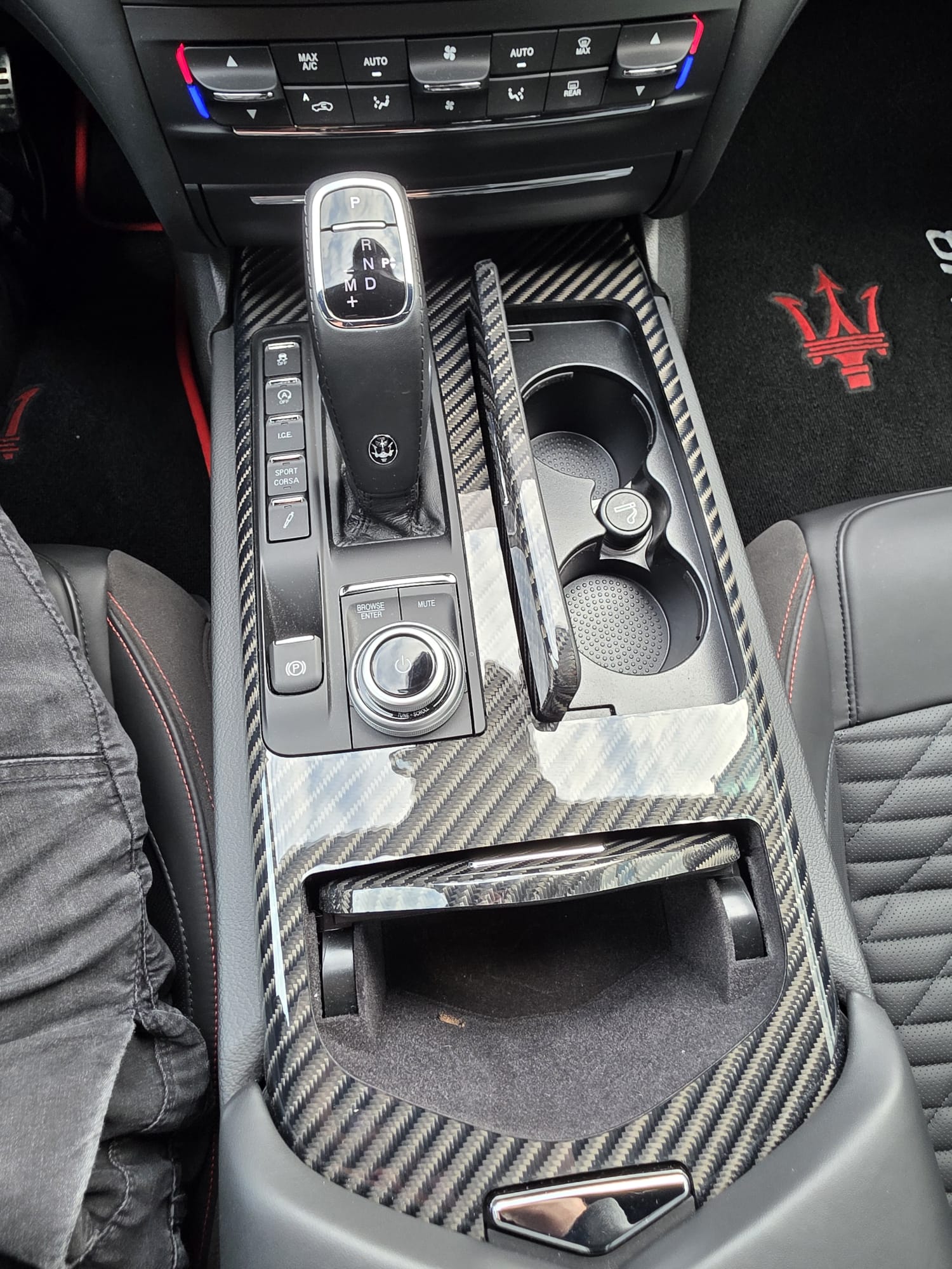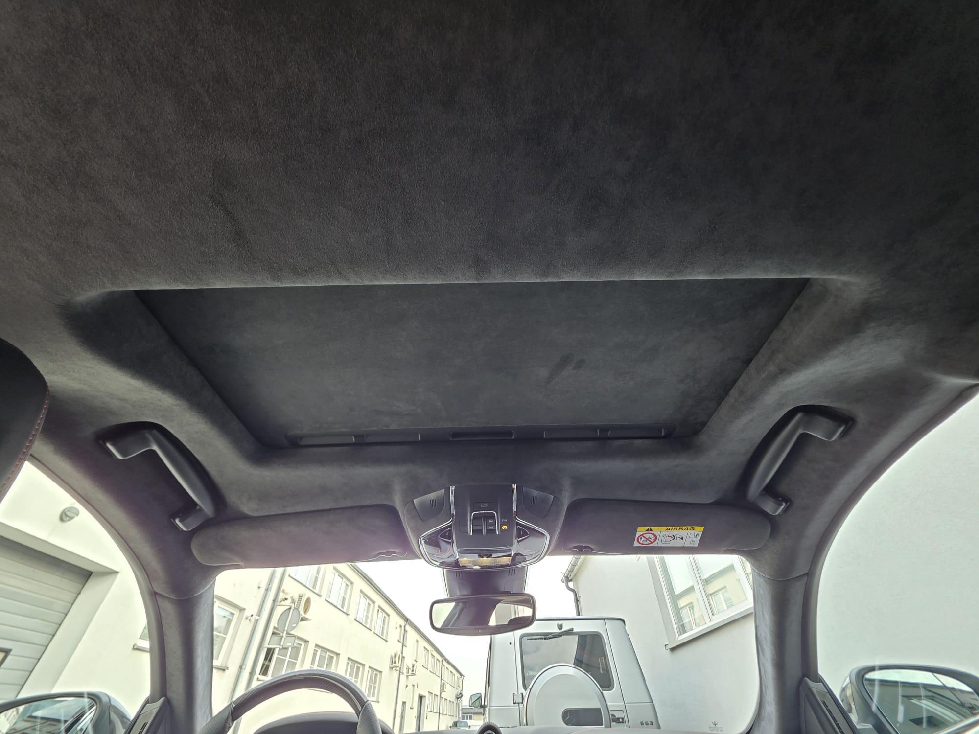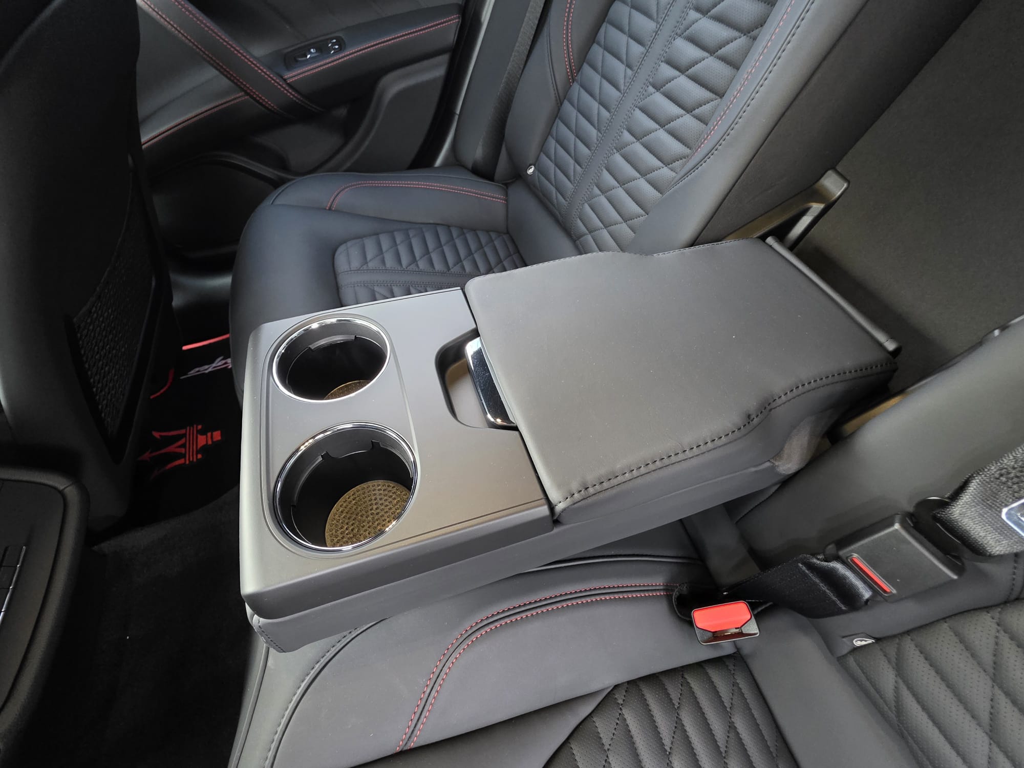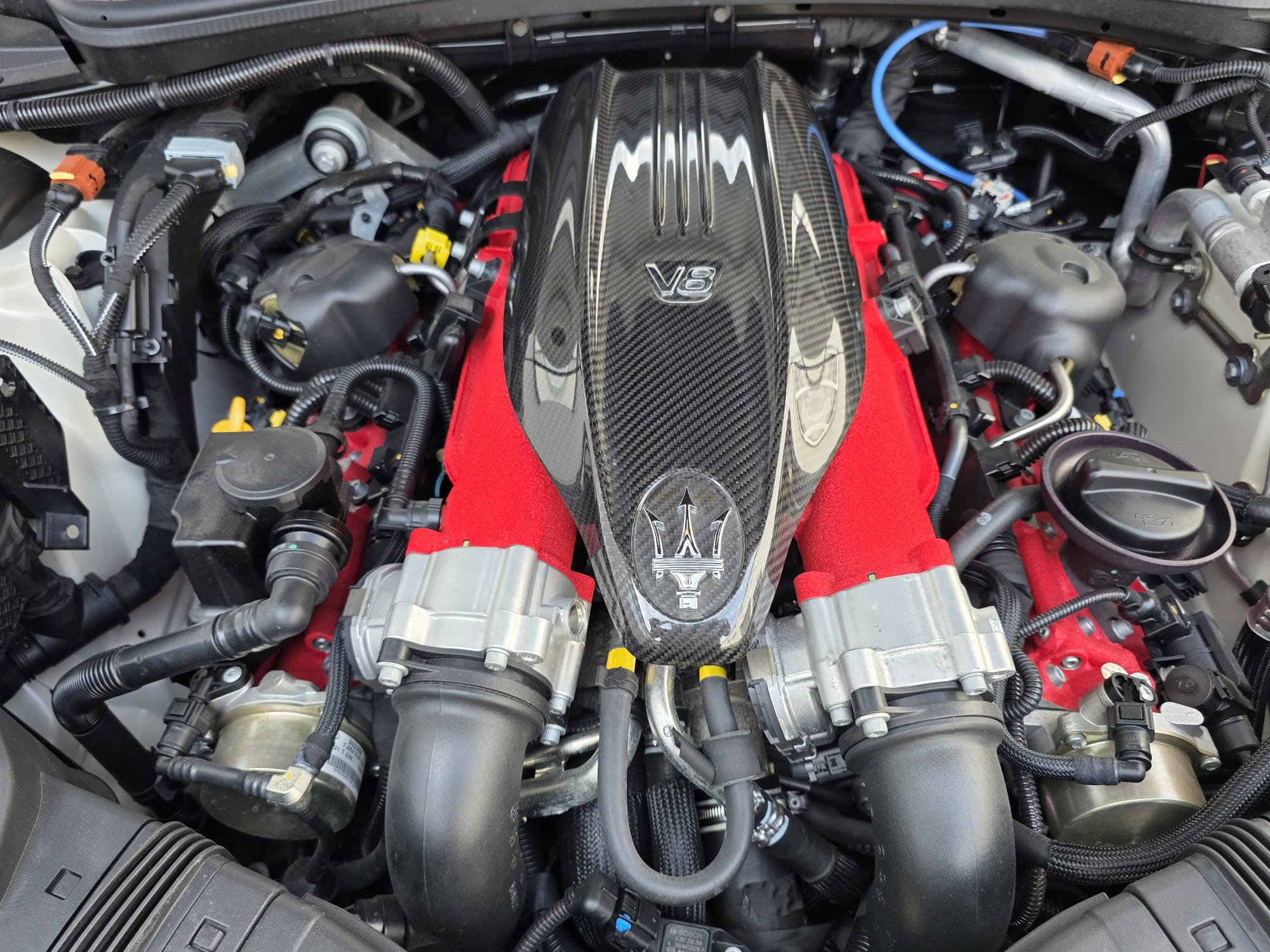 Auto prezentuje się bardzo dobrze wizualnie – eleganckie białe nadwozie z czarnymi dodatkami podkreśla jego dynamiczną sylwetkę. Całość uzupełniają sportowe felgi z czerwonymi zaciskami hamulcowymi oraz charakterystyczne dla Maserati wloty powietrza. Panoramiczny dach dodaje prestiżu i przestronności.