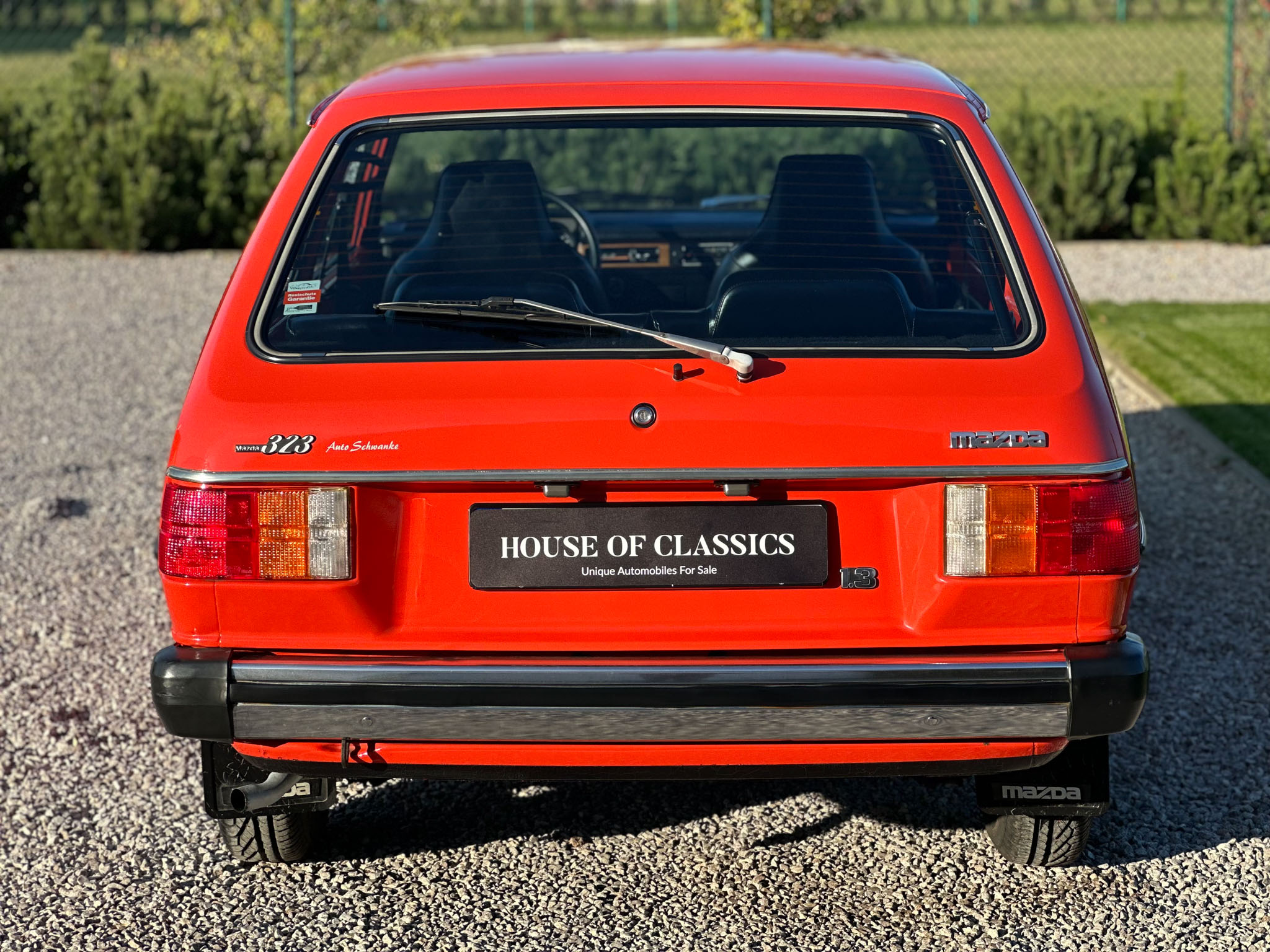 Mazda 323 pierwszej generacji (o fabrycznym oznaczeniu FA4) zastąpiła produkowaną przez ponad dekadę Mazdę 1000/1300. W odróżnieniu od poprzednika, otrzymała uniwersalne nadwozie typu hatchback, ale zachowała klasyczny układ napędowy. W ofercie znajdowała się tylko w latach 1977-1980, ale oferowana była na wielu światowych rynkach. W Japonii oferowano ją jako Familia, w USA jako GLC (Great Little Car), a na rynku niemieckim, z którego pochodzi prezentowany przez House of Classics egzemplarz, była to po prostu Mazda 323. Auto wyposażone jest w silnik 1,3 l i automatyczną skrzynię biegów oraz w ciekawy wzór tapicerki, łączący skaj z materiałem w kolorową kratkę.