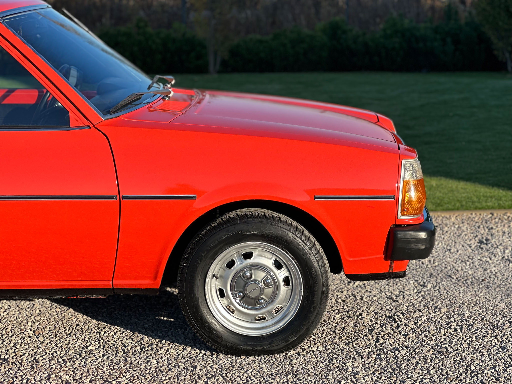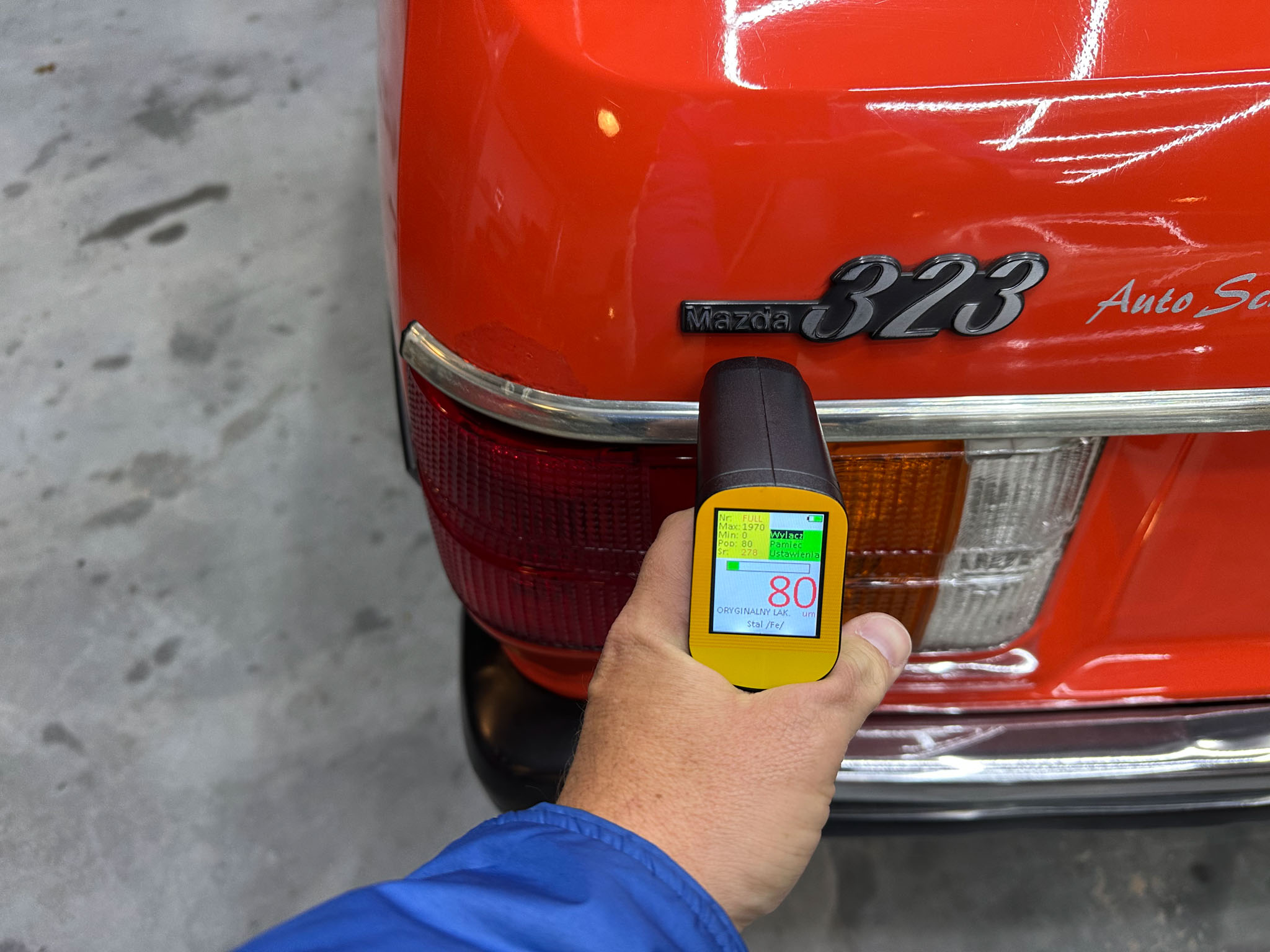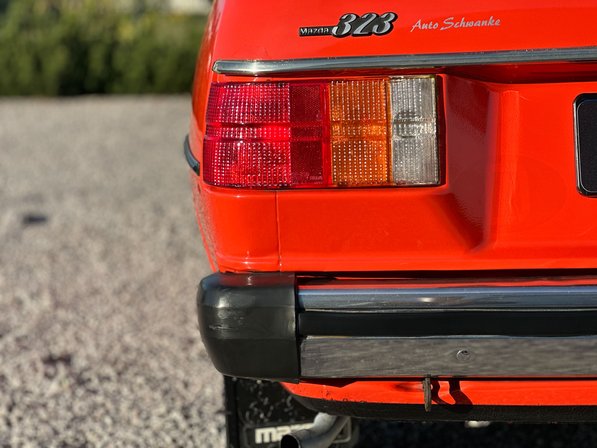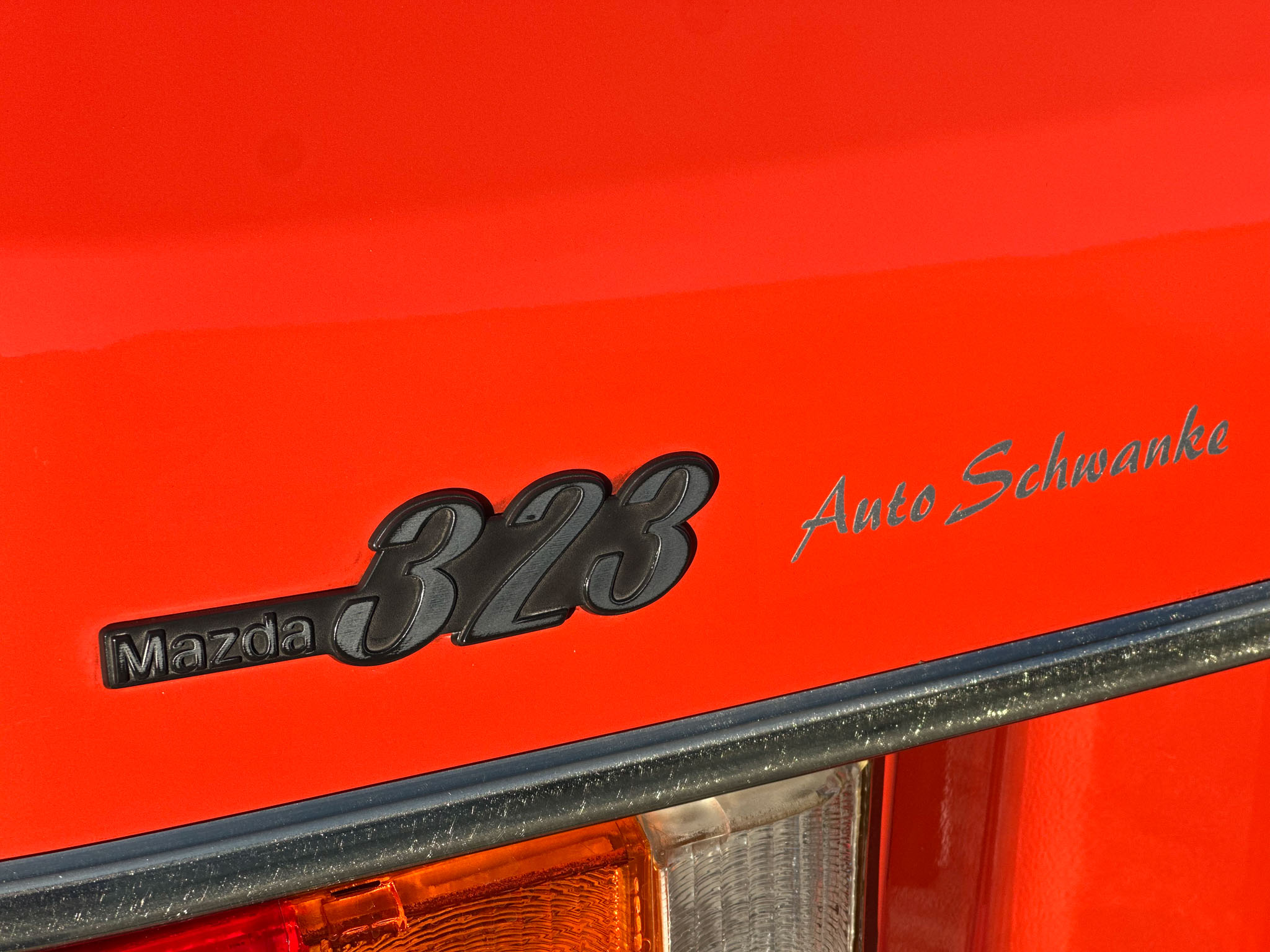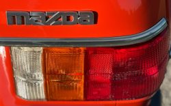 Pomarańczowa Mazda 323 pierwszej serii z 1978 roku robi wow, aż iskrzy!
