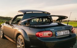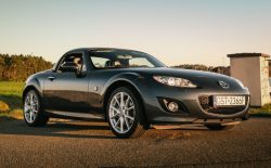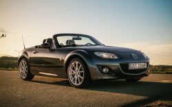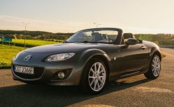 Mazda MX-5 NC to trzecia generacja kultowego roadstera japońskiej marki, dostępna w latach 2005-2015. To model, który łączył zgrabną sylwetkę, trwałą mechanikę i fantastyczne wrażenia z jazdy. Nie bez powodu znajdował się w latach 2006–2013 na liście 10 najlepszych samochodów magazynu „Car and Driver”. NC to pierwsza generacja MX-5 oferująca odmianę z chowanym twardym dachem Power Retractable Hard Top (PRHT), który znajduje się również w tym egzemplarzu. Dach można tu złożyć w ciągu 12 sekund, bez zmniejszania pojemności bagażnika. To auto pochodzi z polskiej sieci dystrybucji i ma obecnie tylko 19 tys. km przebiegu. Stan zachowania jest wyśmienity.
