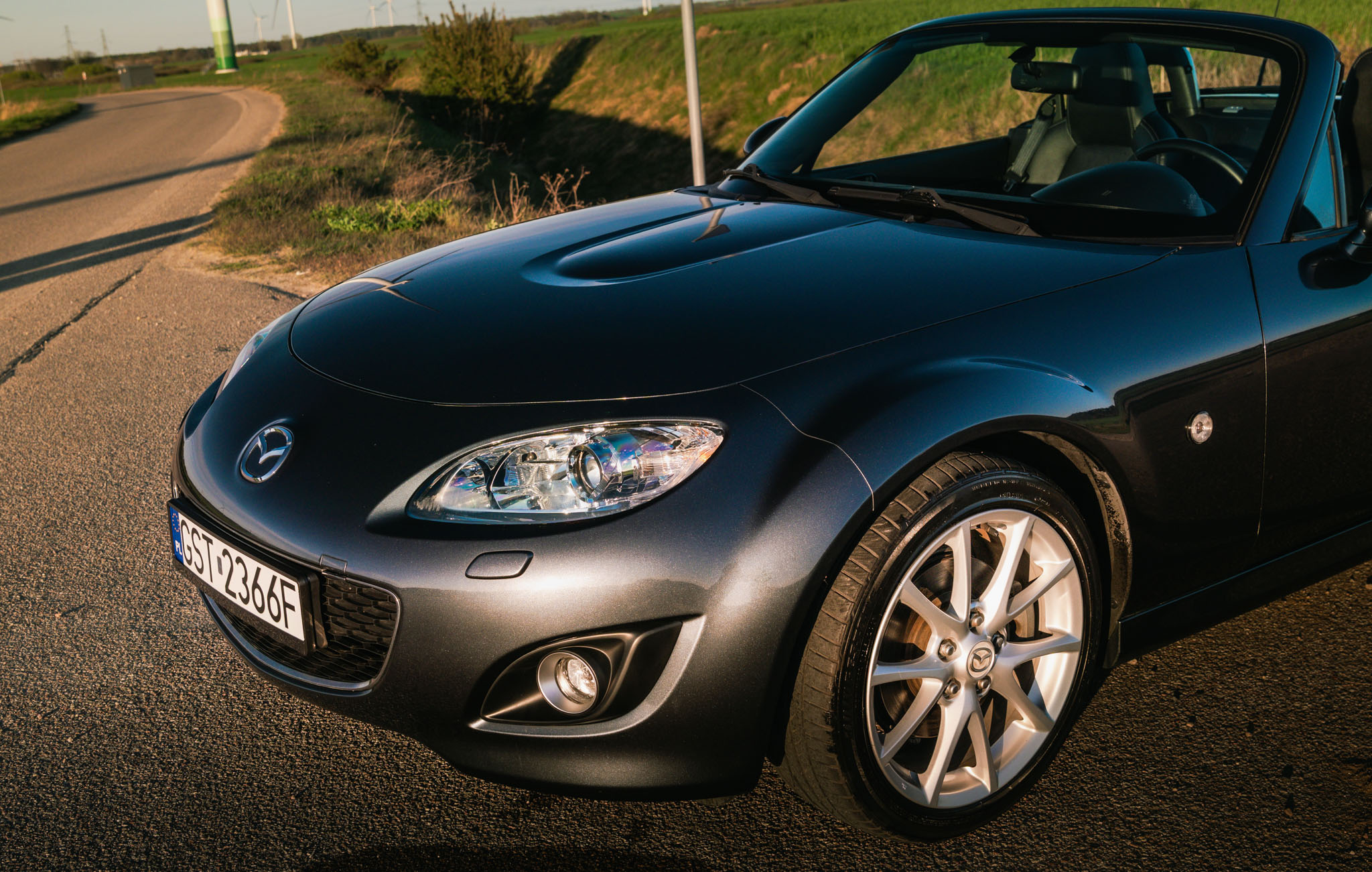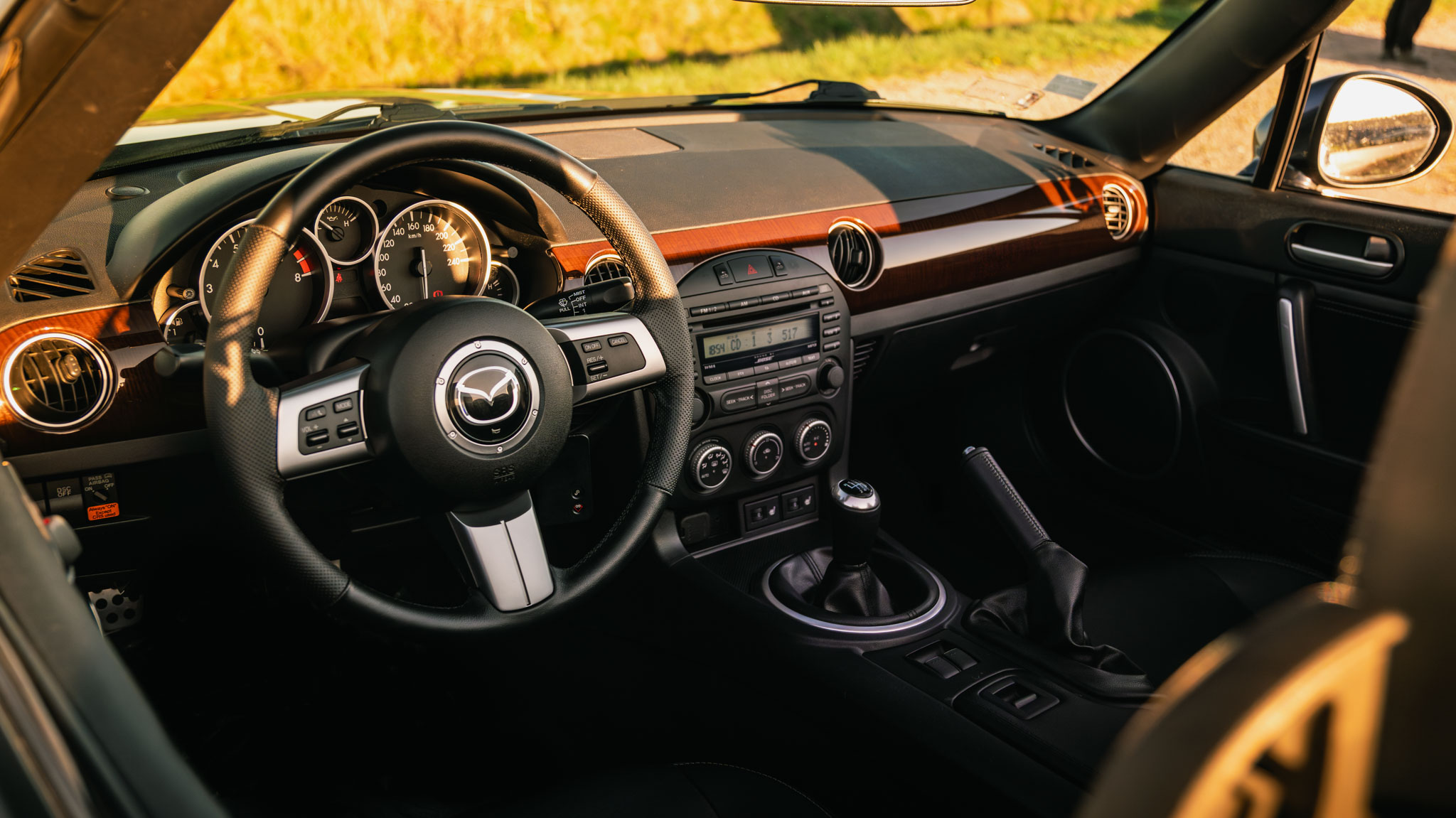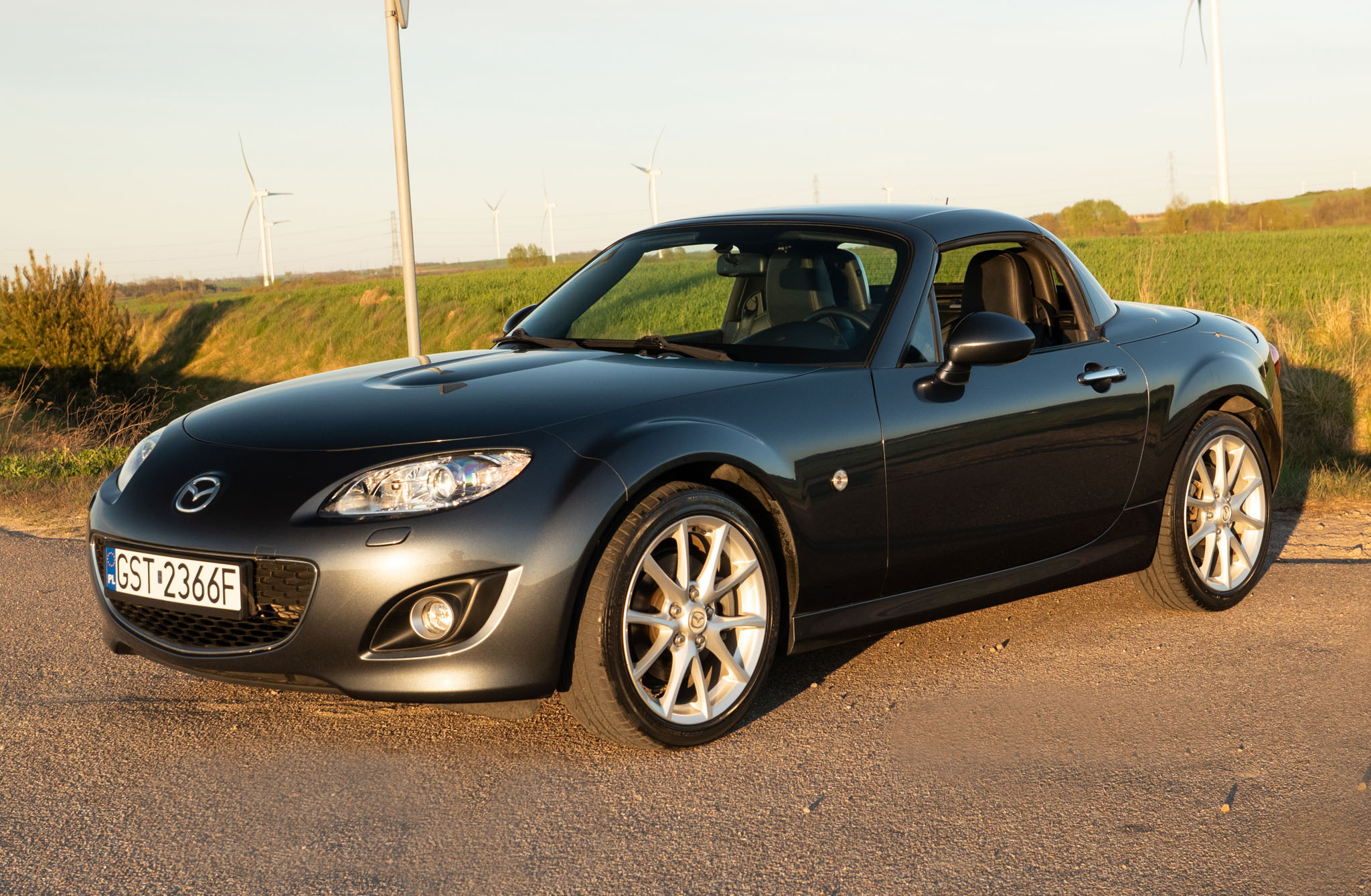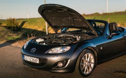 Egzemplarz ten wyposażony jest m.in. w skórzaną tapicerkę, podgrzewane fotele, system nagłośnienia BOSE. Posiada również 6-biegową manualną skrzynię biegów, która w połączeniu z lekką konstrukcją i precyzyjnym prowadzeniem zapewnia bardzo angażujące wrażenia z jazdy. Całość uzupełniają oryginalne felgi aluminiowe 18 cali oraz elektrycznie składany dach typu hardtop (PRHT), który pozwala cieszyć się zarówno jazdą pod gołym niebem, jak i komfortem coupe.