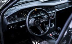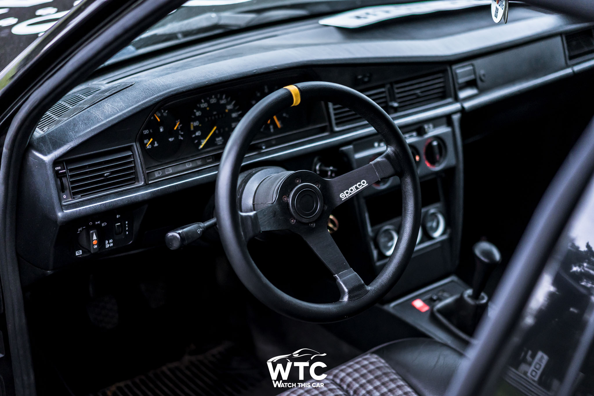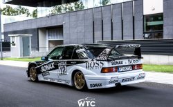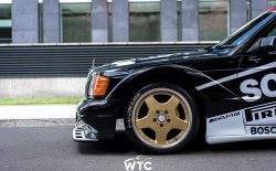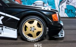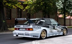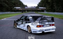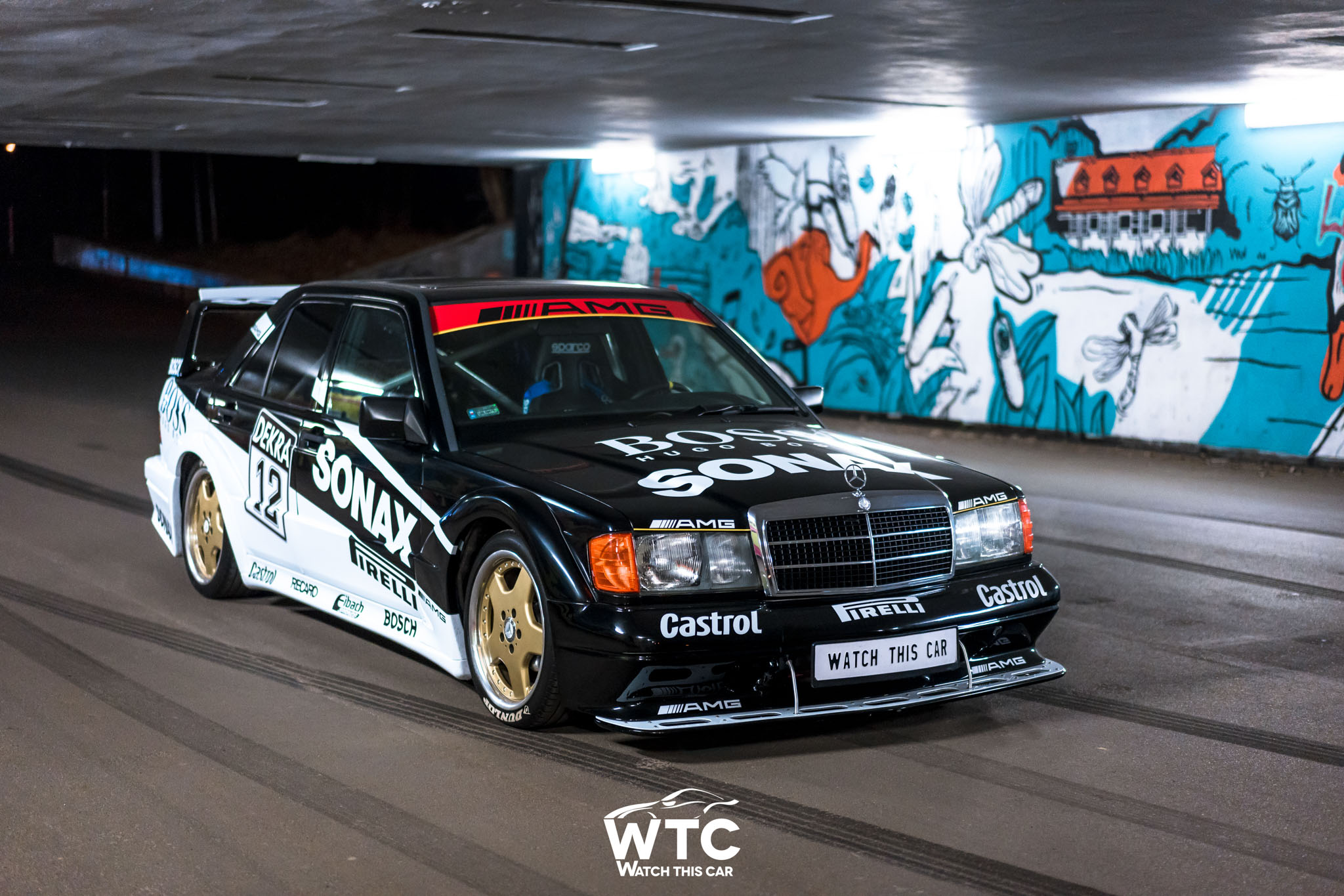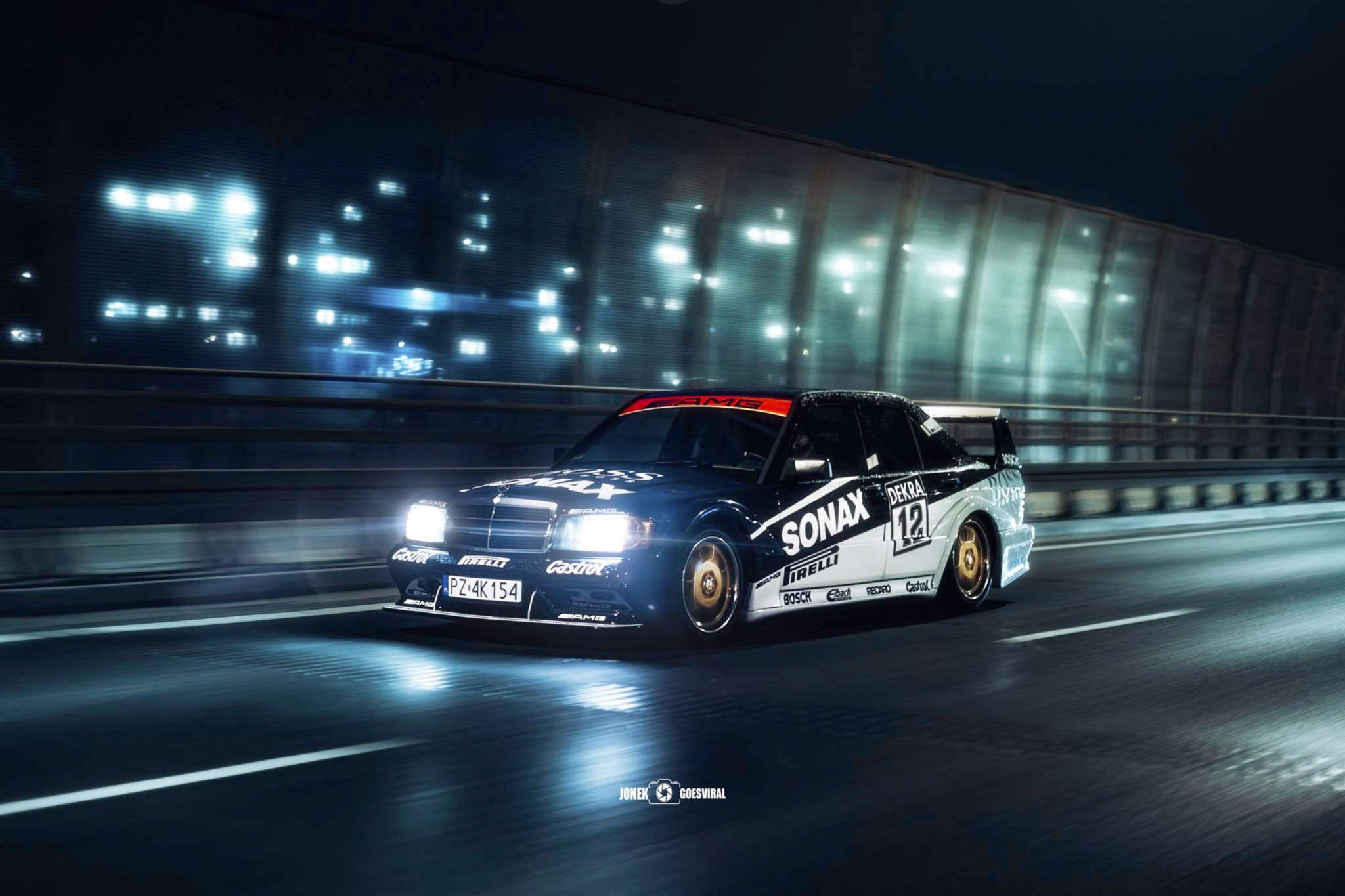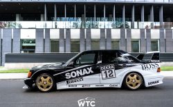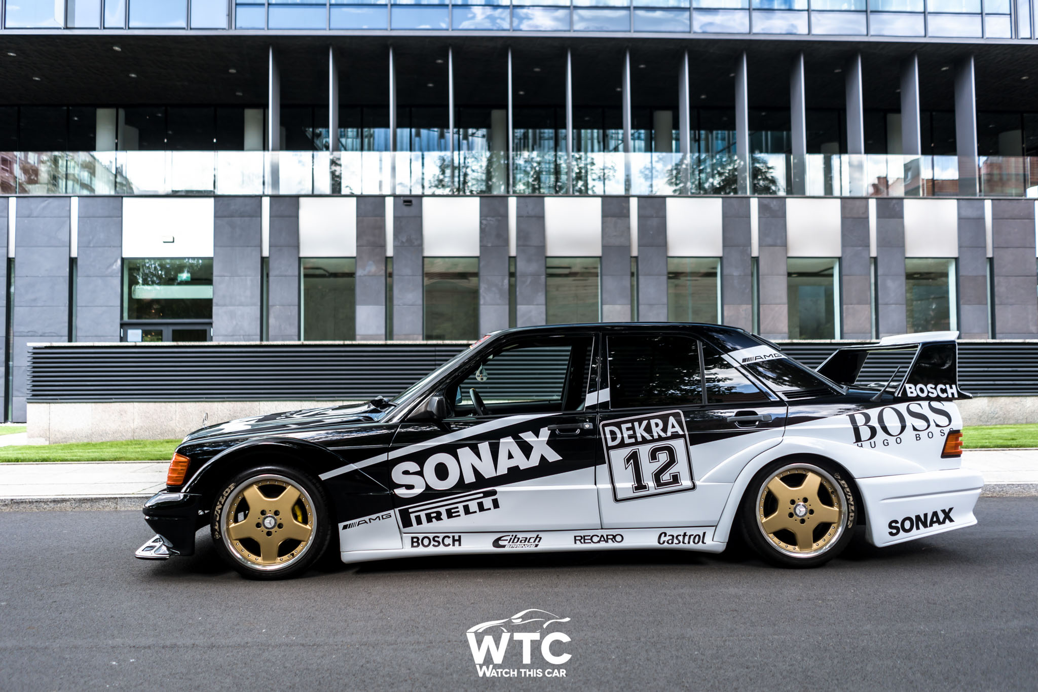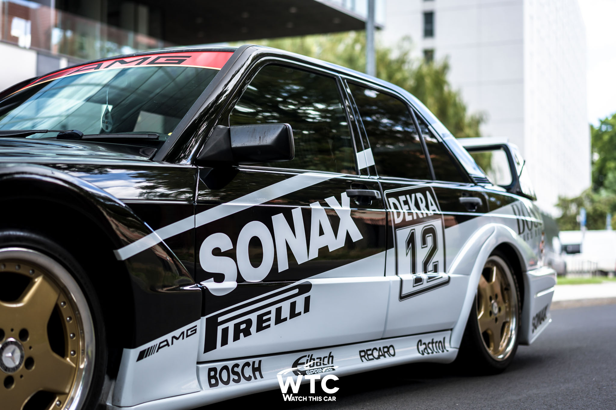 Mercedes 190E EVO II powstał wyłącznie w 500 sztukach, ale już jego bazy, czyli zwykłej 190tki, powstało niemal 2 miliony. To tworzy naturalną pokusę, by samemu zbudować auto odwzorowujące swoją najsłynniejszą w historii odmianę. Monstrualny pakiet aerodynamiczny powstał na potrzeby serii wyścigowej DTM. Był to legendarny powrót fabrycznego zespołu Mercedesa do wyścigów po przerwie trwającej od 1955 roku. 50 zwycięstw w latach 1988–1993 i prawdziwa kulminacja w sezonie 1992, w którym model 190E 2.5-16 Evo II wygrał 16 z 24 wyścigów i zajął trzy pierwsze miejsca w klasyfikacji kierowców. Oklejenie tego egzemplarza (Sonax/Boss) nawiązuje do samochodu ówczesnego zdobywcy tytułu mistrzowskiego – Klausa Ludwiga.