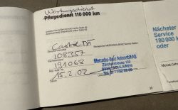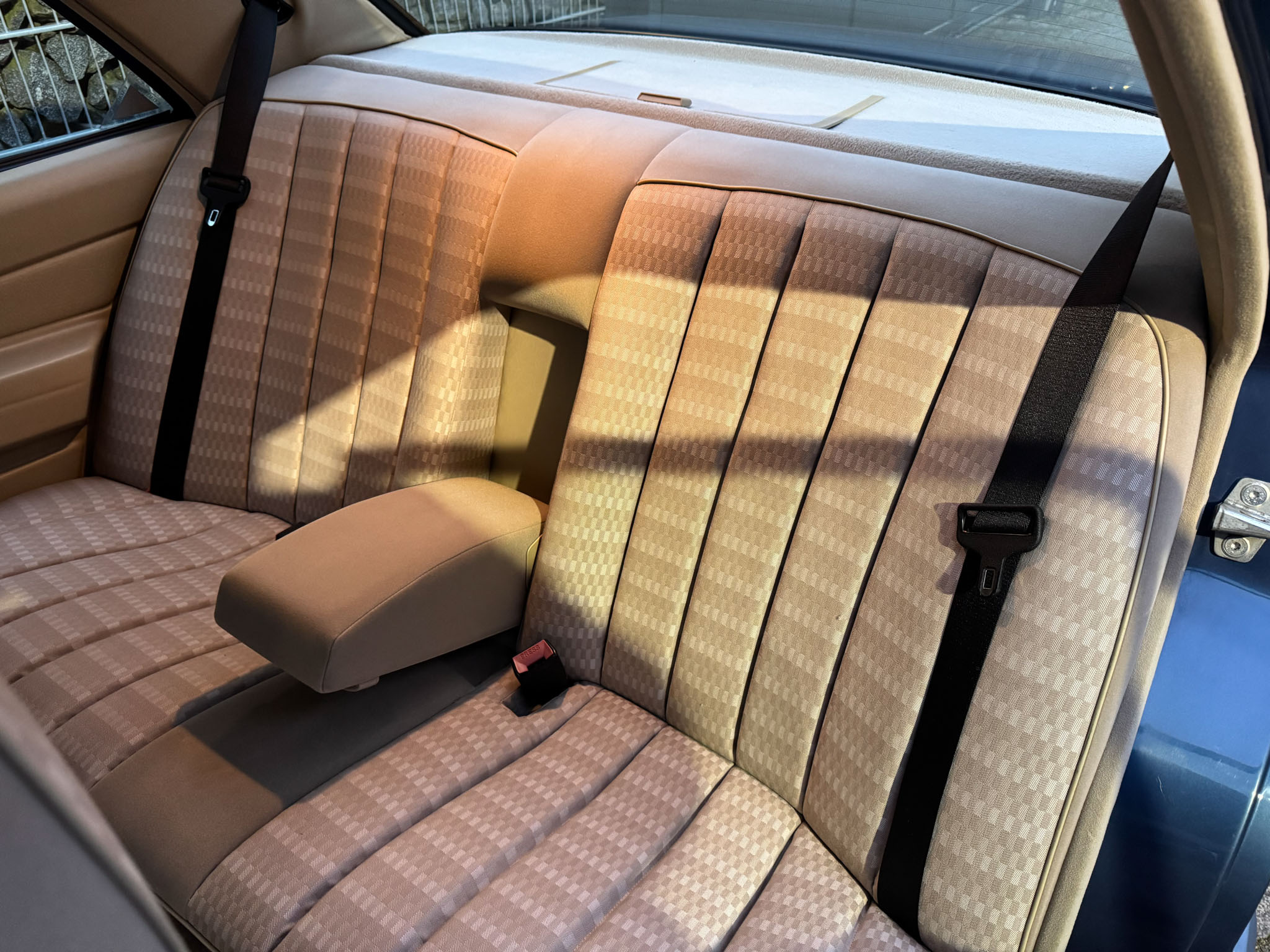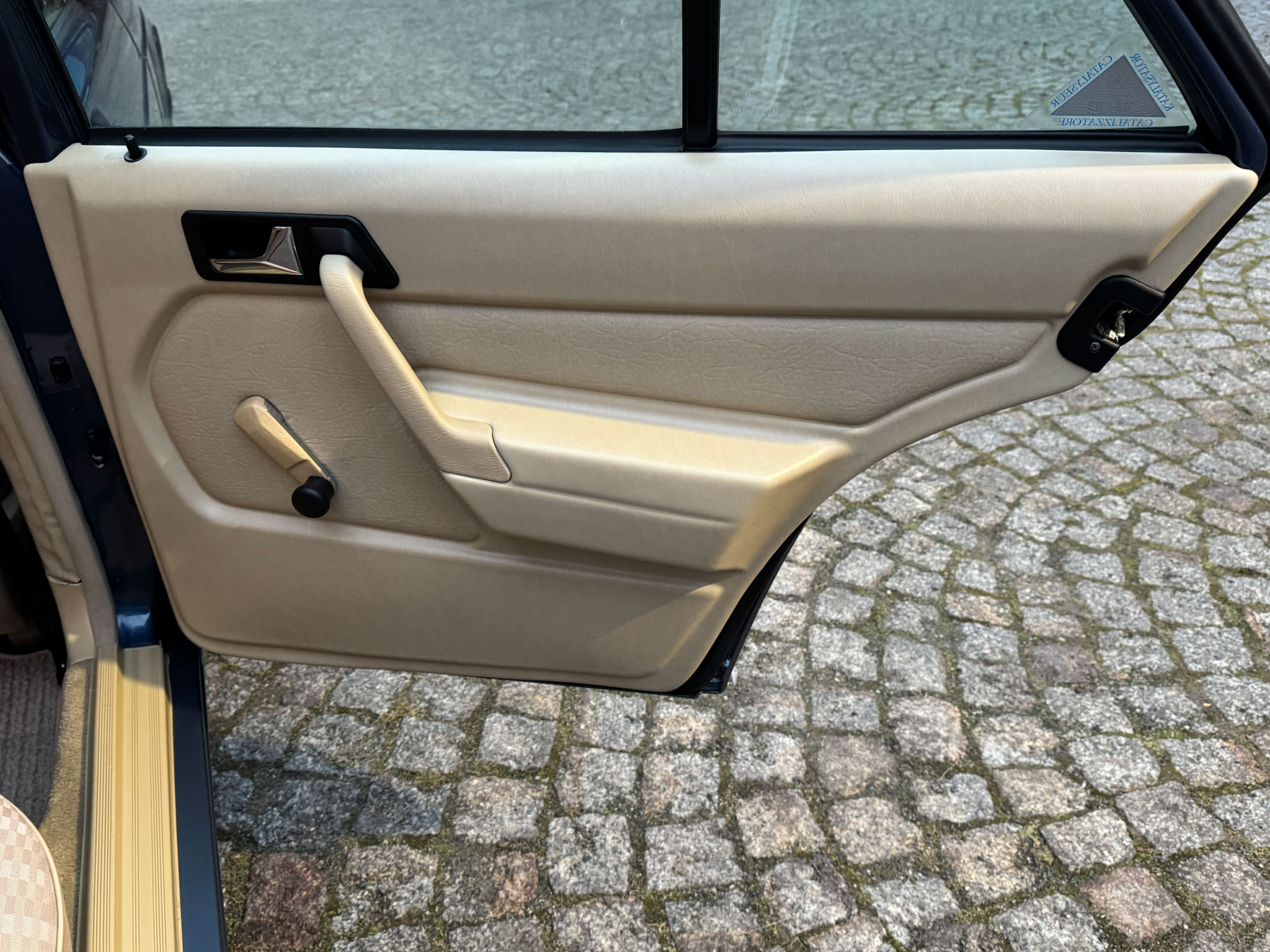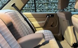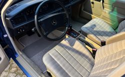 Wnętrze zachowane w idealnym stanie z minimalnymi śladami użytkowania. Fotele są prawie jak nowe, mają wciąż żywy kolor jak pierwszego dnia. Wykładziny i plastiki wyglądają dalej świeżo, są matowe i bez rys. Komplet dywaników rypsowych. Boczki drzwi w stanie wzorowym jak na w201, materiał się nie odkleja. Radio Becker Europa w pełni sprawne. Kierownica i wybierak biegów są w idealnym stanie z niewielkimi adekwatnymi do przebiegu śladami użytkowania. Podsufitka jak nowa. Drewno jak nowe bez pęknięć.