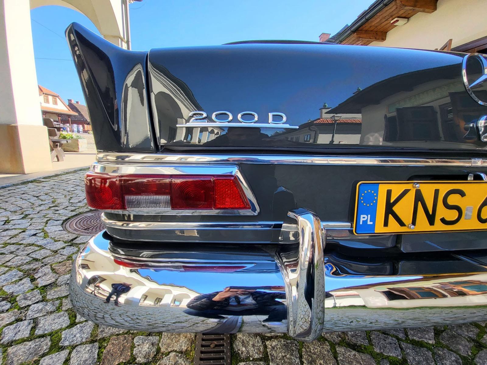Mercedes 200D W110 znany u nas był jako „skrzydlak”, a za naszą zachodnią granicą jako „Heckflosse”. Zapewniał komfortowe warunki podróży i sporą przestrzeń w kabinie, a do jego napędu wykorzystano jednostkę wysokoprężną. Silnik otrzymał wał korbowy podparty na pięciu łożyskach, w zestawieniu z poprzednikiem uzyskano zdecydowanie zmniejszony hałas oraz drgania. 200D zastępował wcześniejszy model 190D (w tym samym nadwoziu) i oferowany był w latach 1965–68. Wyprodukowano 161618 sztuk, lecz z pewnością rzadko która prezentuje się dziś tak, jak odrestaurowany egzemplarz z ogłoszenia. Auto ma piękne zestawienie kolorystyczne i doskonały stan, będący efektem gruntownej renowacji lakierniczej i mechanicznej, przeprowadzonej z zachowaniem oryginalnego wnętrza.