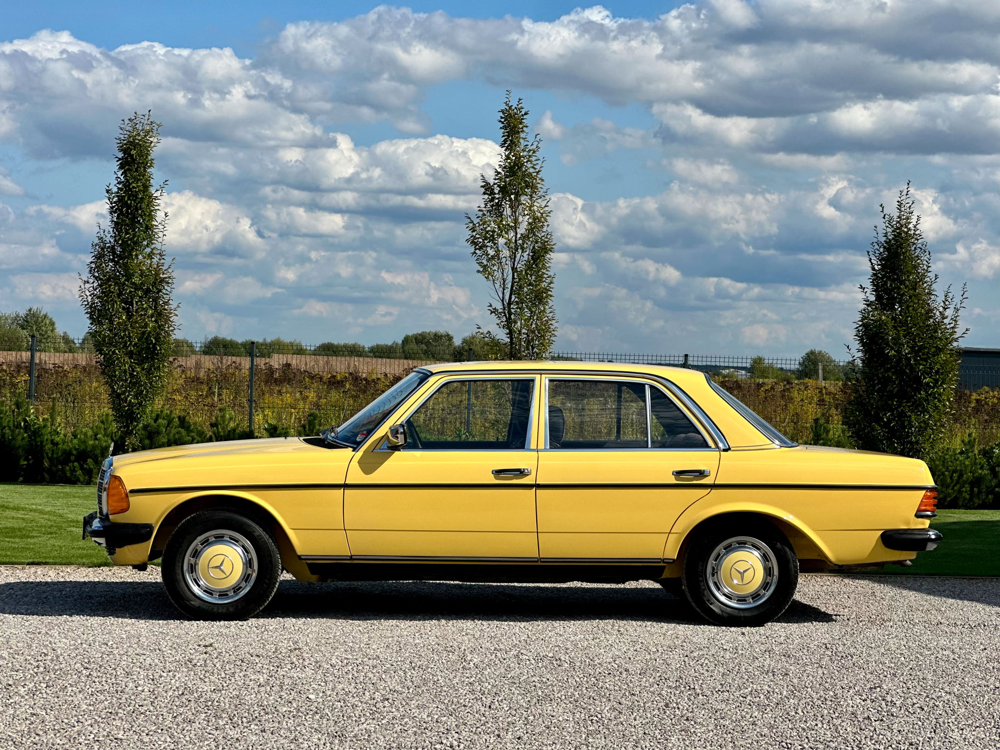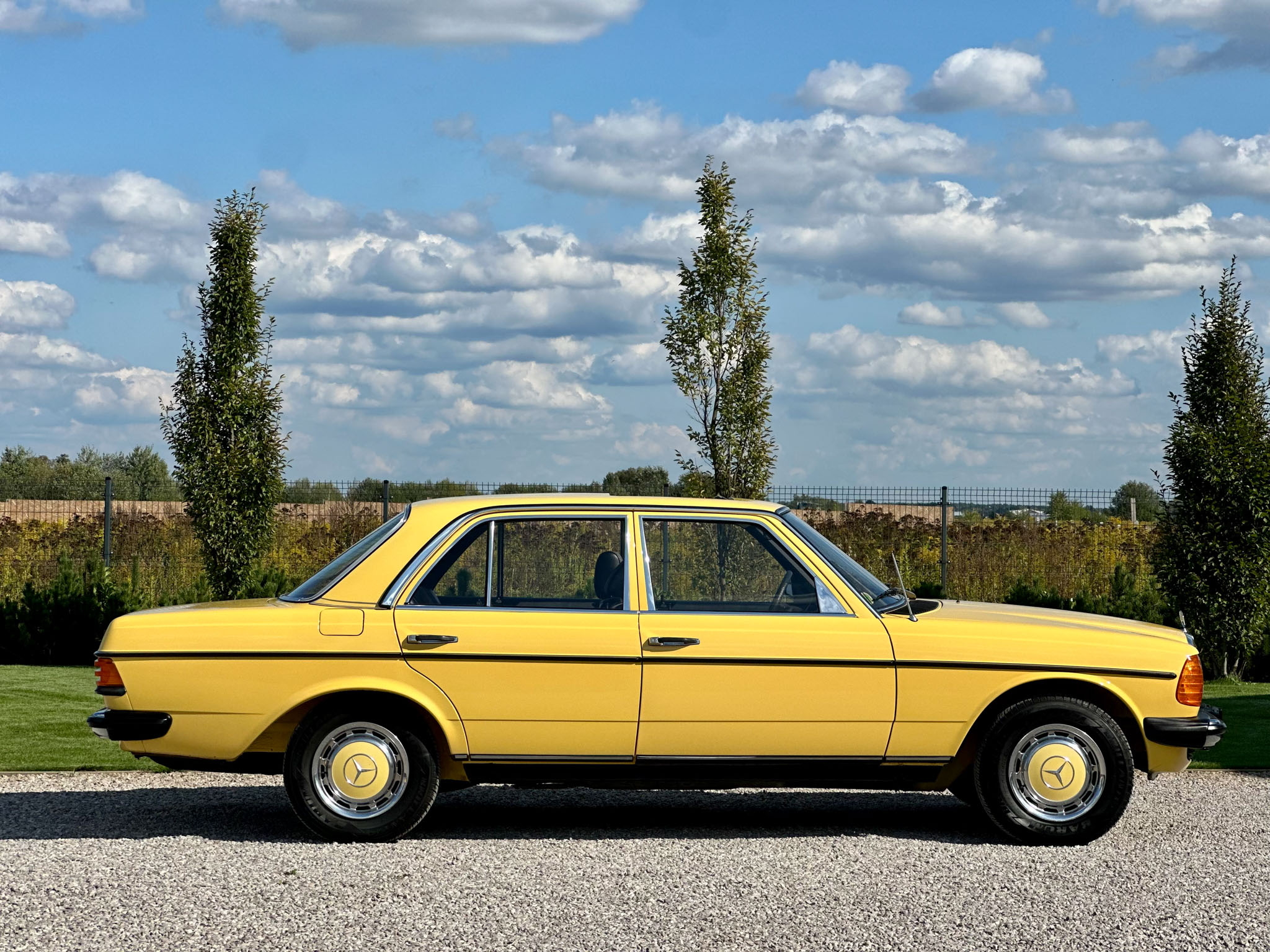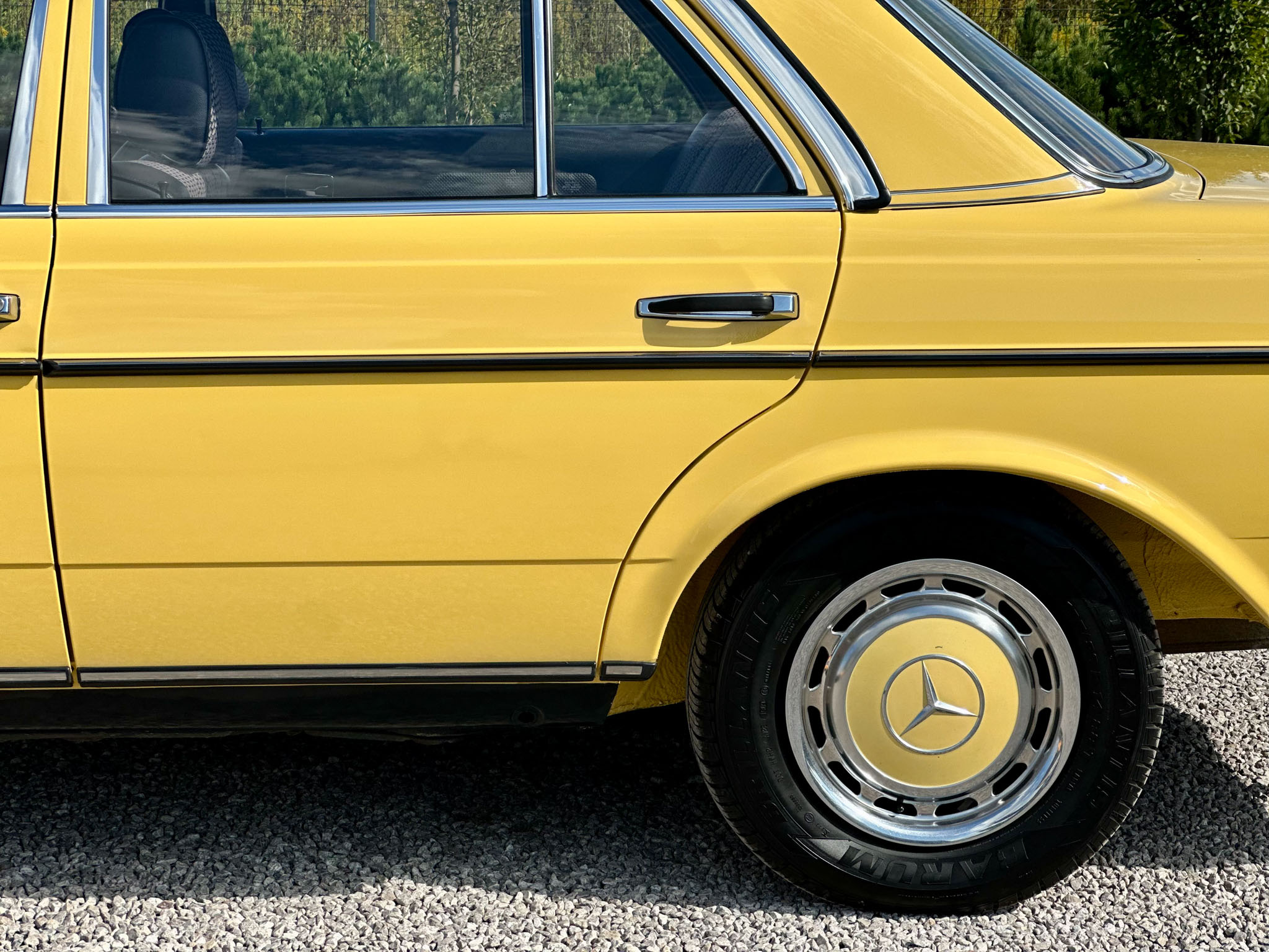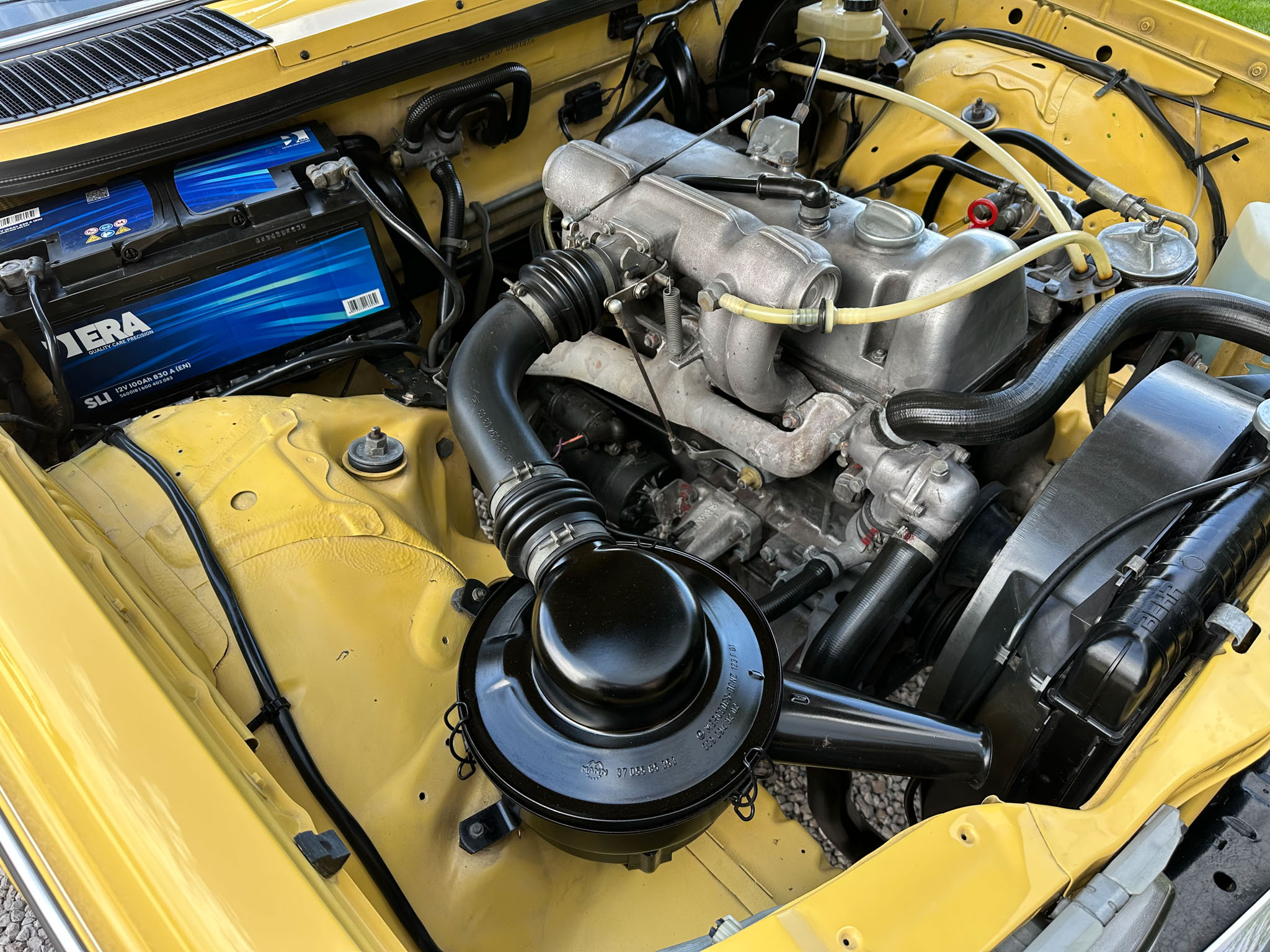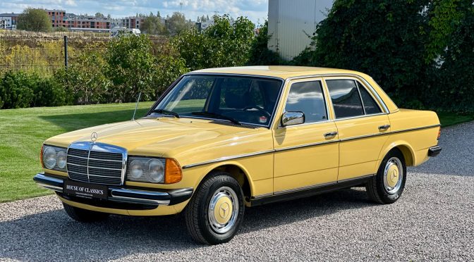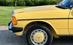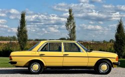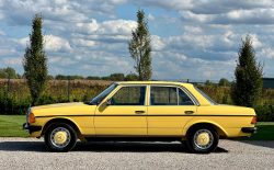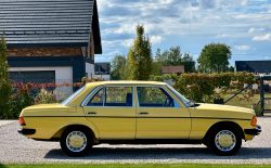 Mercedes W123 zaprezentowany został po raz pierwszy w styczniu 1976 roku. Nowa seria z miejsca została pokochana. Czas dostawy W123 wydłużył się wkrótce aż do trzech lat, a kto chciał taniej, ten mógł kupić poprzednika. Strich Achter oferowany był równolegle przez blisko rok i był zauważalnie tańszy, ale to nowy model był prawdziwym hitem, przypominając świeżo wprowadzoną S klasę. W nowej „beczce” wspólna z poprzednim modelem została większość jednostek napędowych. Mercedes 220D W123 z wysokoprężnym OM 615 D 22 pod maską to jeden z nich. Owszem, ten silnik był montowany od 1968 roku i generuje tylko 60 KM, ale przecież to nie przeszkoda. W powszechnej opinii to i tak było najlepsze auto na świecie. Ten egzemplarz pochodzi z samego początku produkcji i ma kilka opcji wyposażenia – jak szyberdach i wspomaganie kierownicy – które znacznie uprzyjemniają jazdę. Fantastyczny jest również jego żółty kolor, a przede wszystkim – oryginalny stan zachowania i kompletna dokumentacja.
