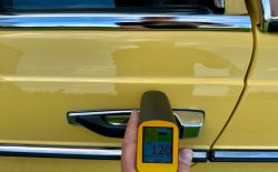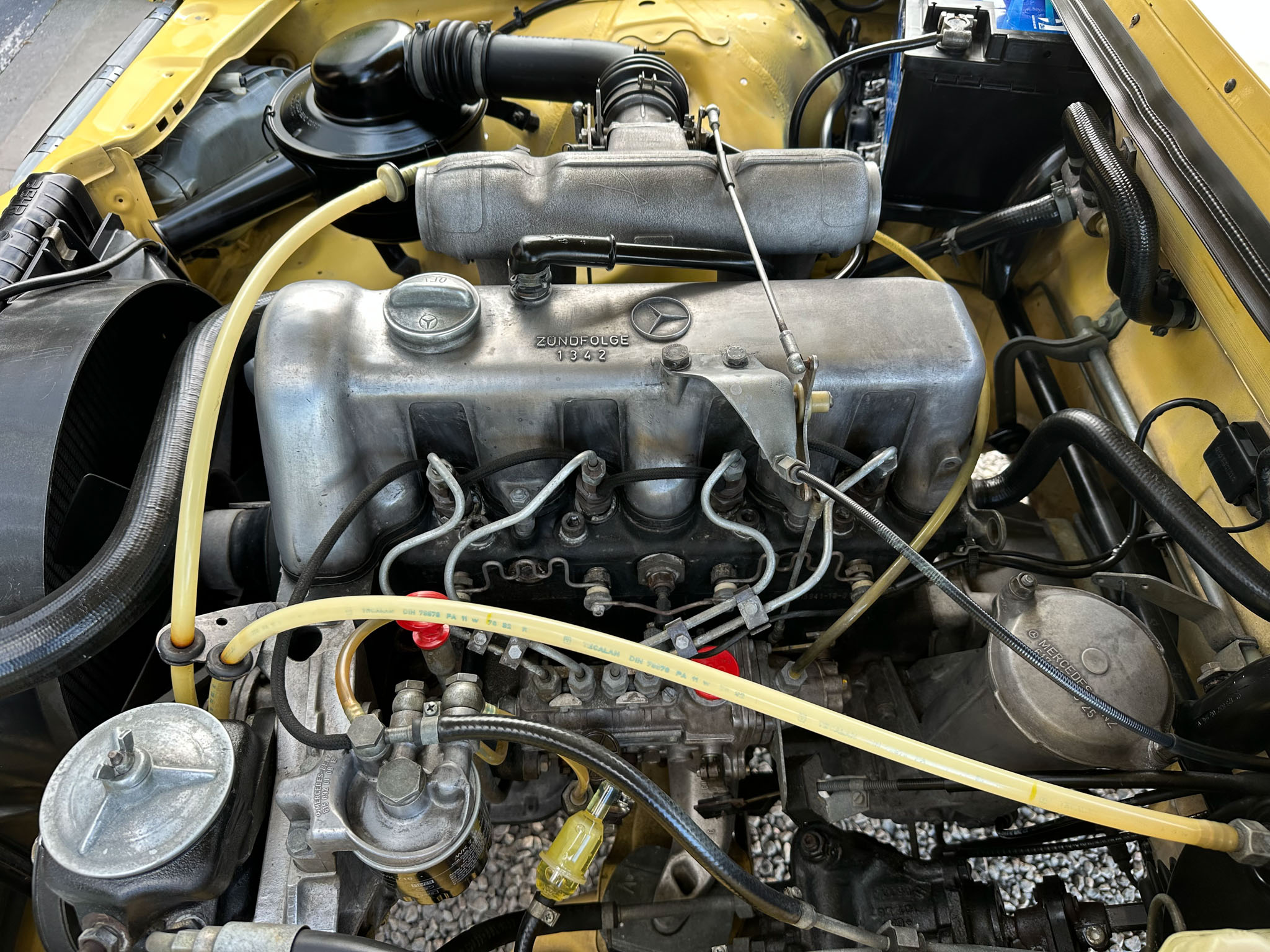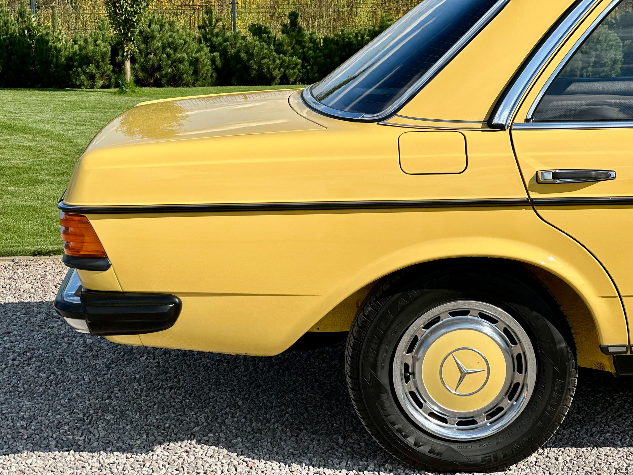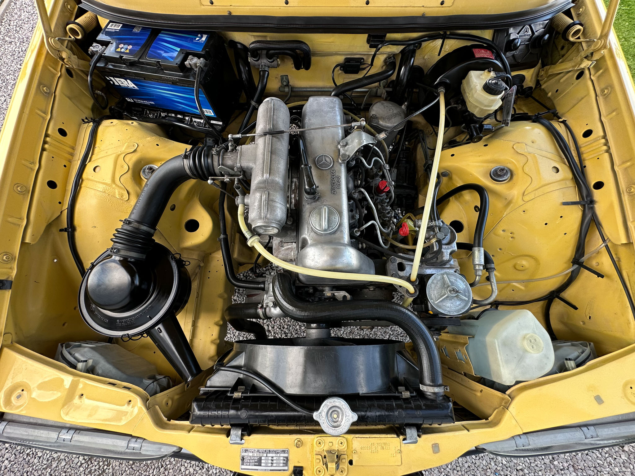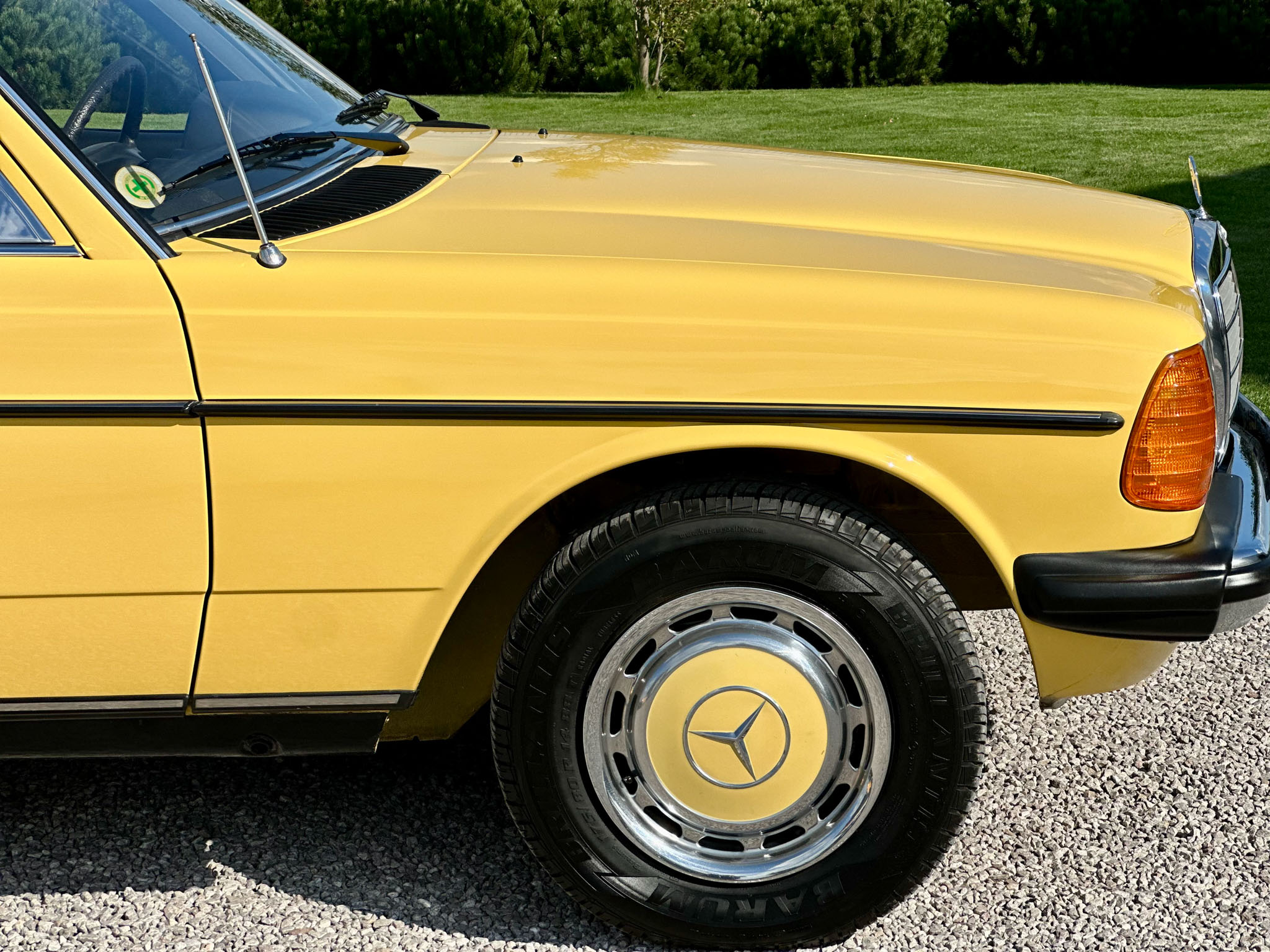Mercedes W123 zaprezentowany został po raz pierwszy w styczniu 1976 roku. Nowa seria z miejsca została pokochana. Czas dostawy W123 wydłużył się wkrótce aż do trzech lat, a kto chciał taniej, ten mógł kupić poprzednika. Strich Achter oferowany był równolegle przez blisko rok i był zauważalnie tańszy, ale to nowy model był prawdziwym hitem, przypominając świeżo wprowadzoną S klasę. W nowej „beczce” wspólna z poprzednim modelem została większość jednostek napędowych. Mercedes 220D W123 z wysokoprężnym OM 615 D 22 pod maską to jeden z nich. Owszem, ten silnik był montowany od 1968 roku i generuje tylko 60 KM, ale przecież to nie przeszkoda. W powszechnej opinii to i tak było najlepsze auto na świecie. Ten egzemplarz pochodzi z samego początku produkcji i ma kilka opcji wyposażenia – jak szyberdach i wspomaganie kierownicy – które znacznie uprzyjemniają jazdę. Fantastyczny jest również jego żółty kolor, a przede wszystkim – oryginalny stan zachowania i kompletna dokumentacja.