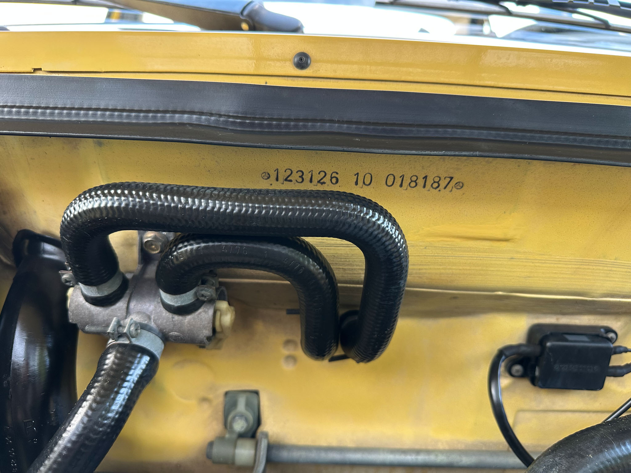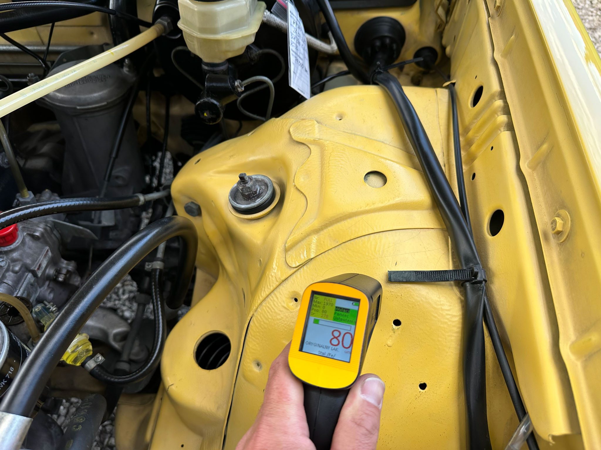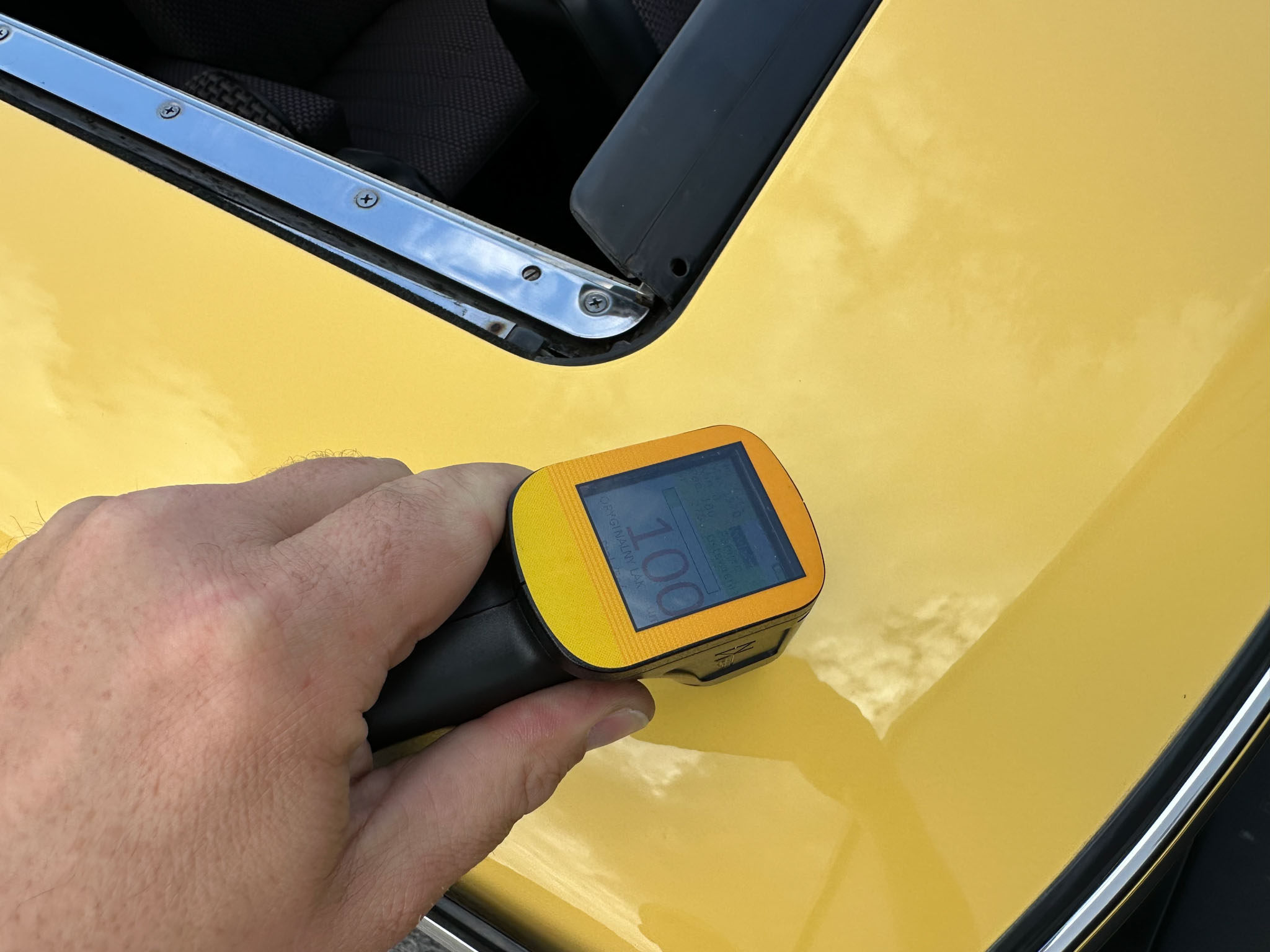 Na całym wozie jest pierwszy lakier, z wyjątkiem prawych przednich drzwi i przedniego prawego błotnika. Chromowane oraz aluminiowe elementy są jak nowe. Wnętrze nie nosi śladów zużycia ani słońca – jest perfekcyjne. Komora i praca silnika jest także rewelacyjna.